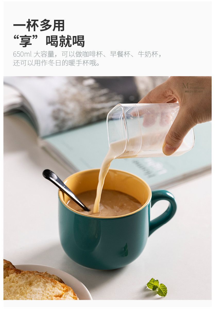 북유럽 단색 머그잔 크리 에이 티브 홈 아침 식사 컵 오트밀 컵 고급스러운 커피 컵 세라믹 대용량 1