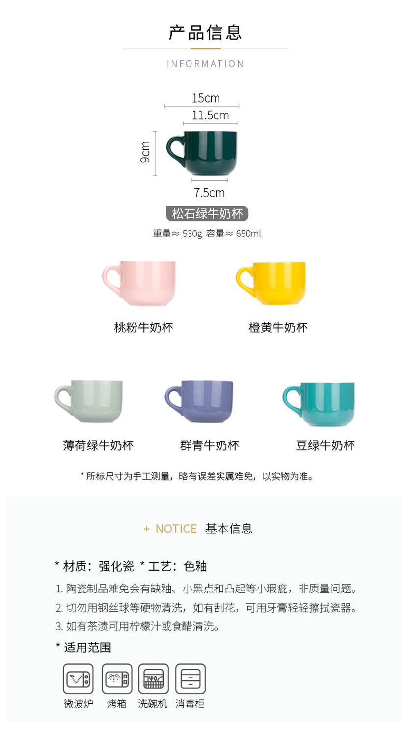 북유럽 단색 머그잔 크리 에이 티브 홈 아침 식사 컵 오트밀 컵 고급스러운 커피 컵 세라믹 대용량 1스토어 가기