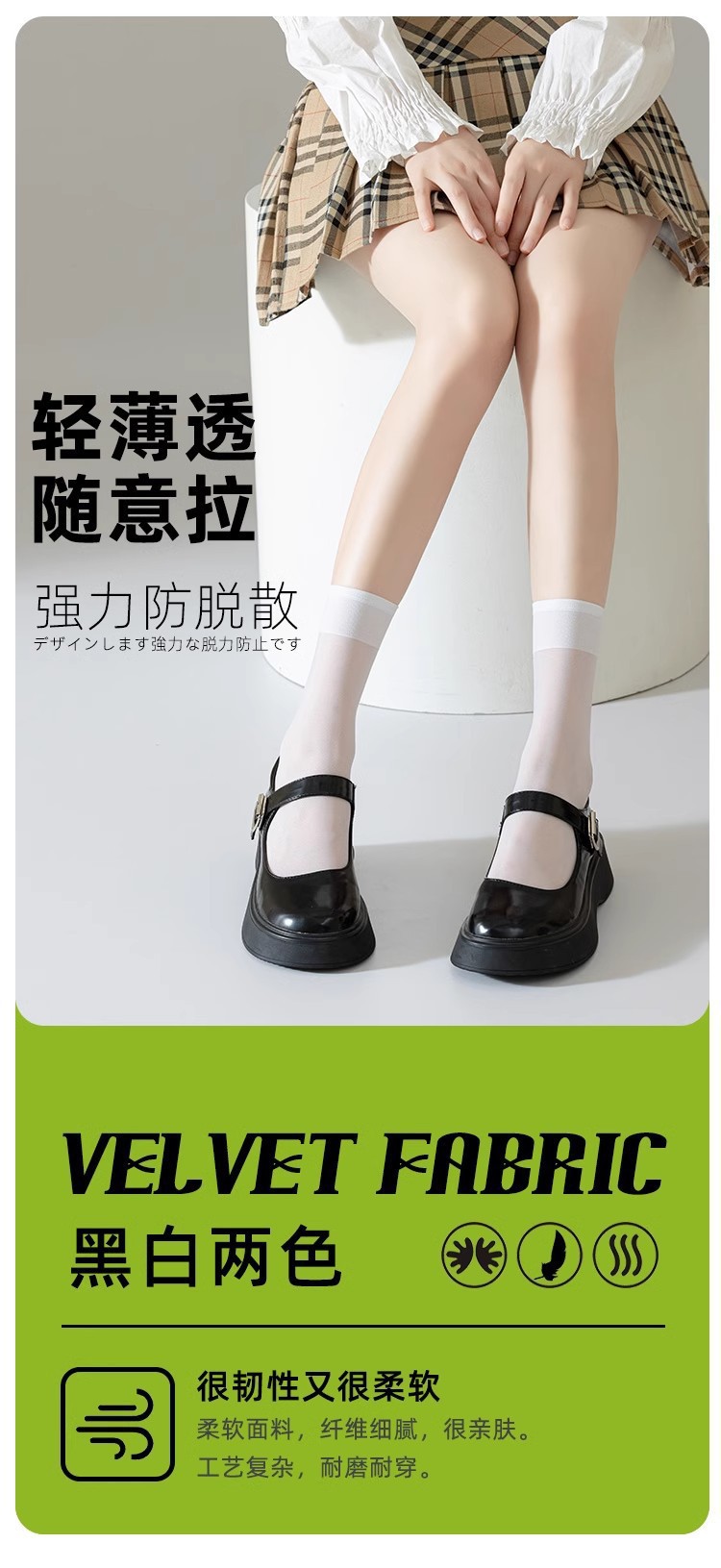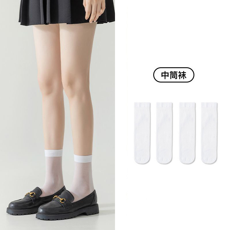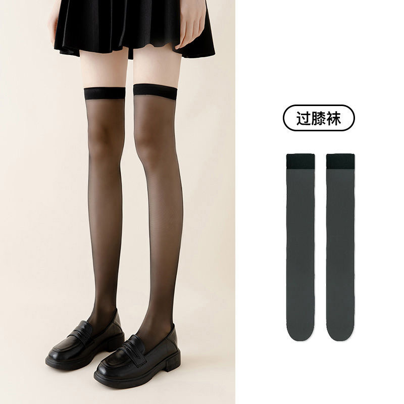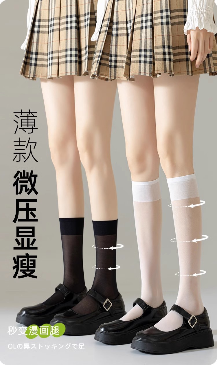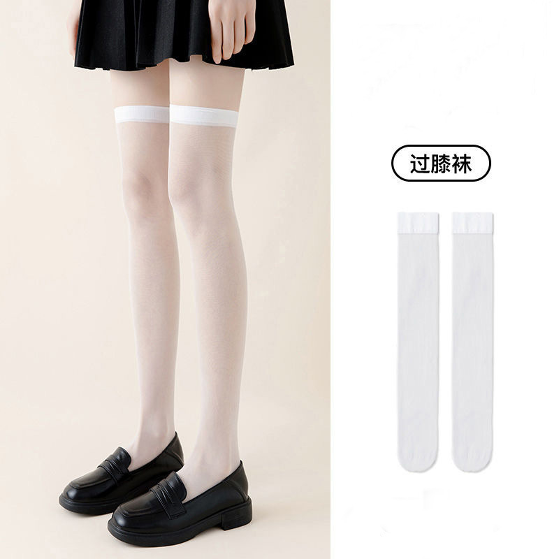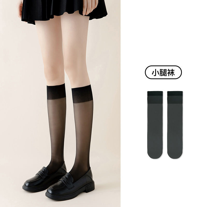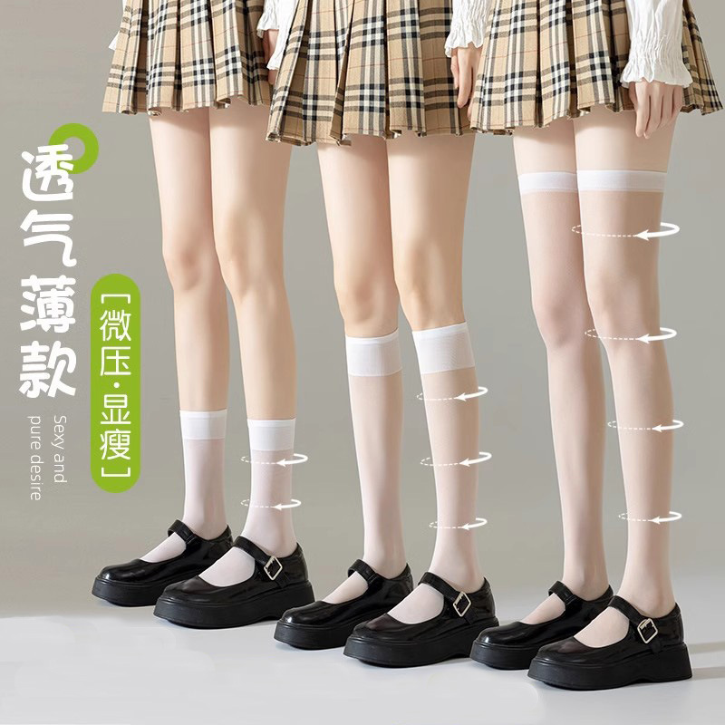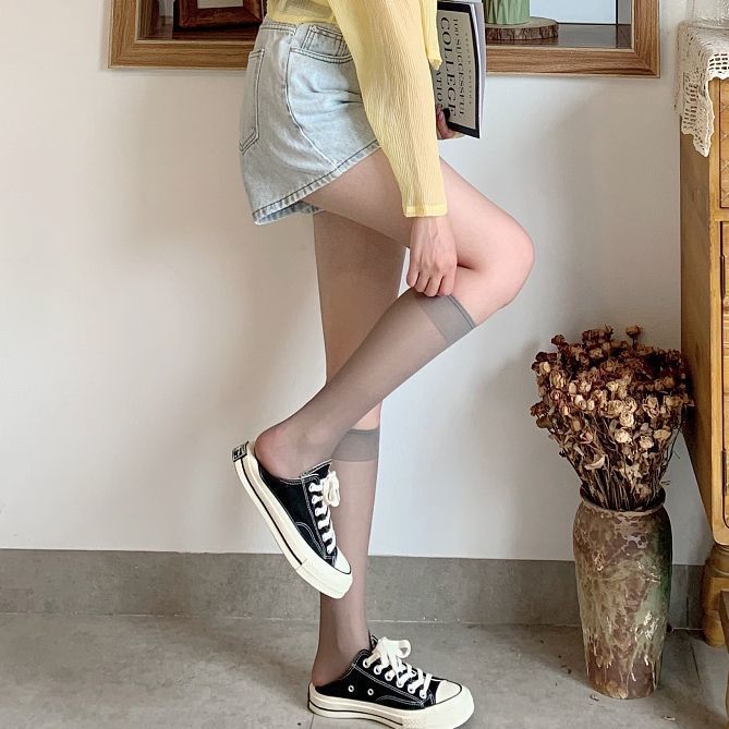 새로운 귀여운 스타일 반투명 고탄력 무릎 양말 솔리드 컬러 통기성 얇은 종아리 양말 여성 캐주얼 대학 스타일 스타킹 봄스토어 가기