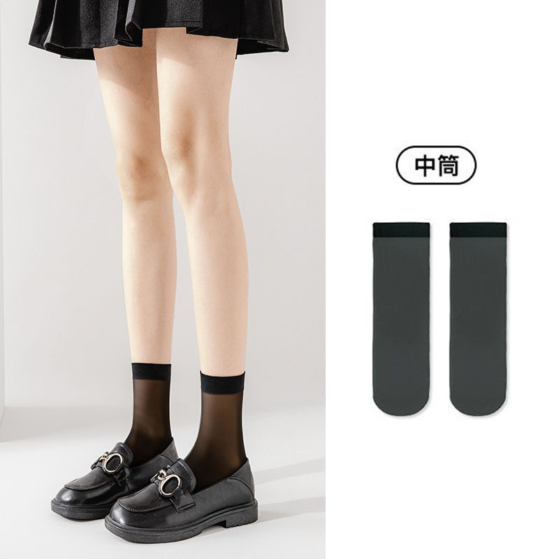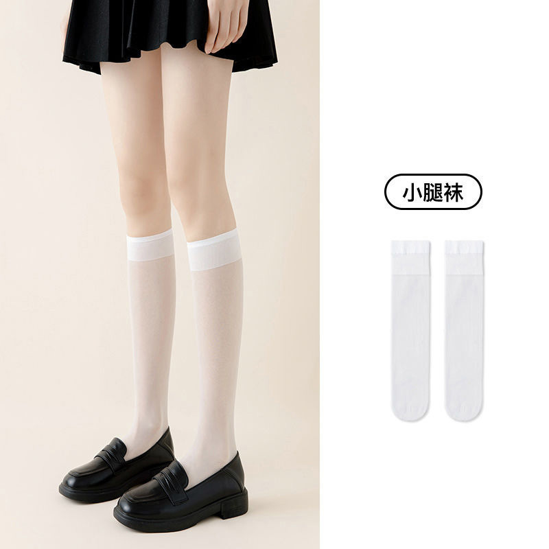 새로운 귀여운 스타일 반투명 고탄력 무릎 양말 솔리드 컬러 통기성 얇은 종아리 양말 여성 캐주얼 대학 스타일 스타킹 봄