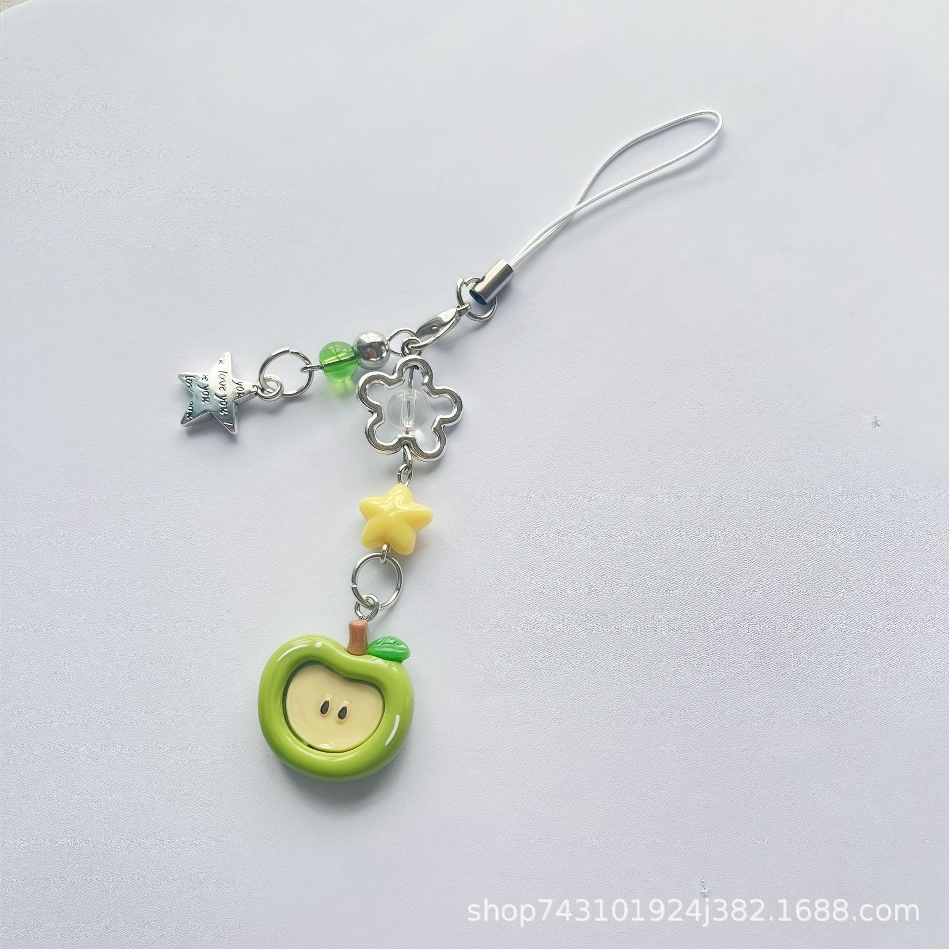 새로운 만화 스타일 귀여운 모조 과일 휴대폰 스트랩 미니 입체 키체인 카메라 가방 장식품