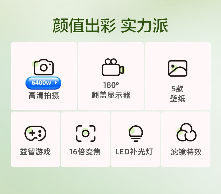 • 새로운 6400W 플립 스크린 음악 필터 Hailukeqing 권장 로컬 패키지 5개 128G 메모리로 100,000장의 사진을 촬영할 수 있습니다.