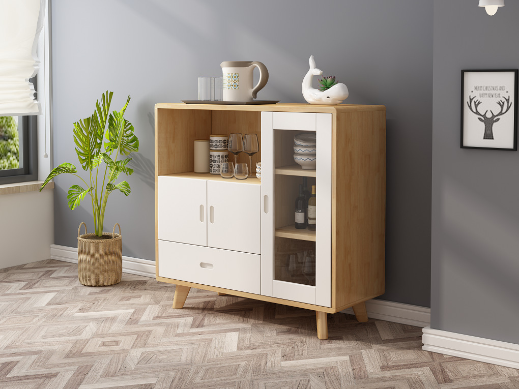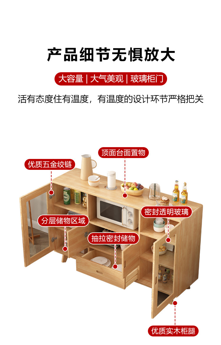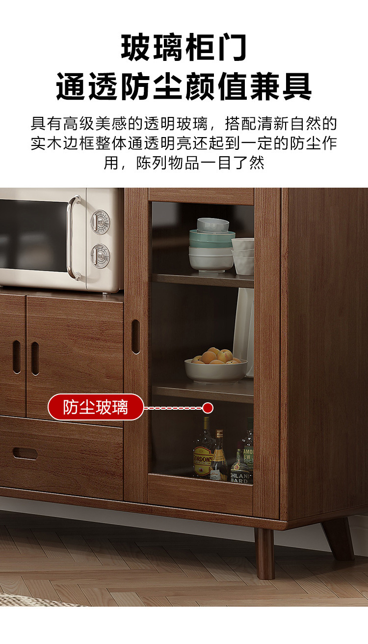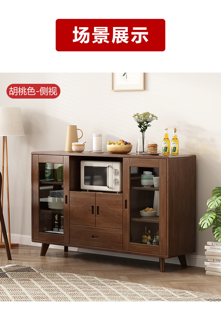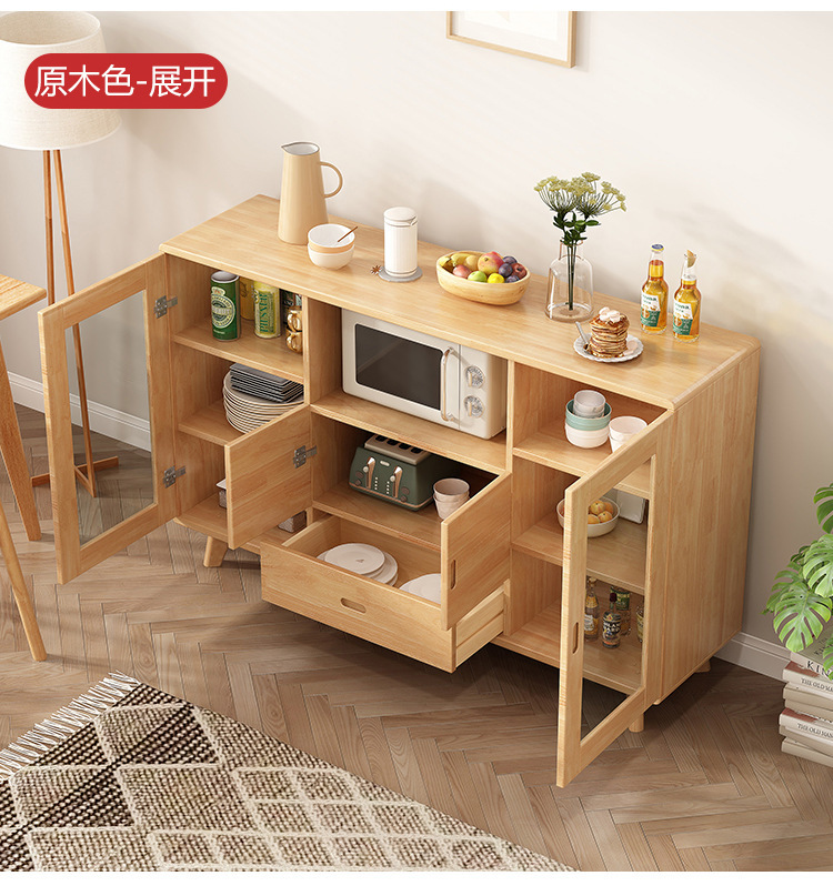 북유럽 단단한 나무 찬장 현대 간단한 작은 아파트 캐비닛 전자 레인지 캐비닛 주방 수납 캐비닛 찬장스토어 가기