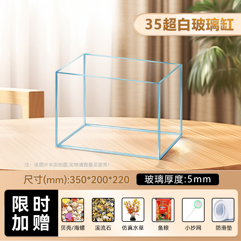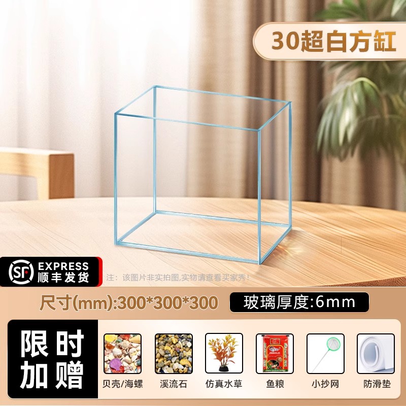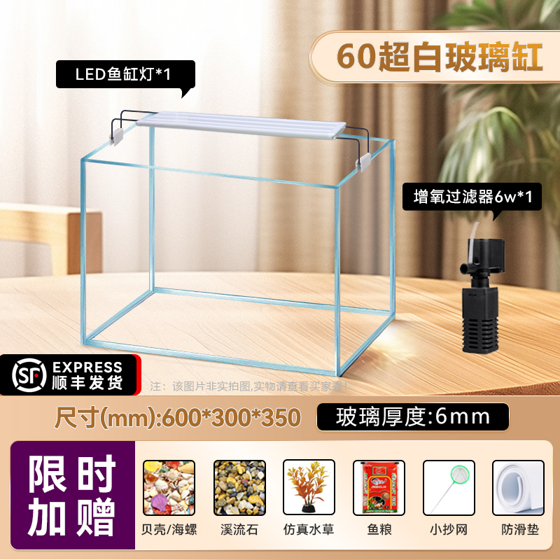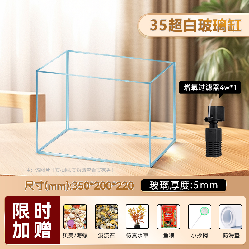 • [럭셔리 패키지 - SF Express] 진징 슈퍼 화이트 35수조(35*20*22cm) 두께 5mm(산소필터 4w+수조조명)