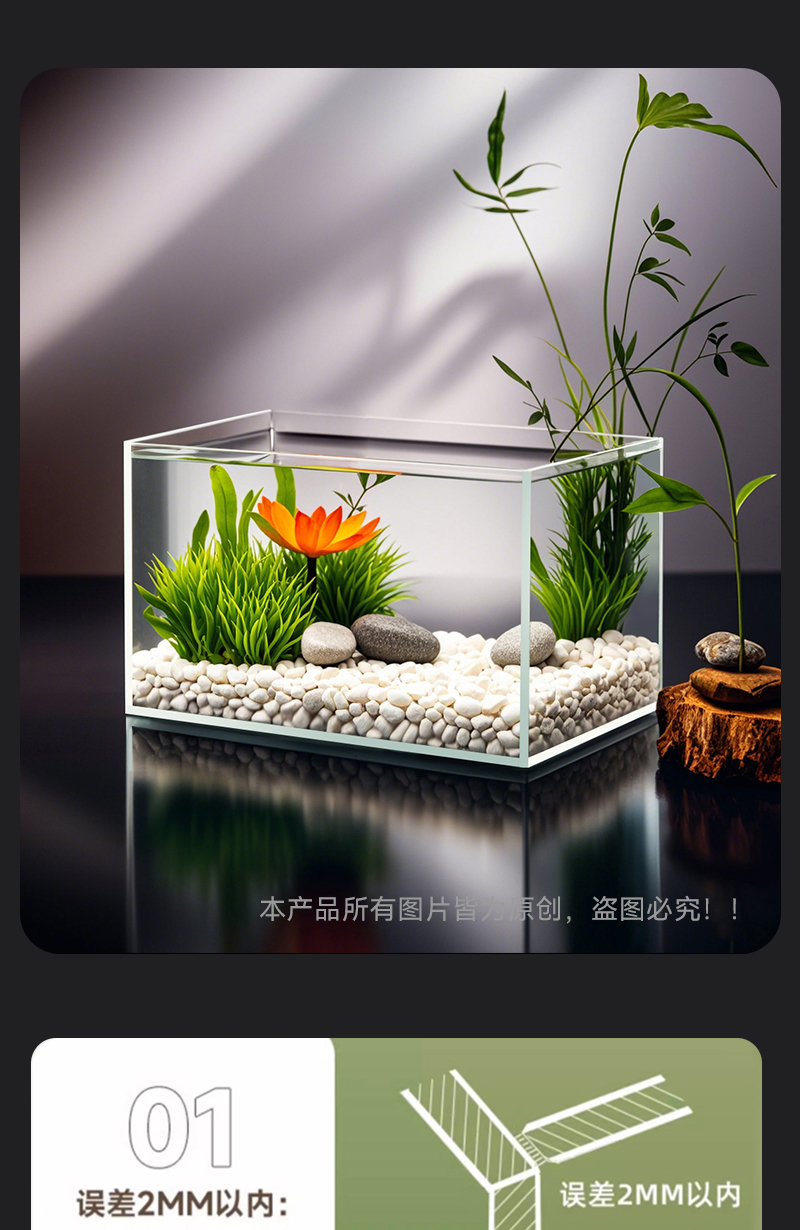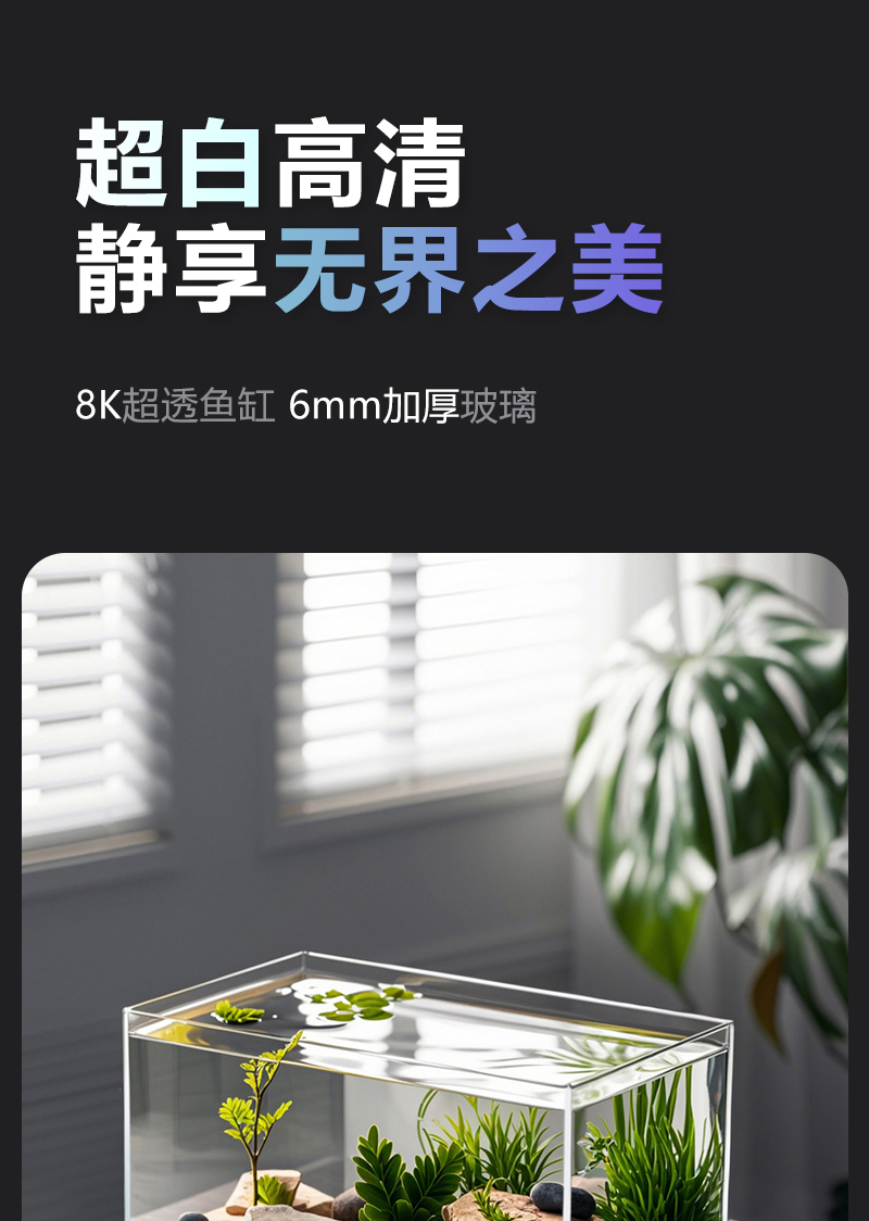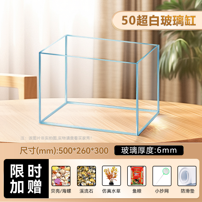 2025 새로운 슈퍼 화이트 물고기 탱크 거실 작은 황금 크리스탈 유리 사각형 거북이 생태 수족관 홈 데스크탑 특별스토어 가기