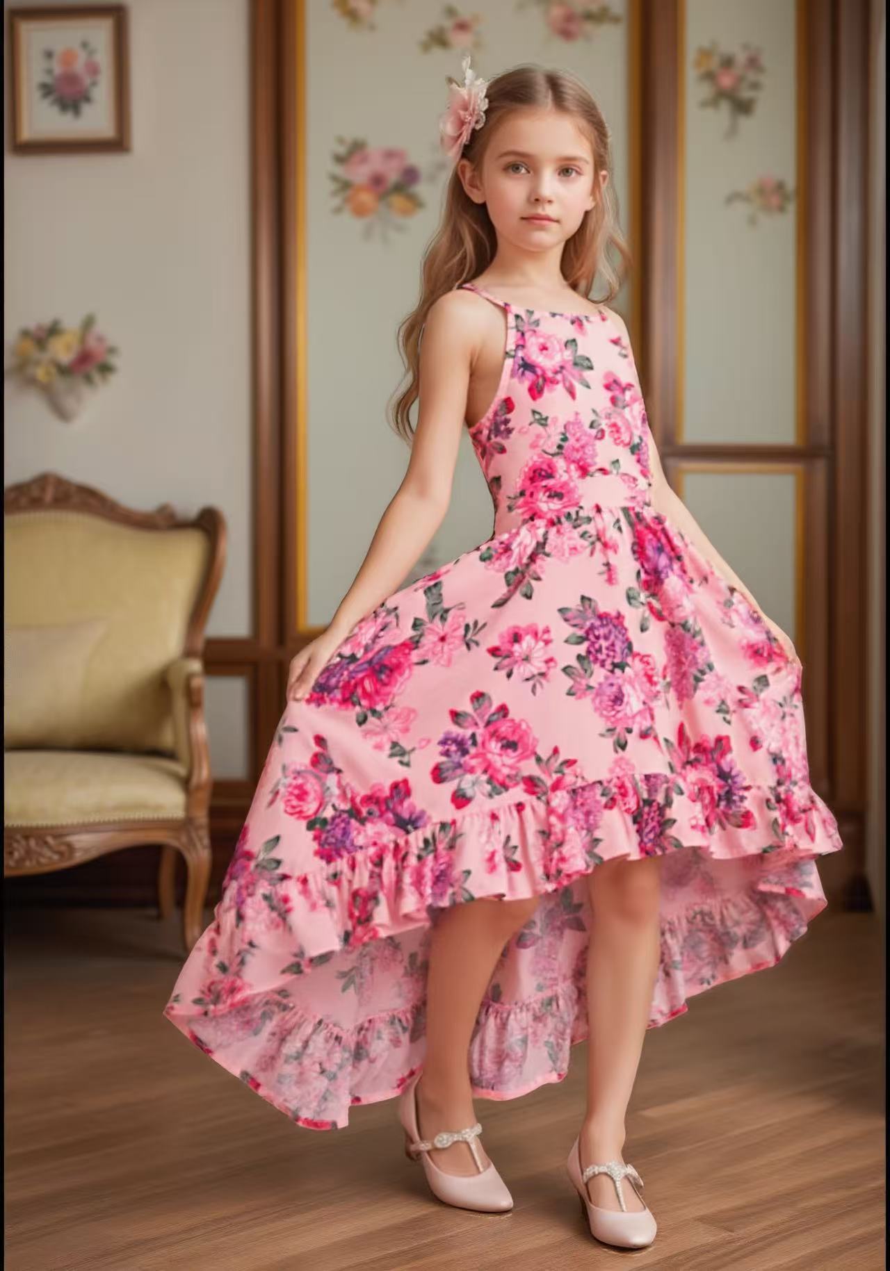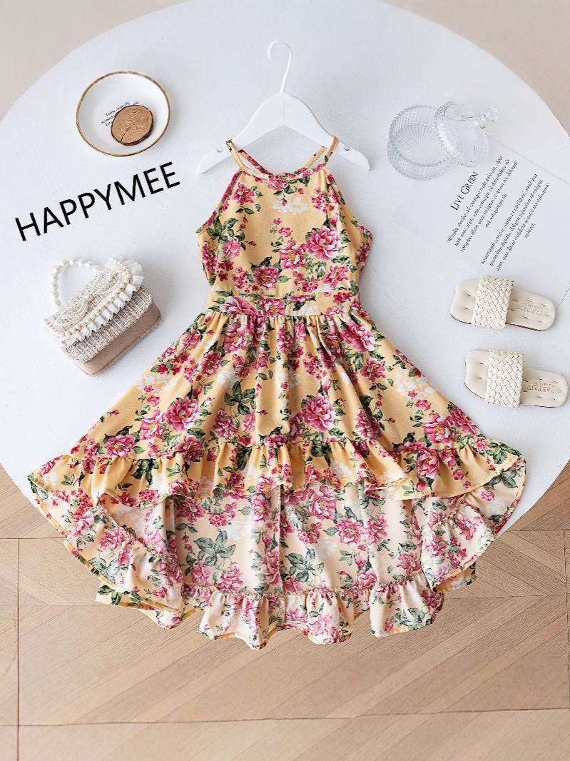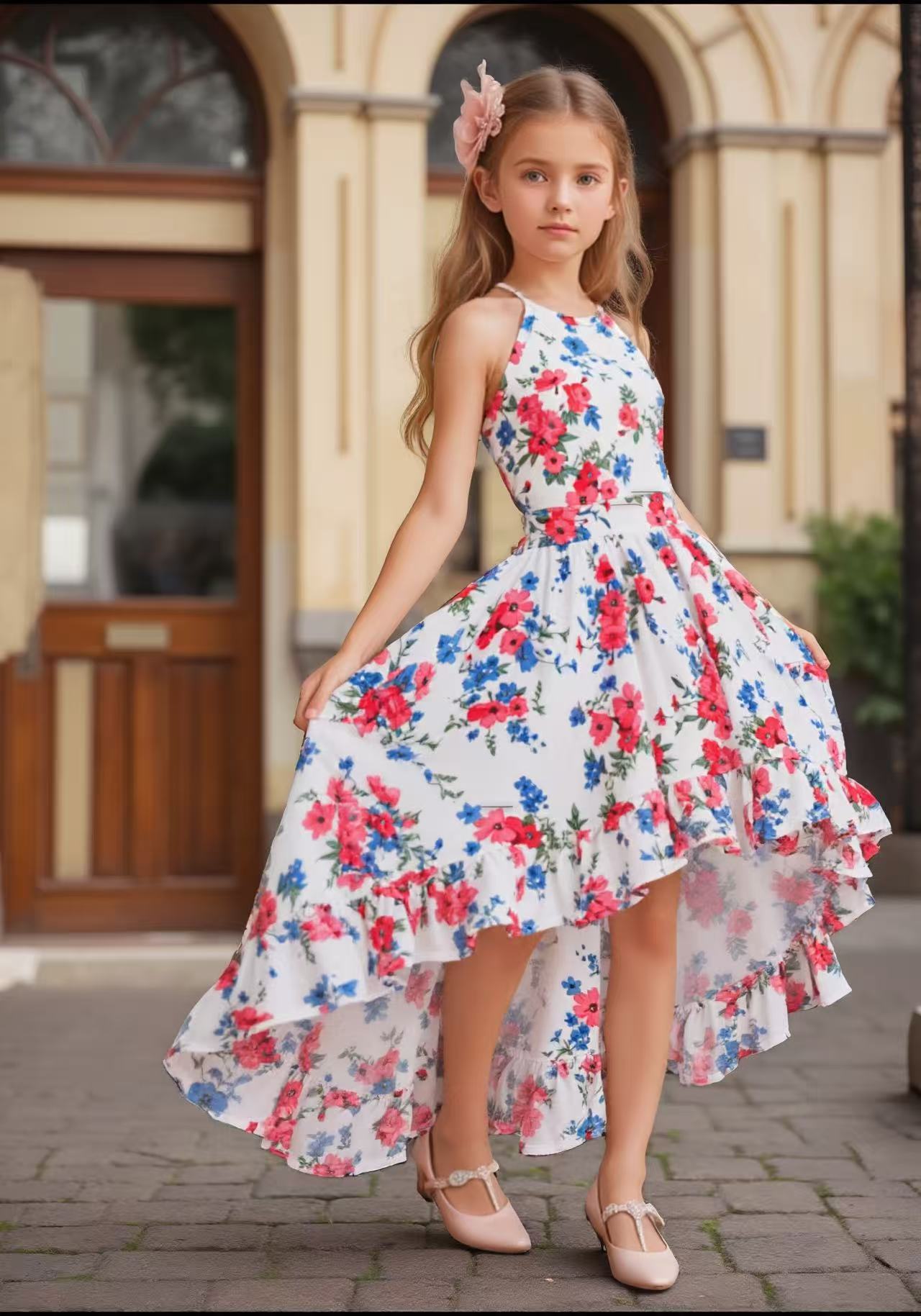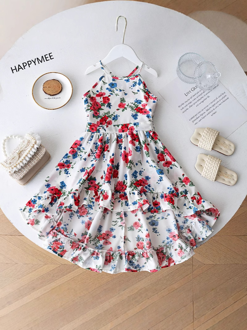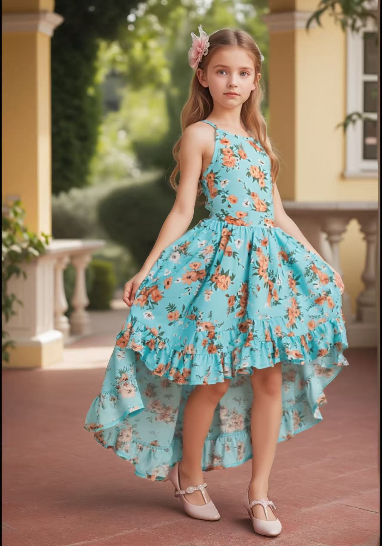 여름 해변 소녀들을 위한 와이드 스윙 드레스, 휴가 파티 슬링 롱테일 드레스, 사진 촬영을 위한 약간 신축성 있는 와이드 스윙 스커트스토어 가기
