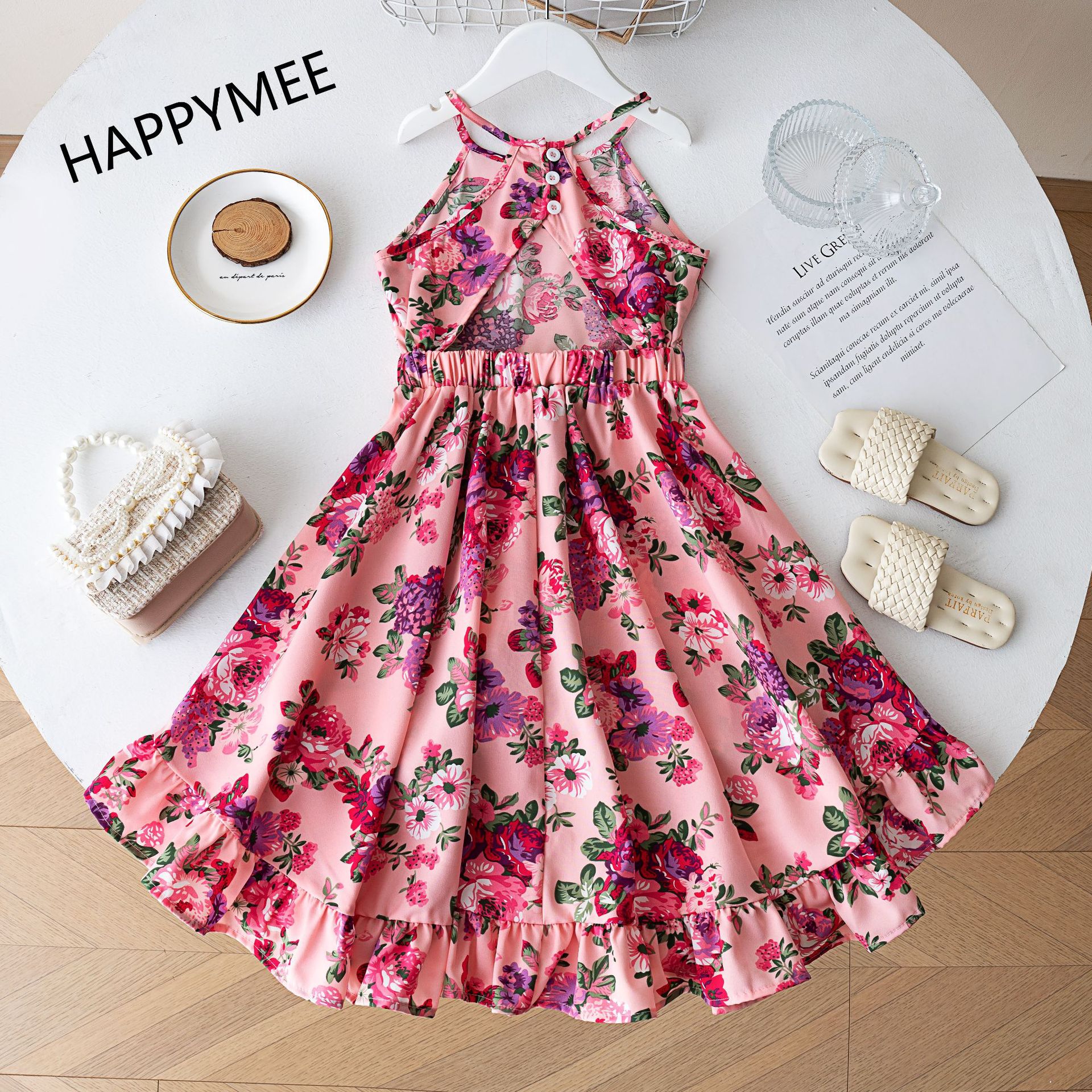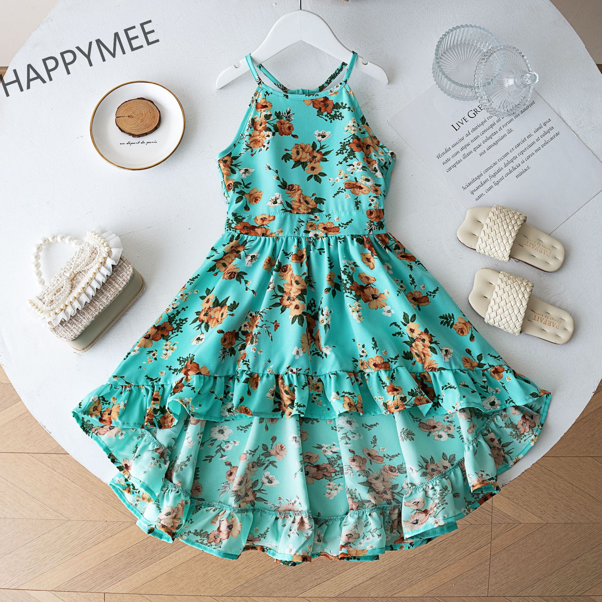 여름 해변 소녀들을 위한 와이드 스윙 드레스, 휴가 파티 슬링 롱테일 드레스, 사진 촬영을 위한 약간 신축성 있는 와이드 스윙 스커트