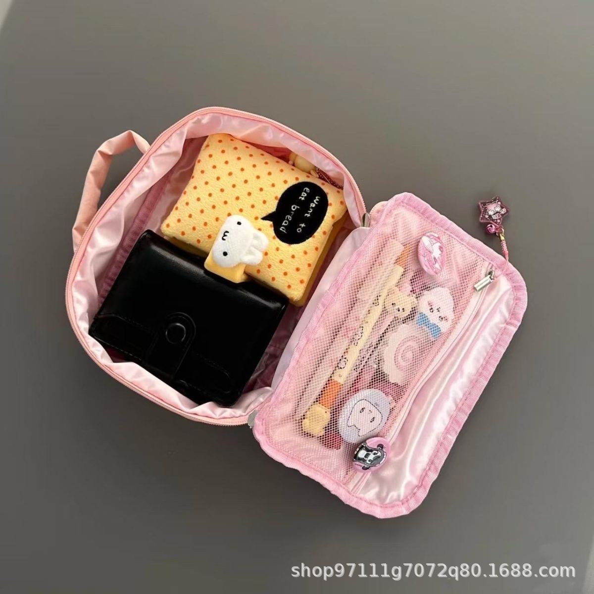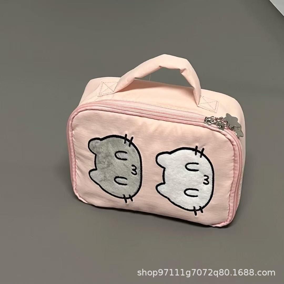 새로운 기능 행복한 고양이 핑크 화장품 가방 ccd 저장 가방 귀여운 만화 핸드북 작은 화장품 가방 휴대용스토어 가기
