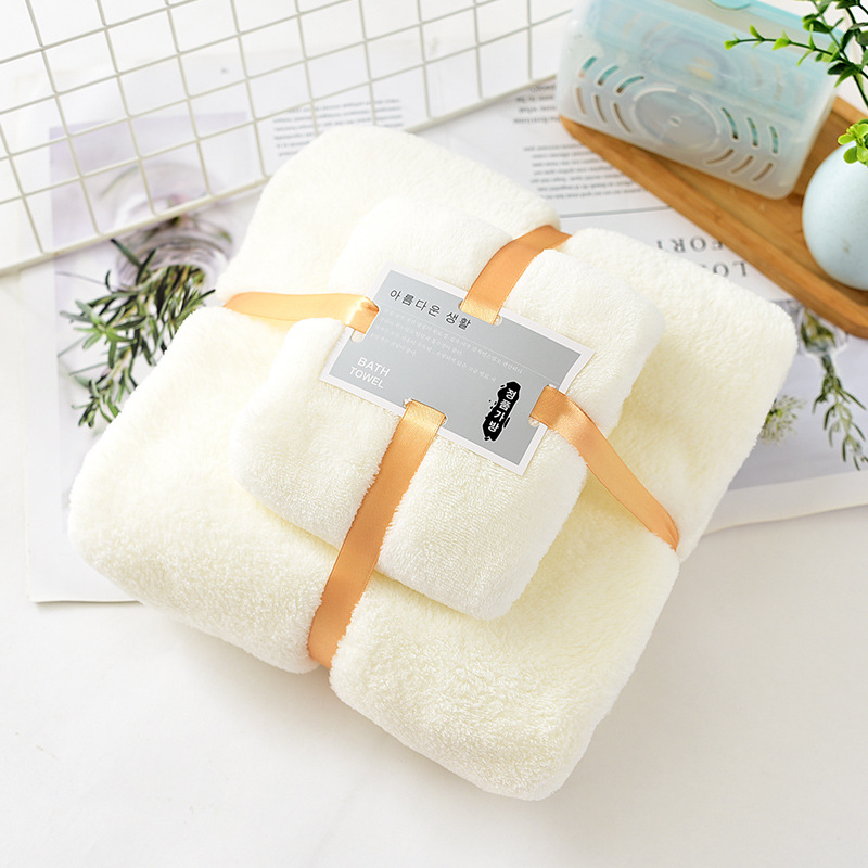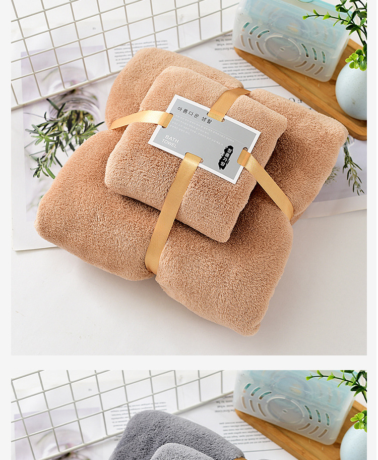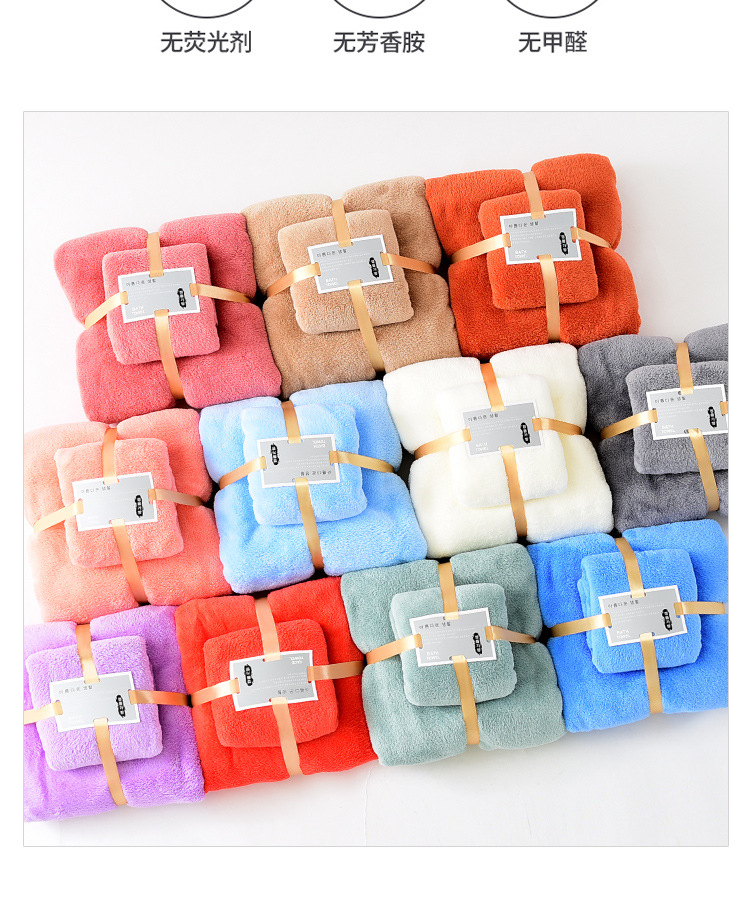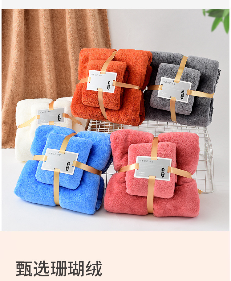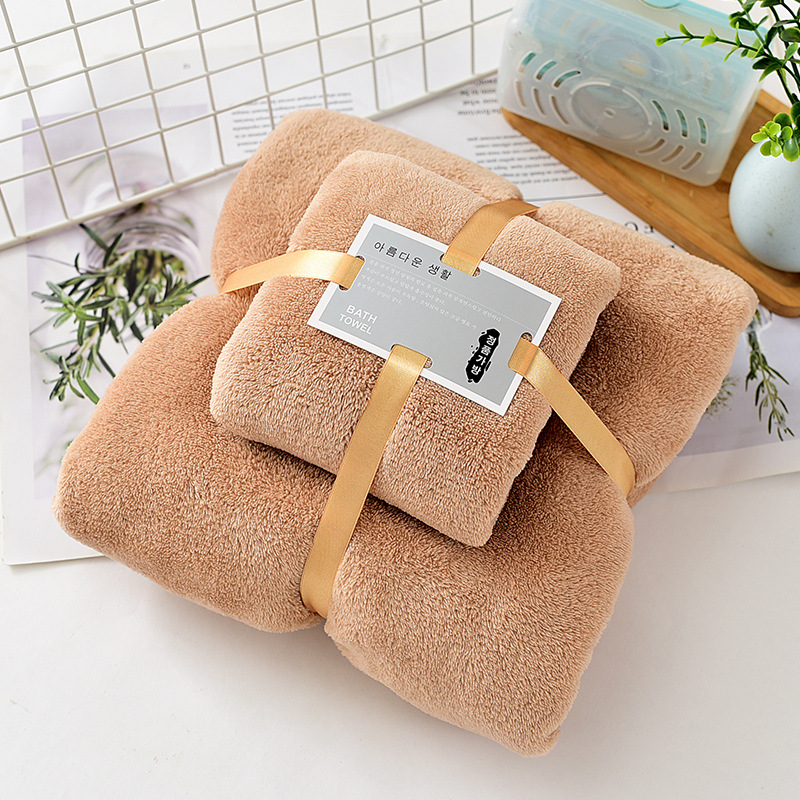 공장 도매 산호 벨벳 두꺼운 수건 세트 목욕 수건 수건 세트 부드러운 흡수성 대외 무역 자수 로고