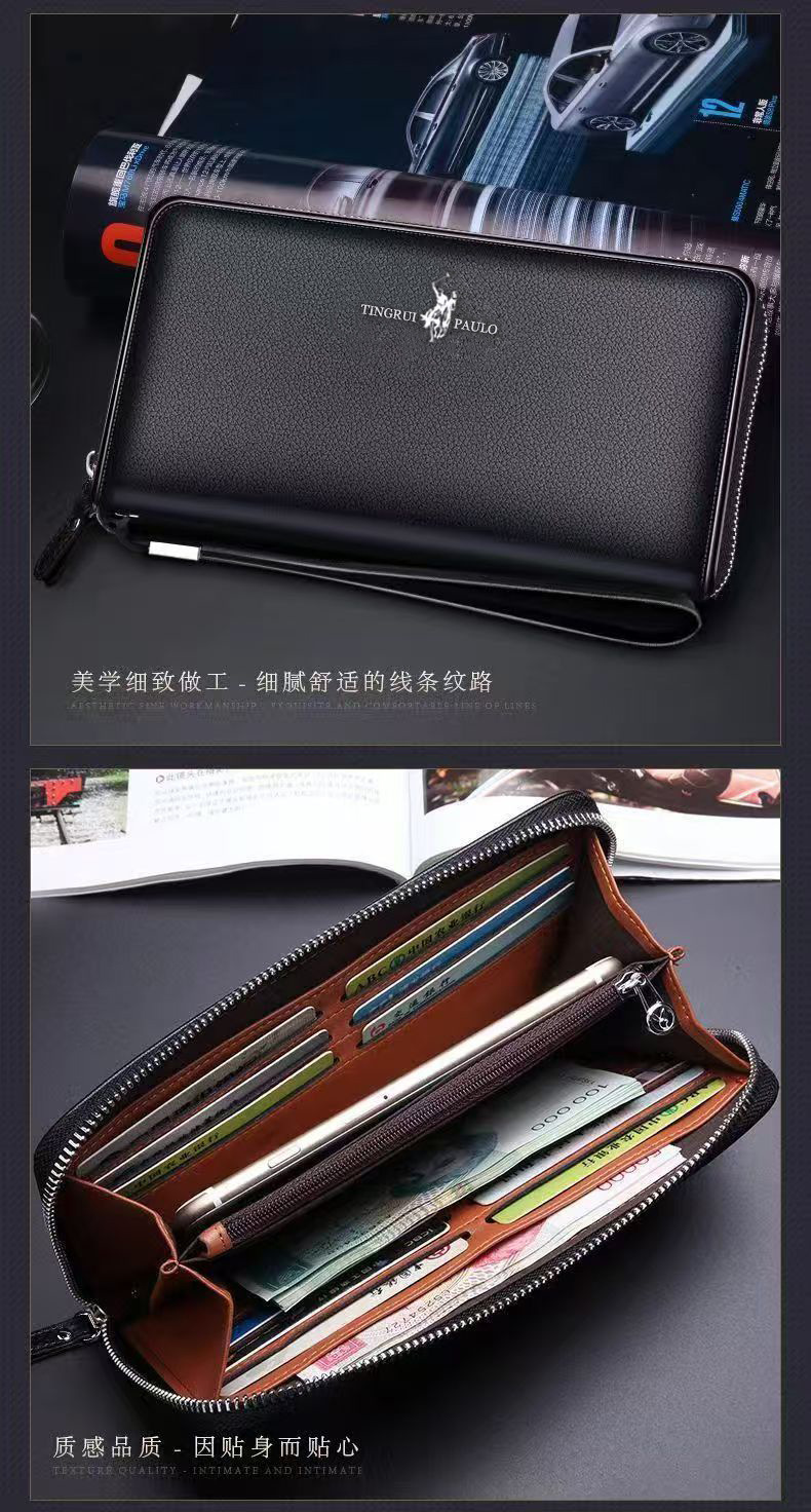 Paul Gongzi 핸드백 남성용 지갑 롱 가죽 지갑 멀티 카드 슬롯 지갑 비즈니스 학생 클러치 남성용스토어 가기
