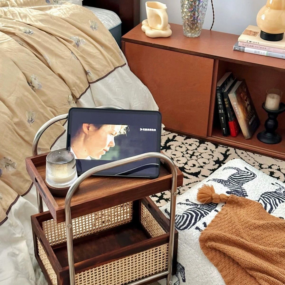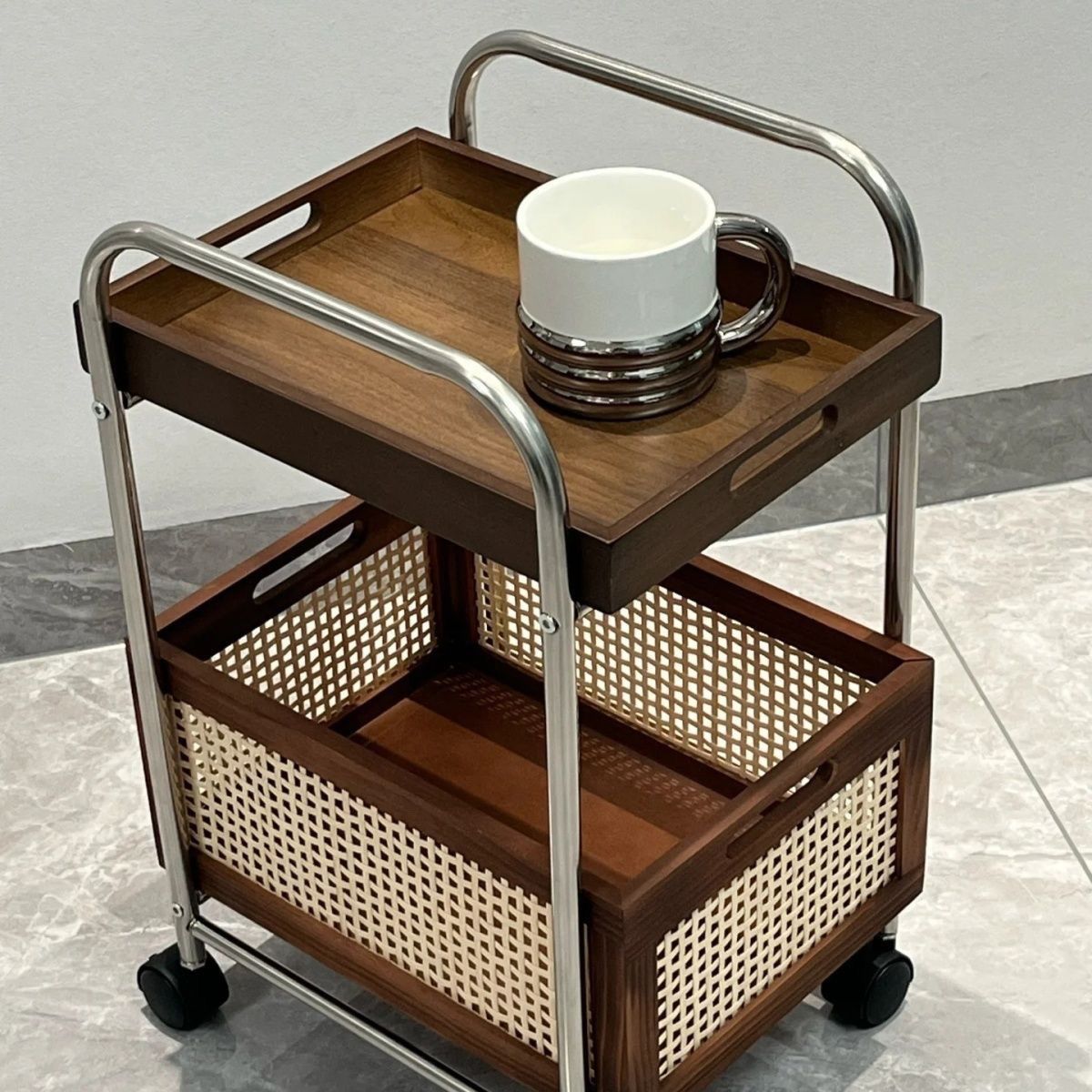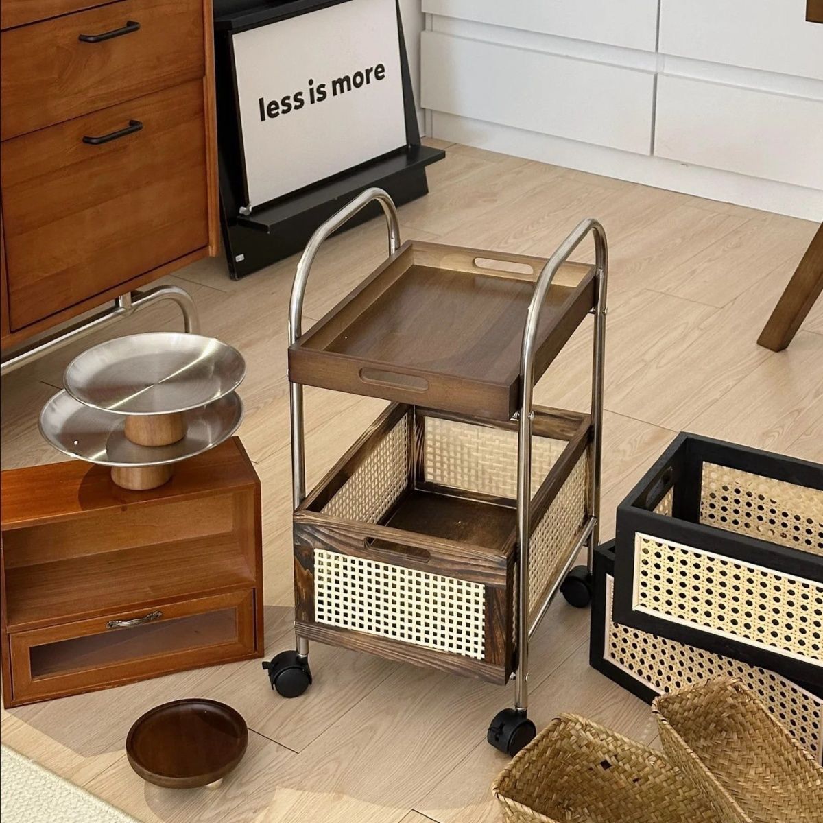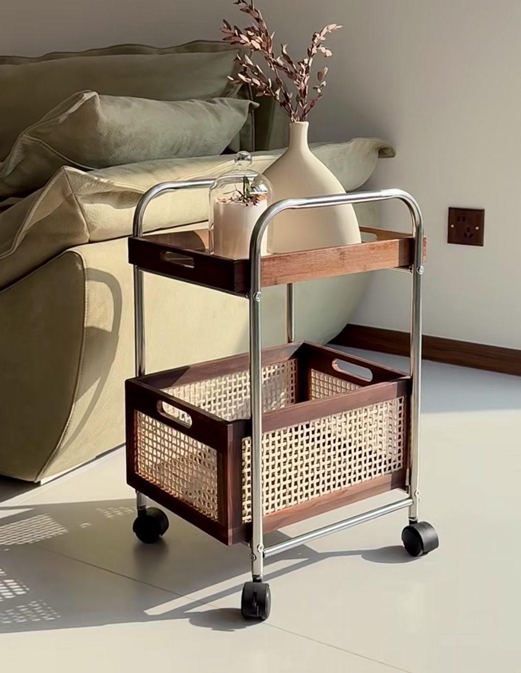 인기 있는 중세 스타일의 수납 선반, 다층 수납 선반, 트롤리 수납 선반, 바닥에서 천장까지 이어지는 인터넷 유명인 등나무 수납 바구니