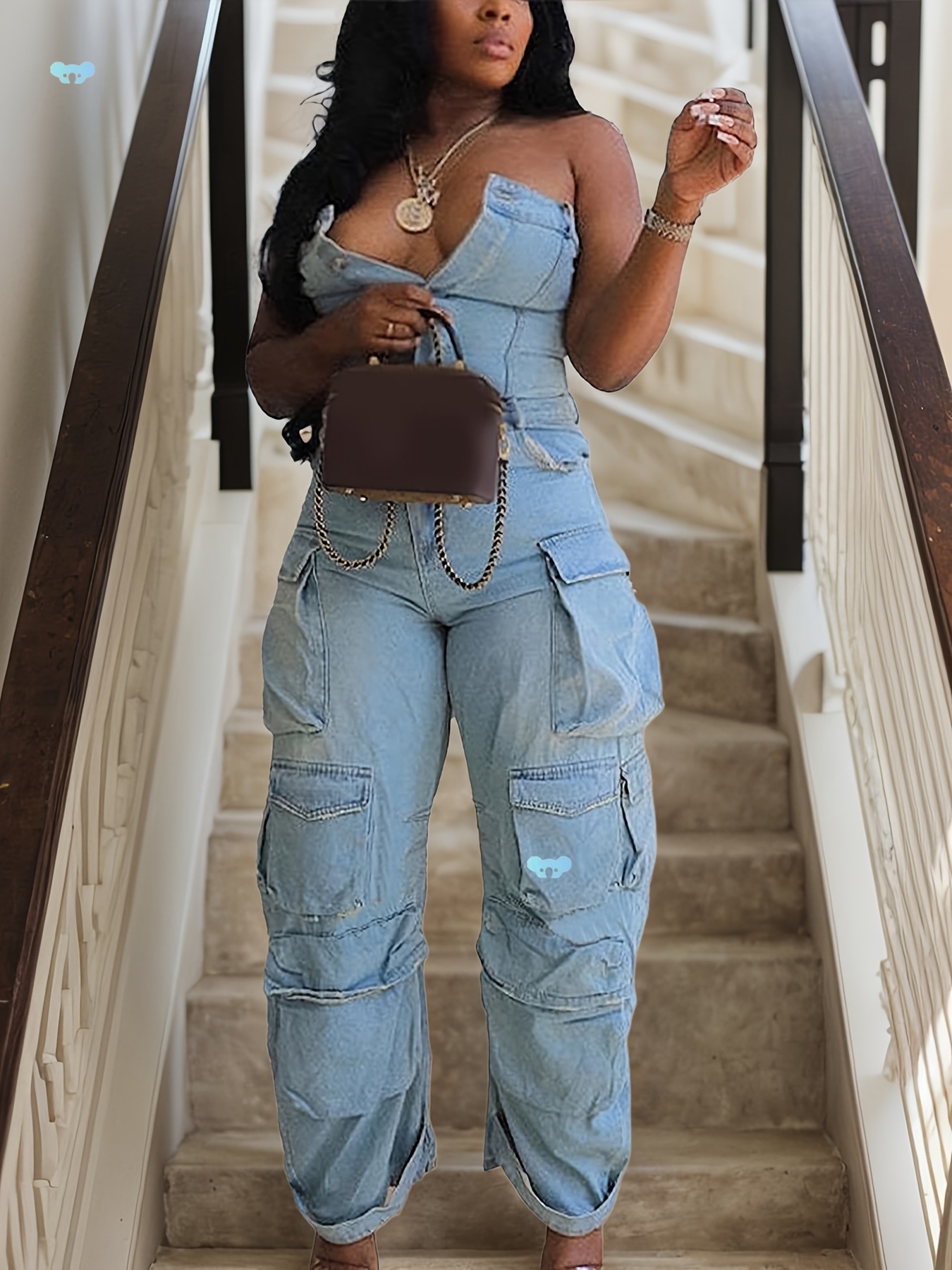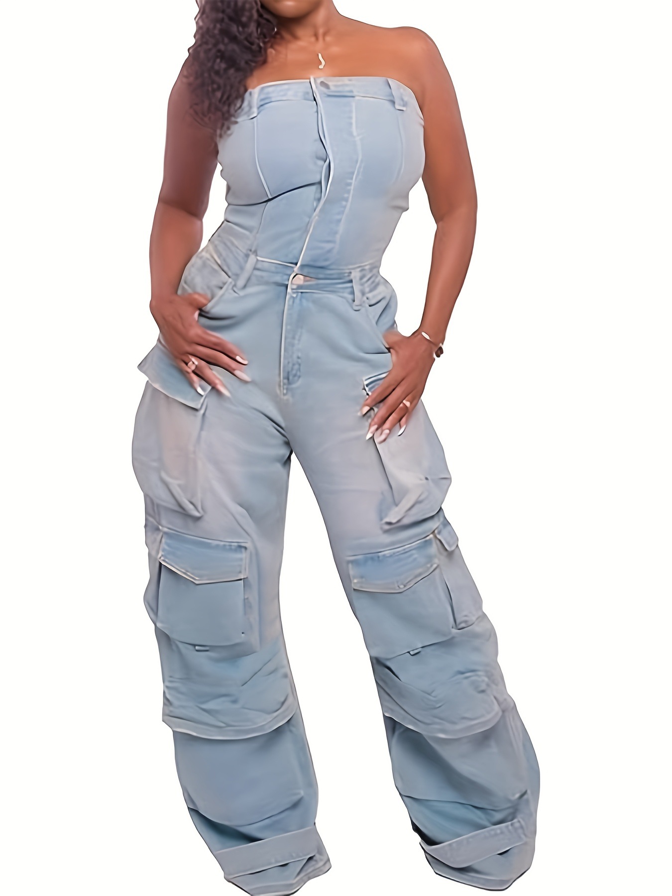 여성 캐주얼 다용도 작업복 데님 점프수트 Off The Crossborder