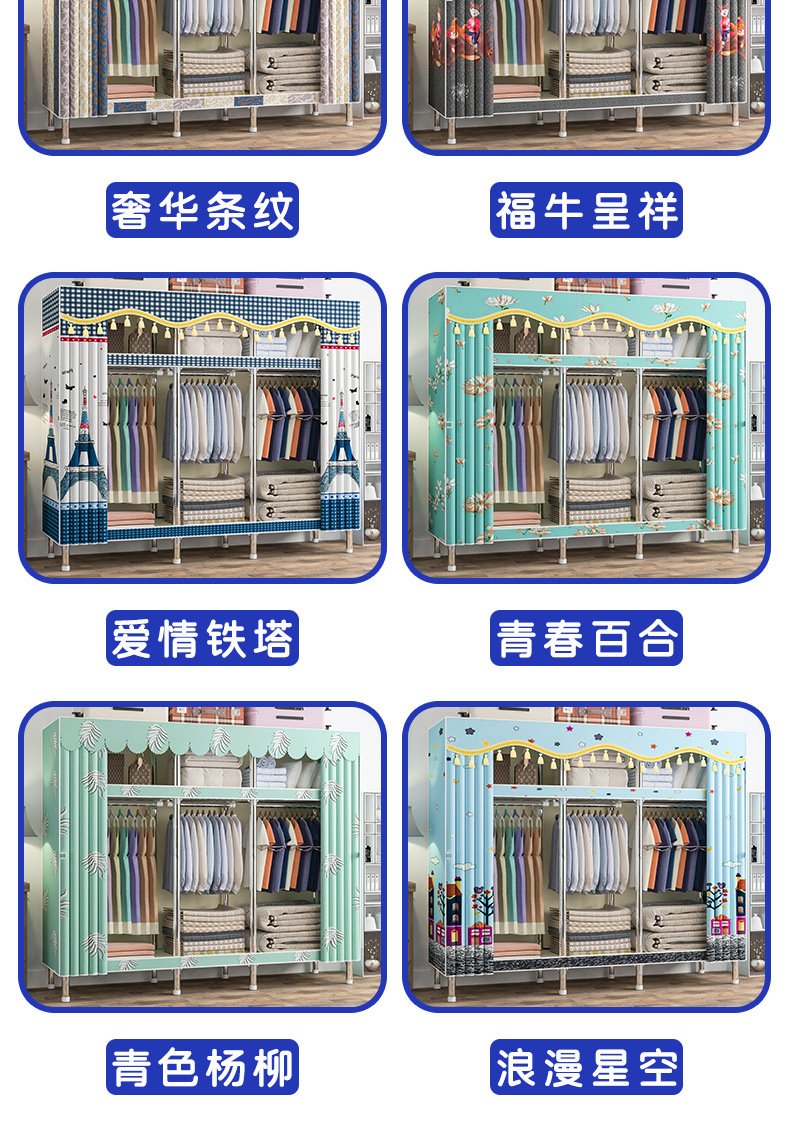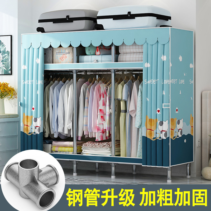 간단한 옷장 강철 파이프 두꺼운 강화 천 옷장 홈 침실 조립 옷장 보관 랙 공급망 공장 공급스토어 가기