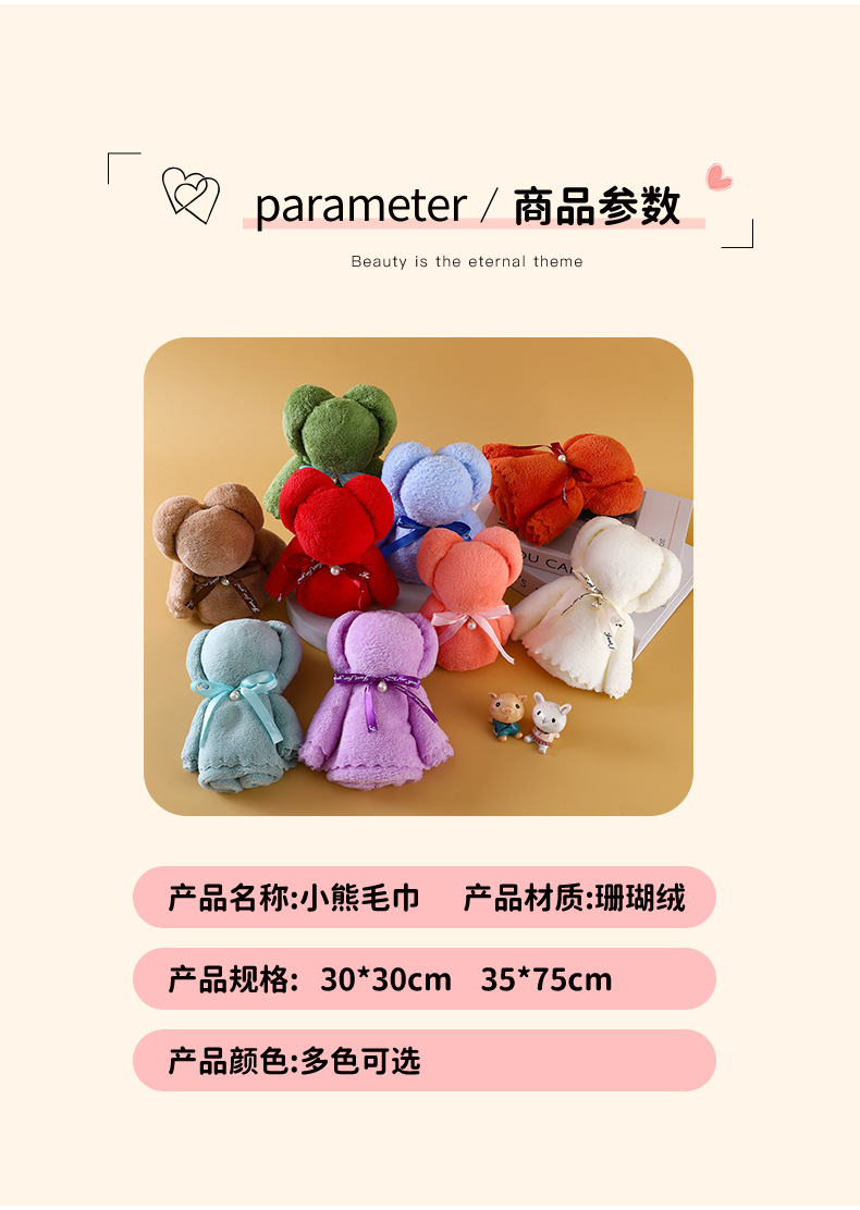 산호 벨벳 곰 모양 수건 기념품 답례 선물 명절 선물 오픈 복지 매장 축하 이벤트 작은 선물