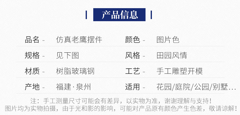 야외 정원 안뜰 풍경 장식 독수리 장식품 국경 간 시뮬레이션 독수리 유리 섬유 조각 수지 공예품