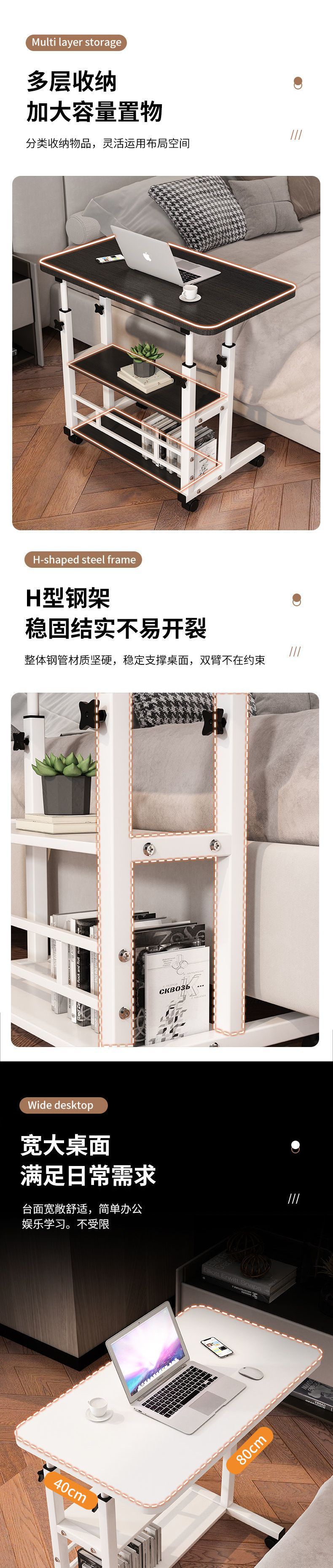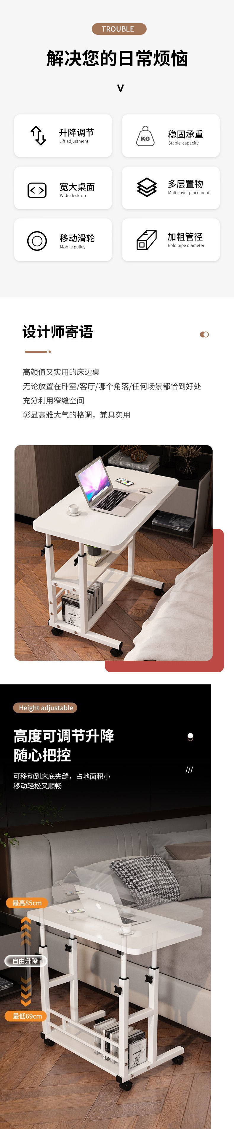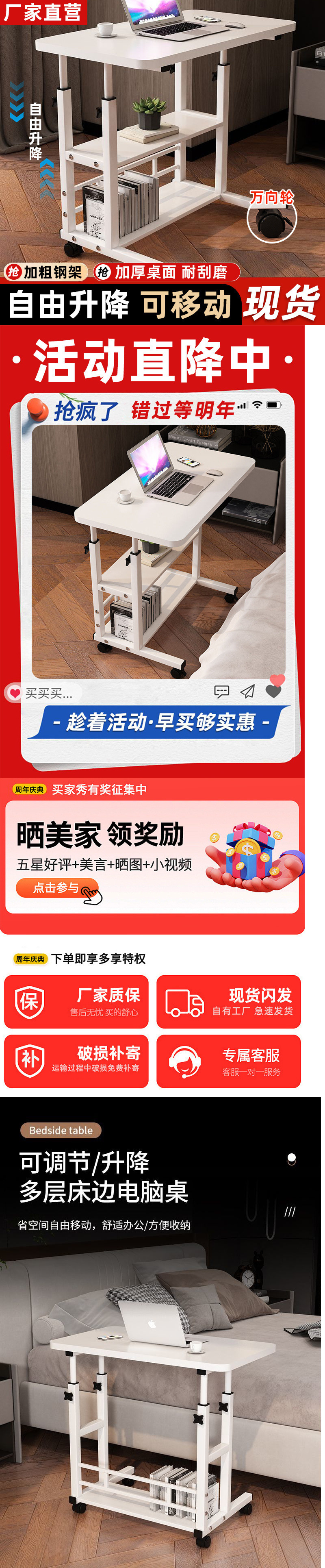 독일 품질 침대 옆 테이블 이동식 리프팅 컴퓨터 테이블 간단한 학생 책상 침실 기숙사 홈 게으른 간단한스토어 가기