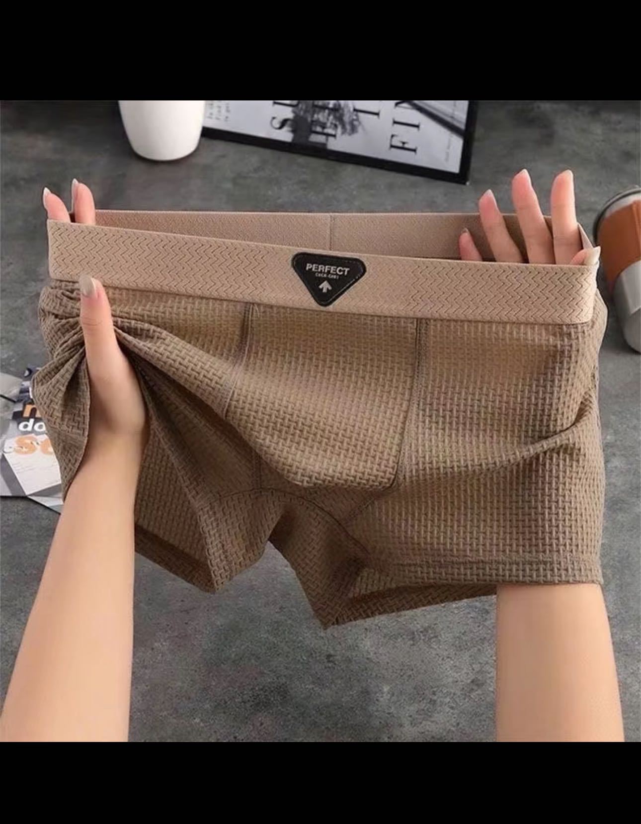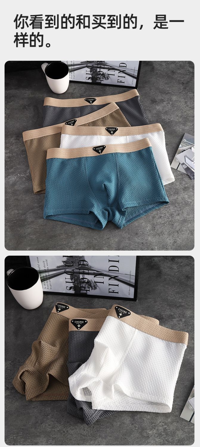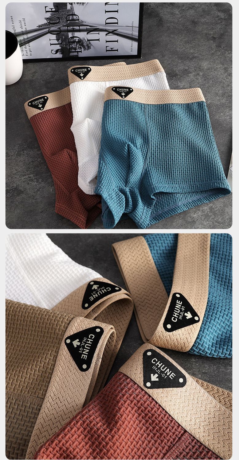 새로운 얼음 실크 남성 속옷 남성 봄, 여름 시원한 통기성 복서 팬티 양각 솔리드 컬러 중간 허리 남성 복서 팬티스토어 가기