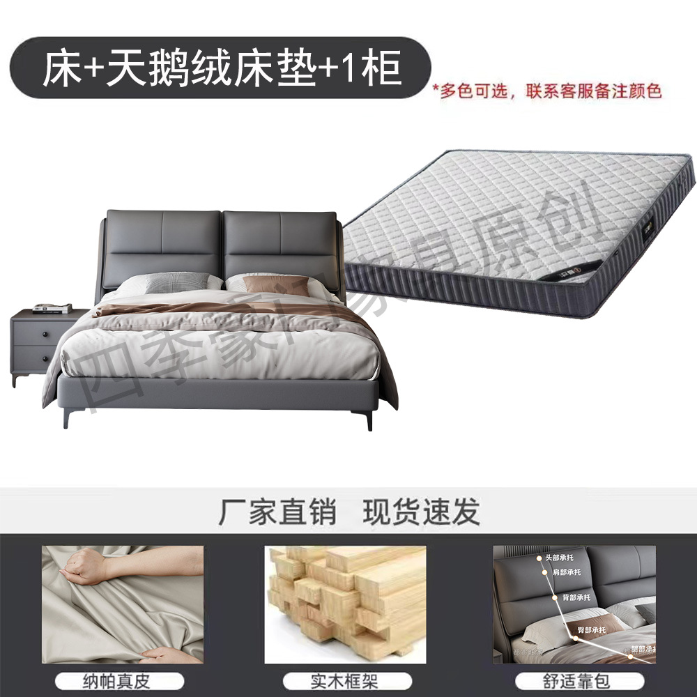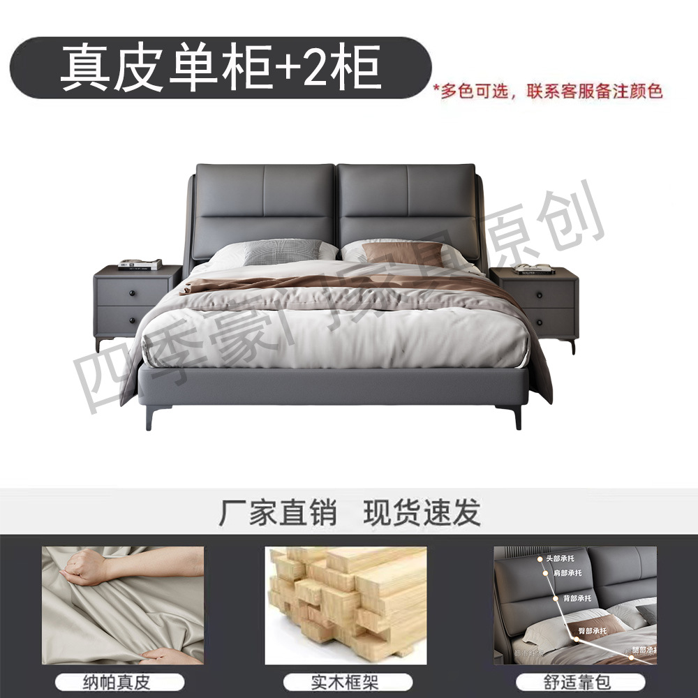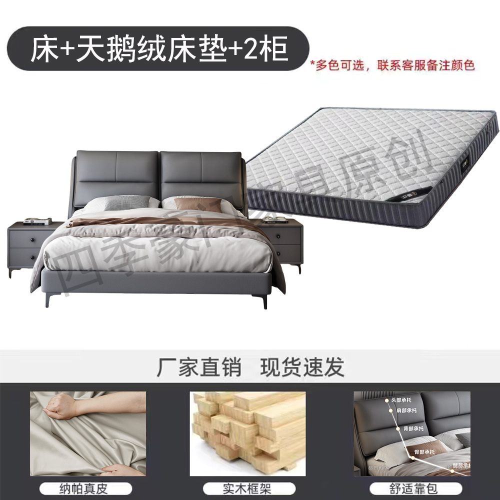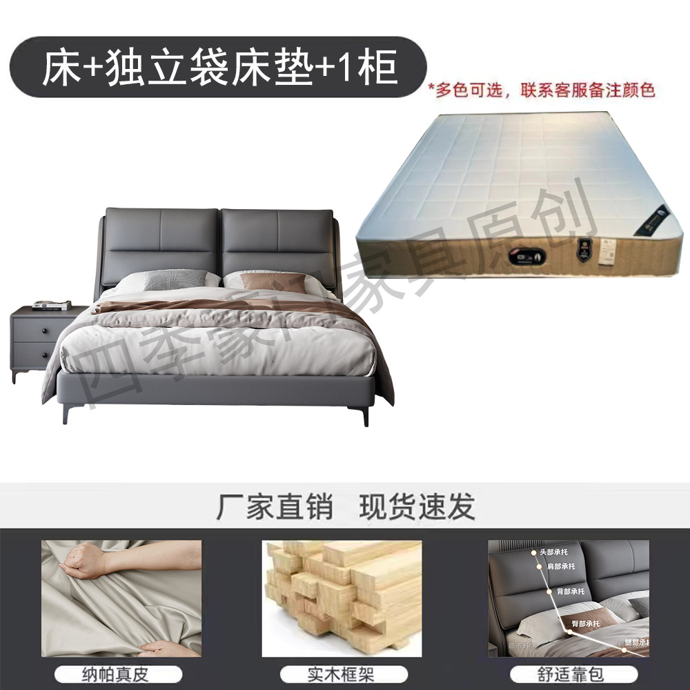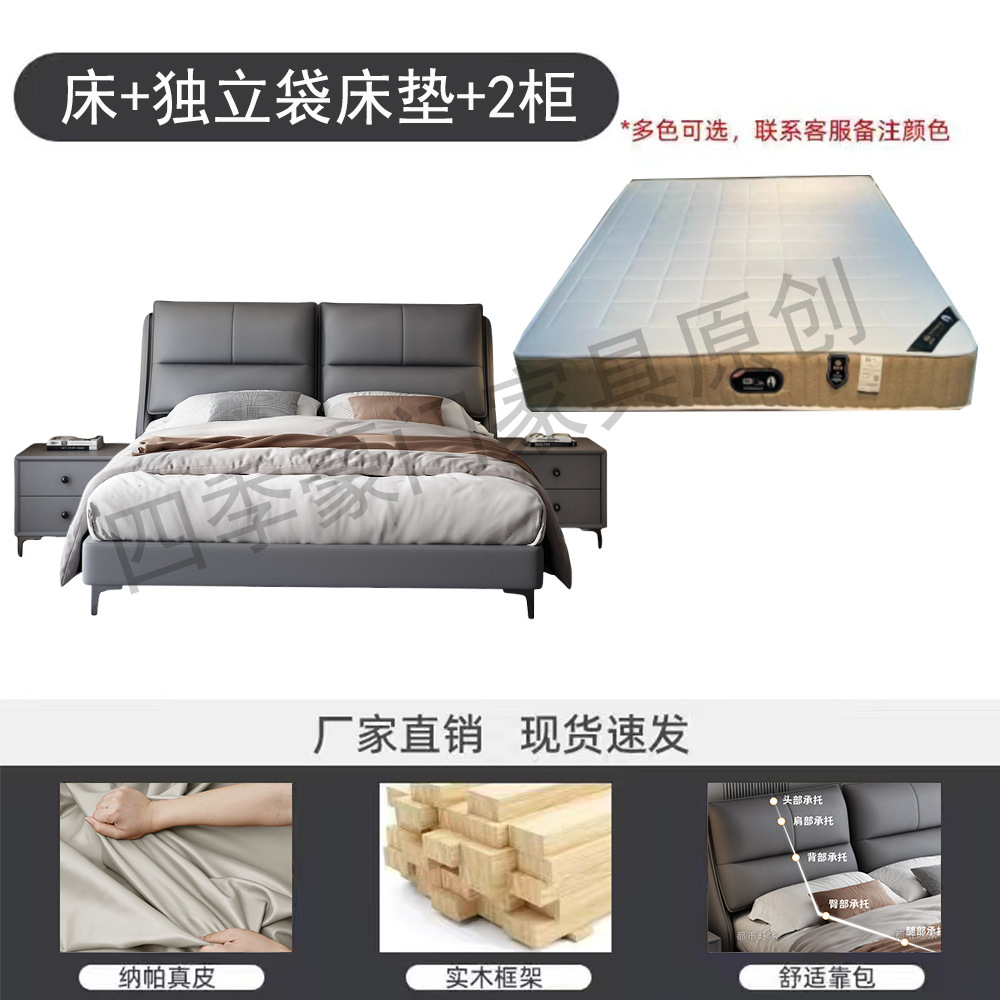• 고급 가죽 침대 + 와플 독립 포켓 스프링 매트리스 + 캐비닛 2개