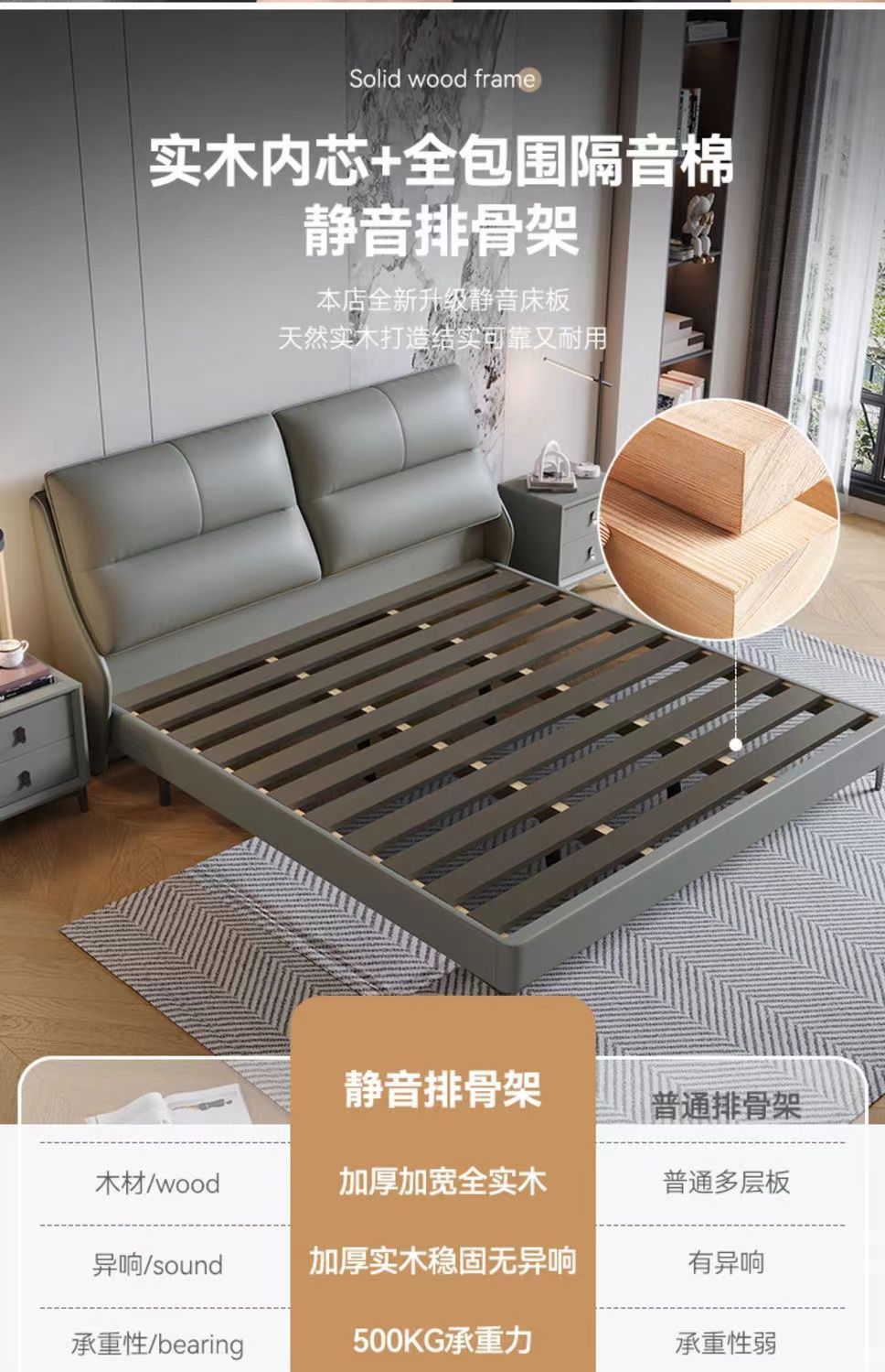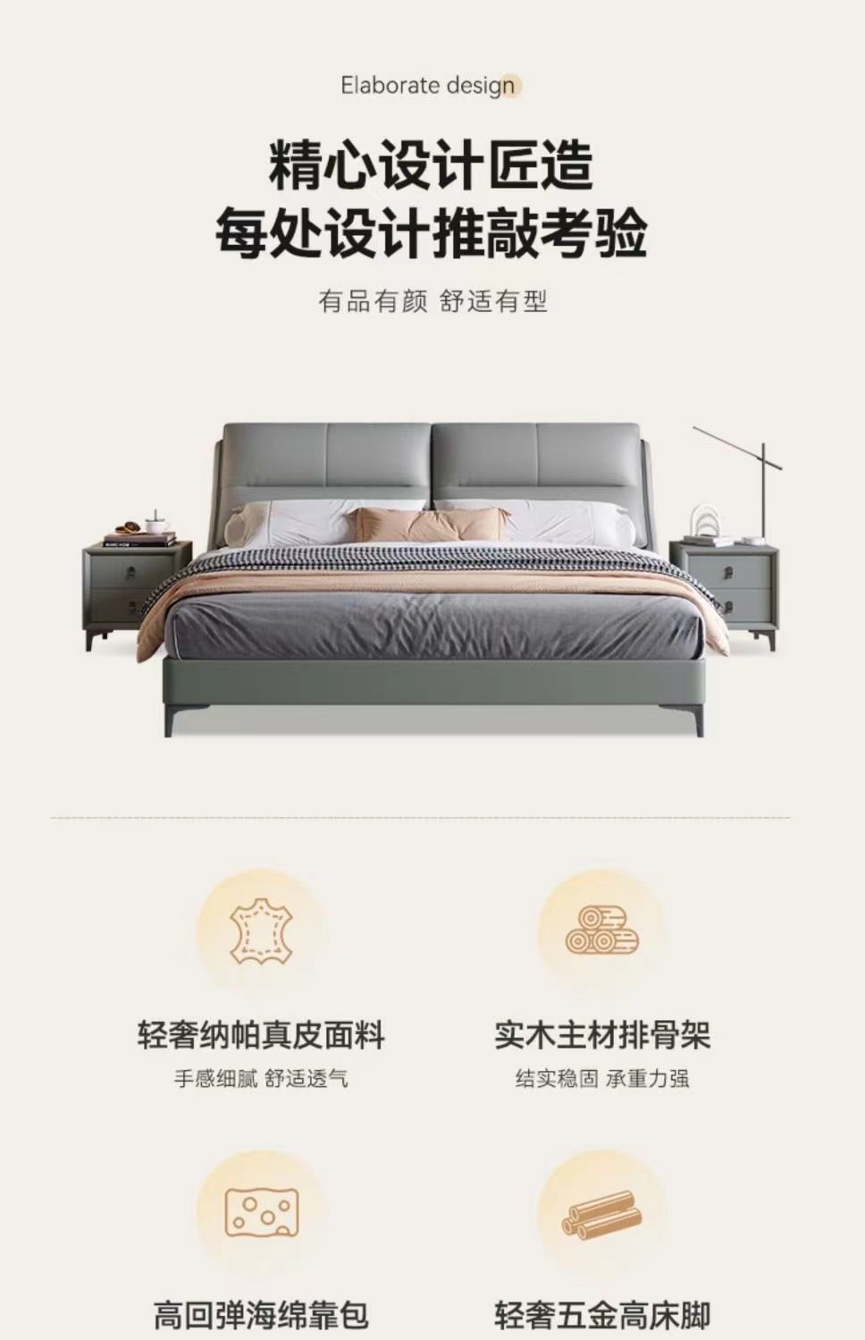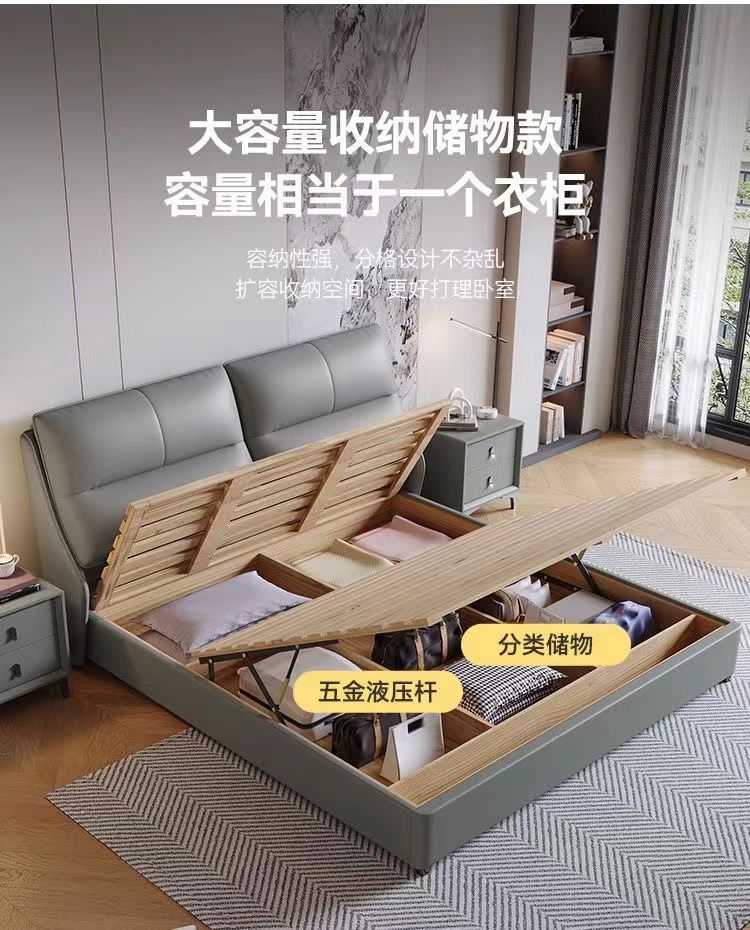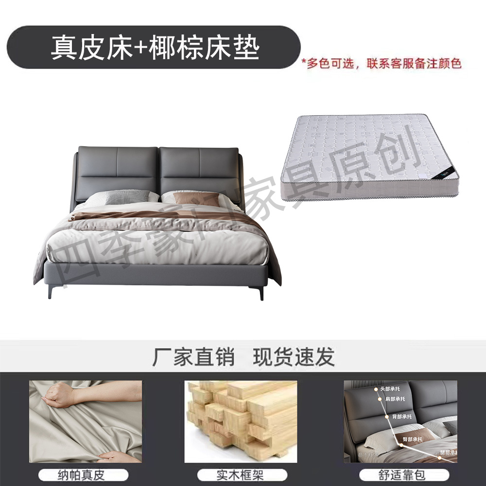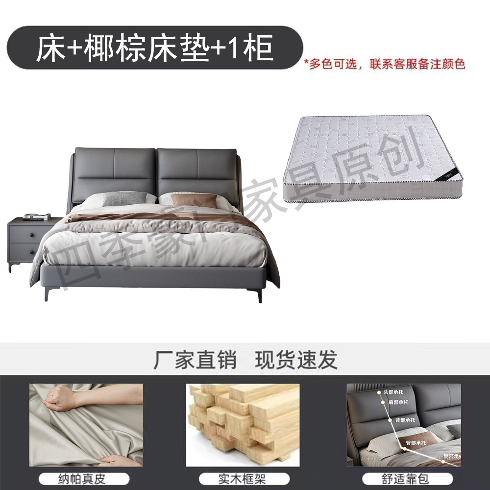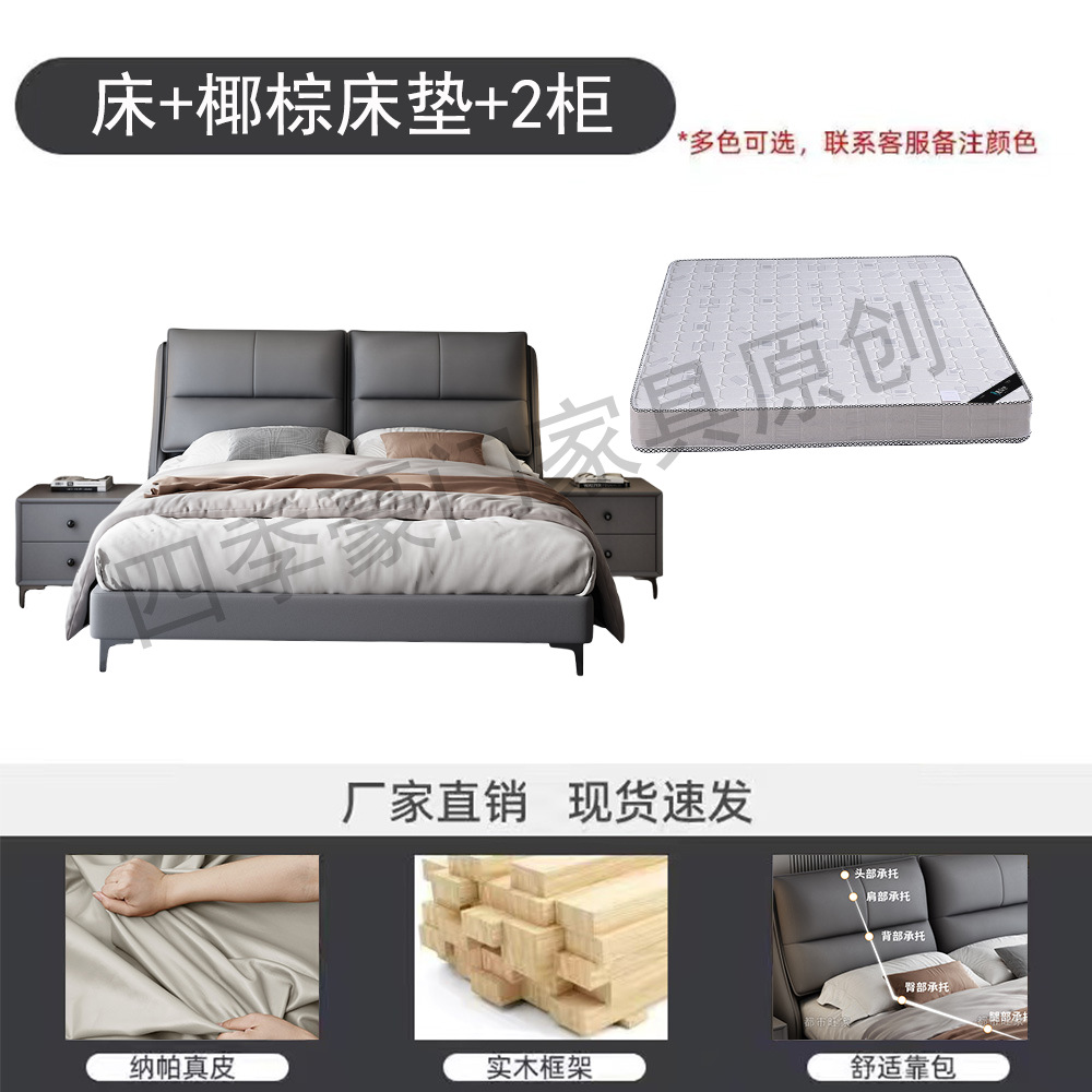 • 고급 가죽 침대 + 20cm 코코넛 야자 스프링 매트리스 + 캐비닛 2개