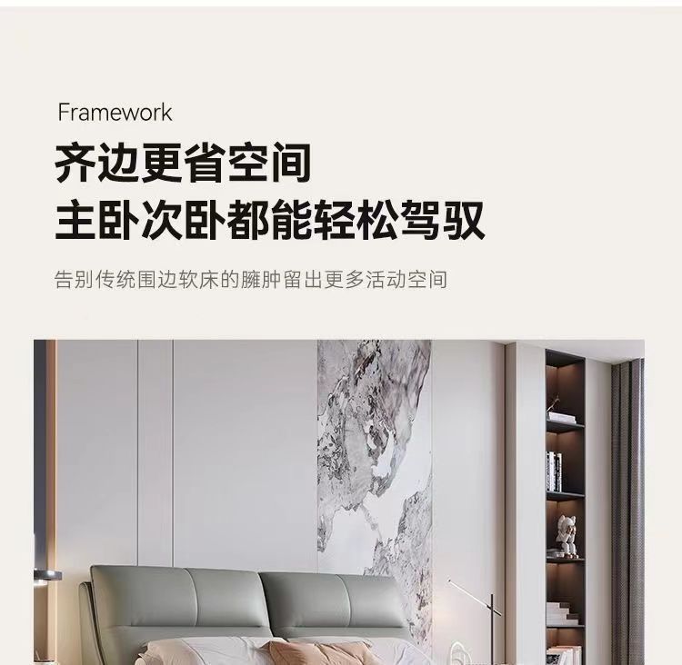 이탈리아 스타일의 가벼운 고급 가죽 침대, 심플하고 모던한 소형 아파트 1.8m 더블 침대, 마스터 침실 웨딩 침대, 1.5m 수납 소프트 백 침대스토어 가기