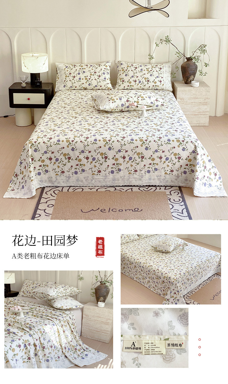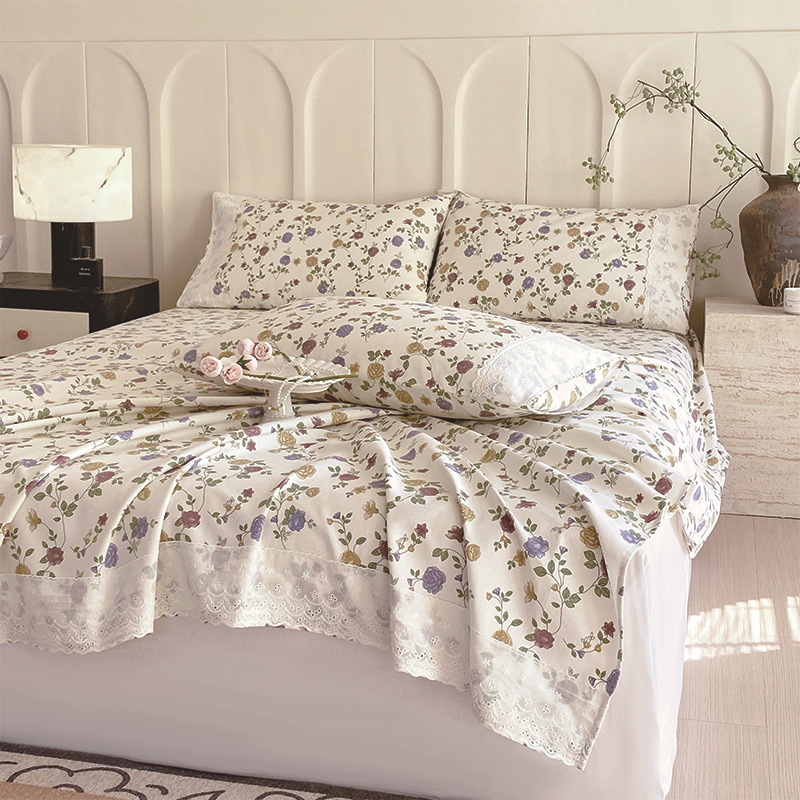 클래스 A 100% 면 올드 루프 레이스 침대 순수 면 사계절 가정용 더블 면 및 린넨 시트 도매스토어 가기