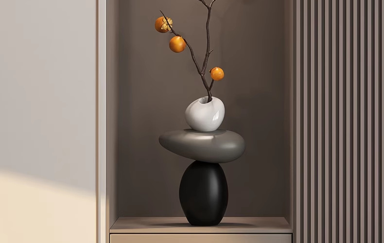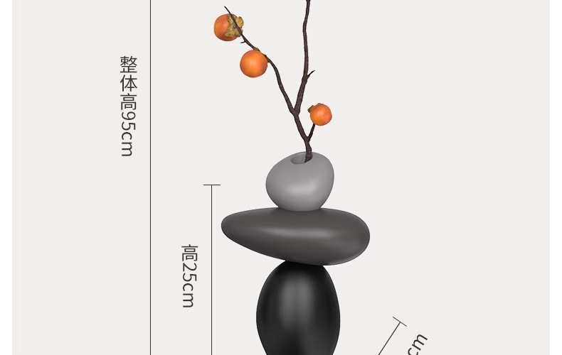 • 돌이 달린 꽃병 - 검정색 (무료 모조 감)