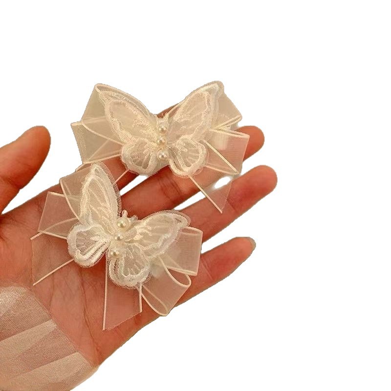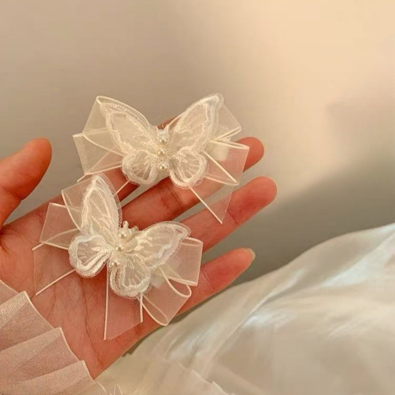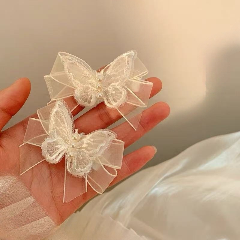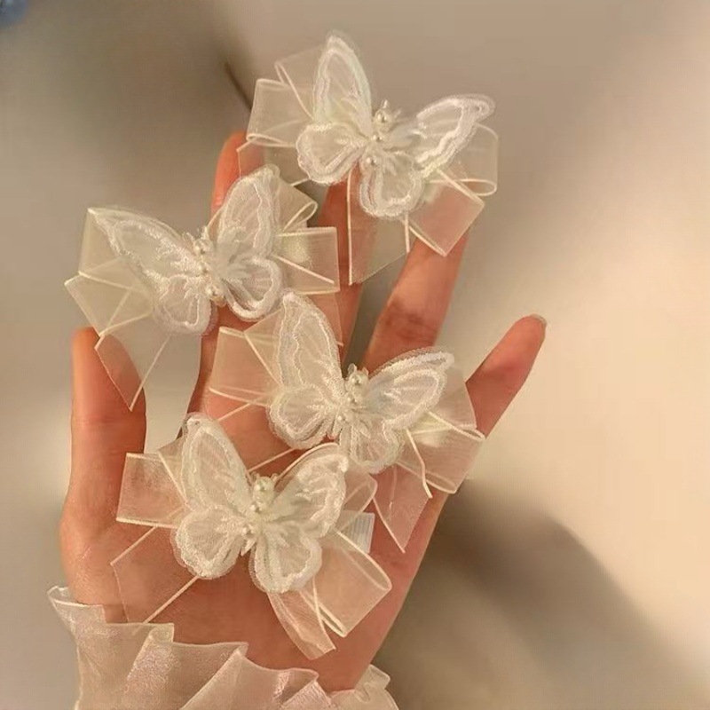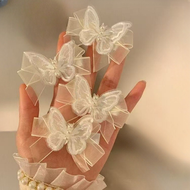 슈퍼 요정 흰색 메쉬 나비 진주 머리핀 여성용 요정 나비 작은 머리핀 사이드 브레이드 머리 장식