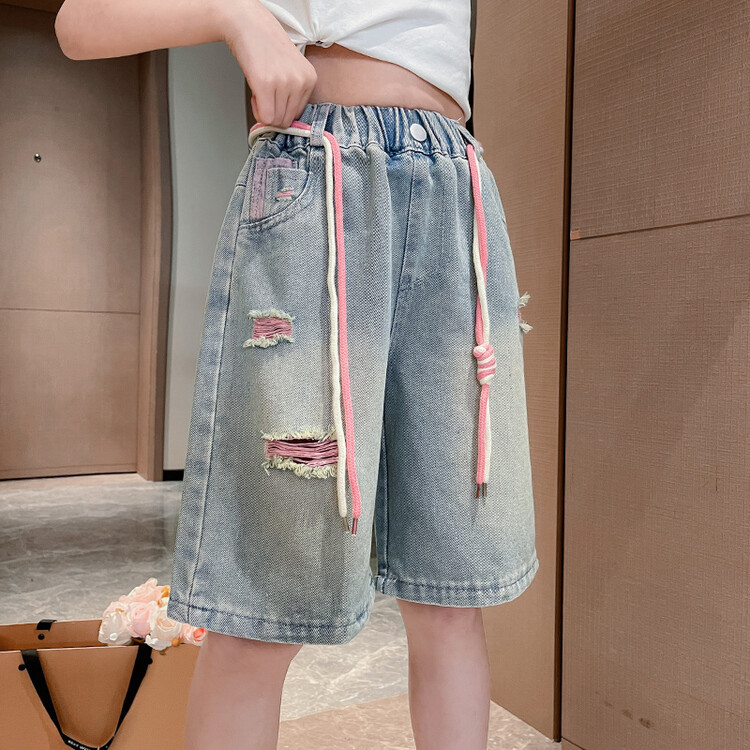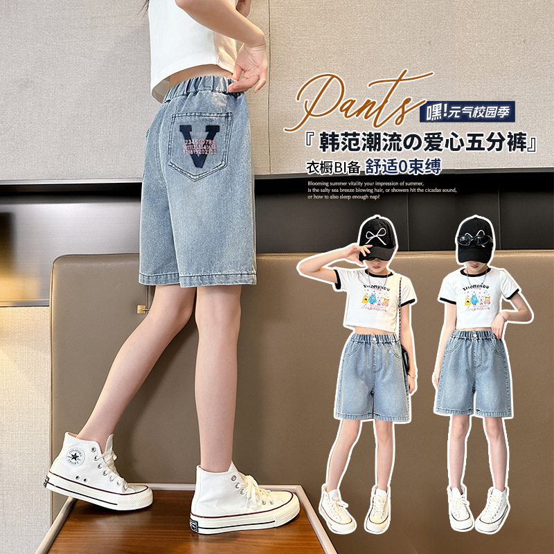 여아 데님 반바지 2025 새로운 스타일 유행 중대형 아동용 얇은 여름 옷 아동 여름 반바지스토어 가기