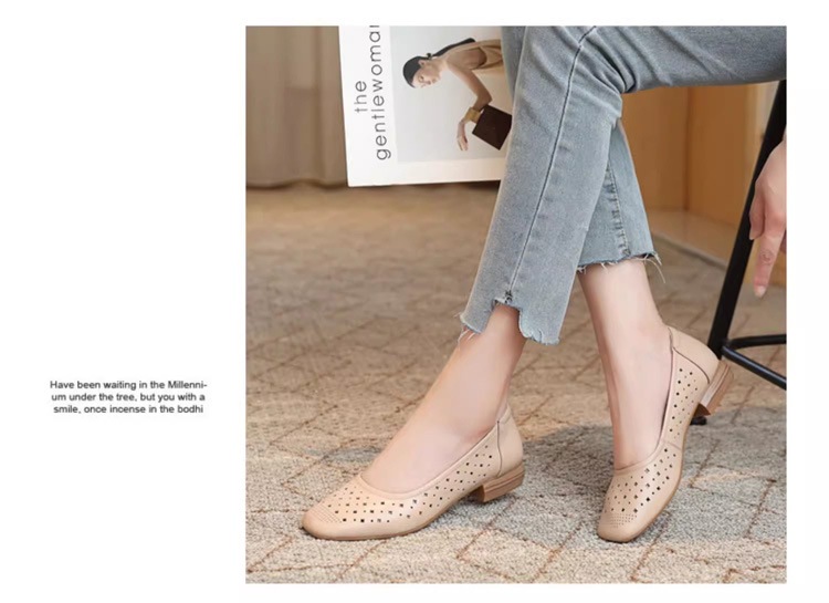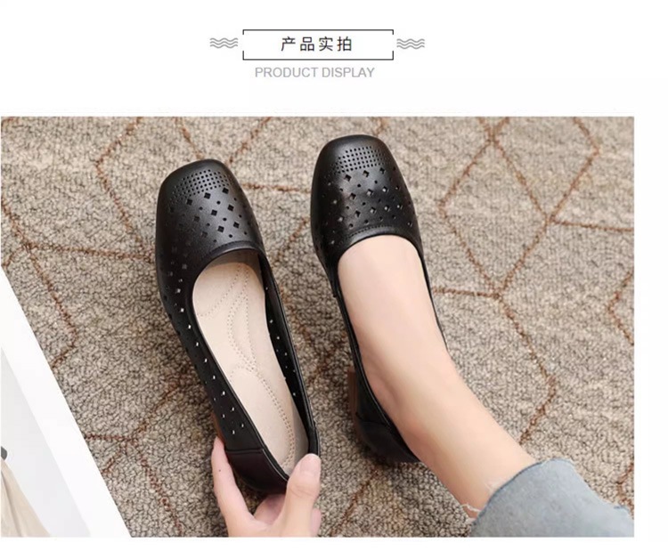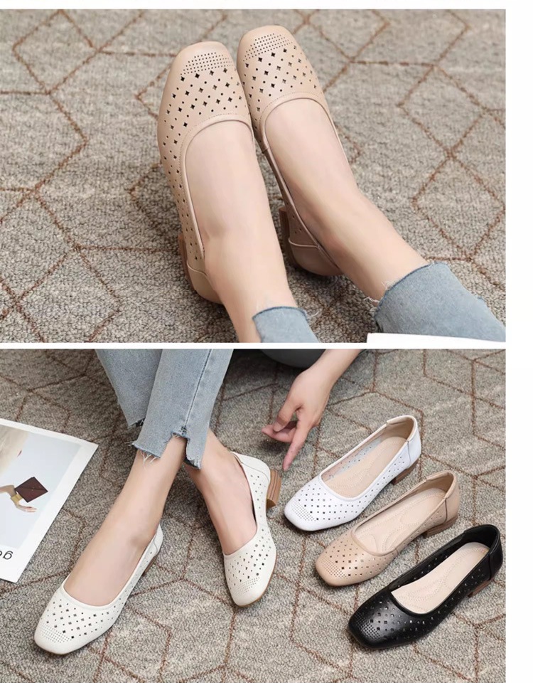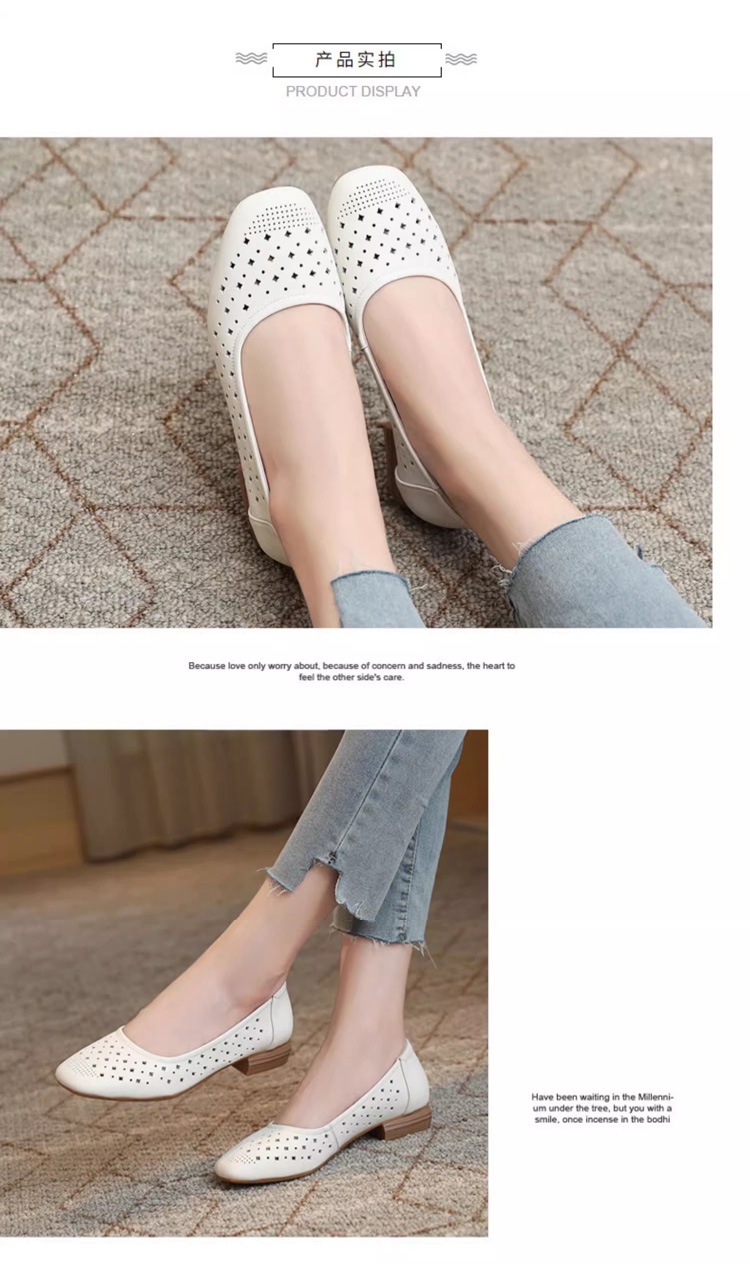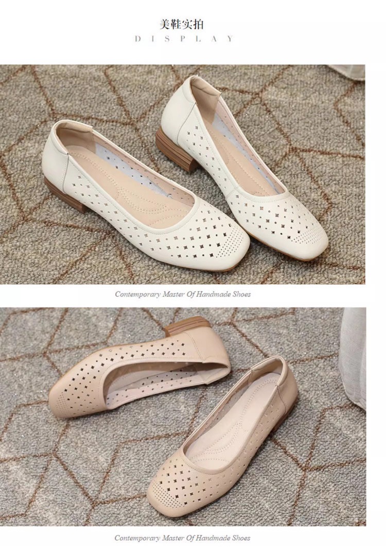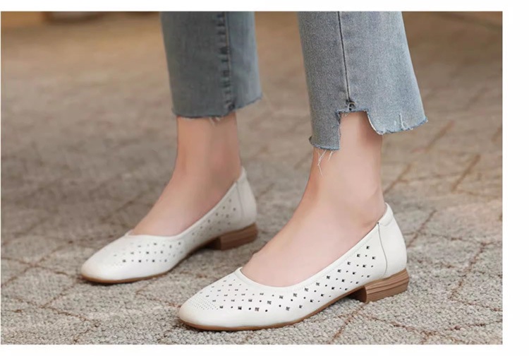 부드러운 가죽 플랫 속이 빈 여성 신발, 부드러운 밑창, 통기성 구멍 신발, 여성용 캐주얼 플랫 간호사 작업 흰색 신발스토어 가기