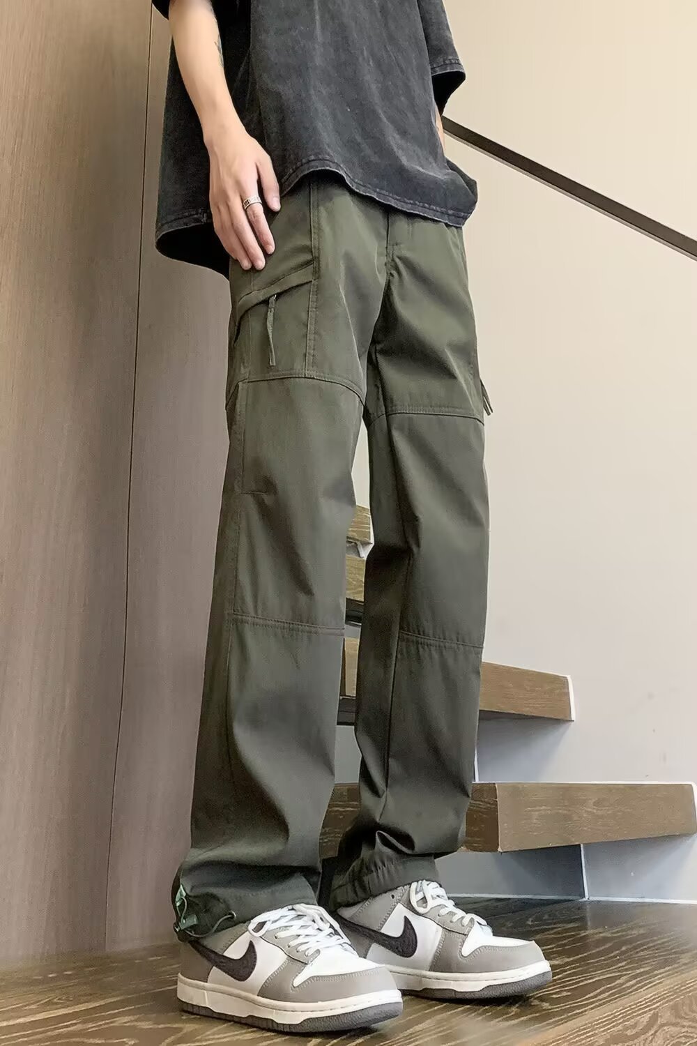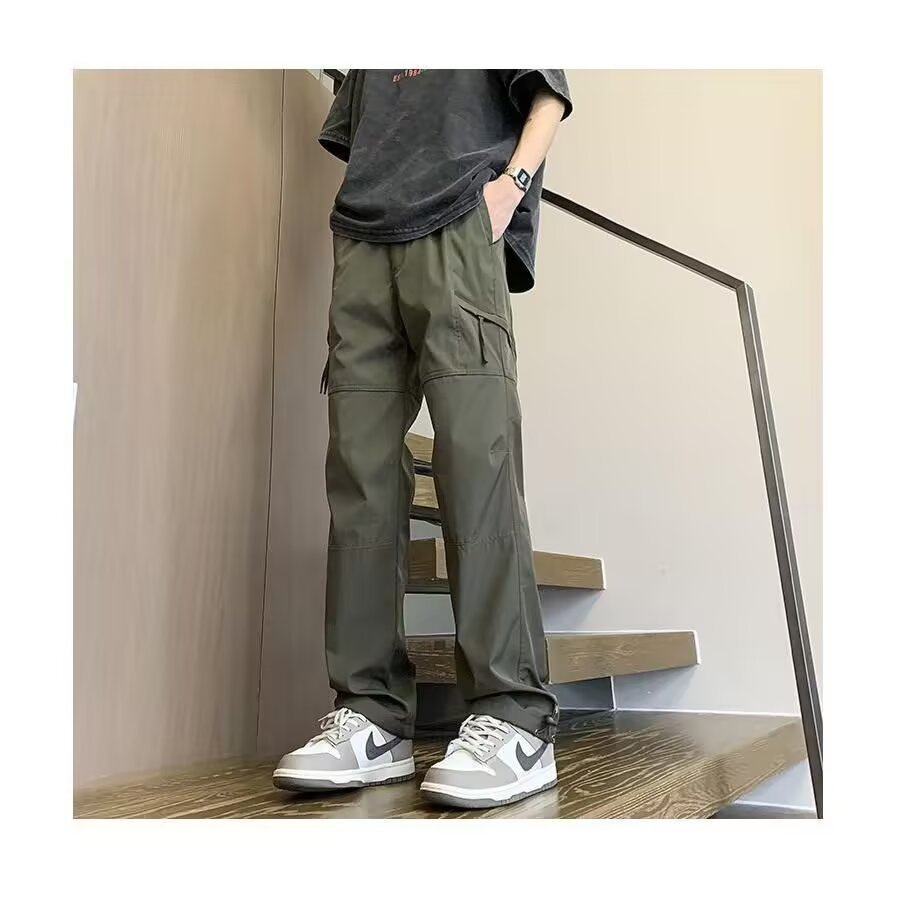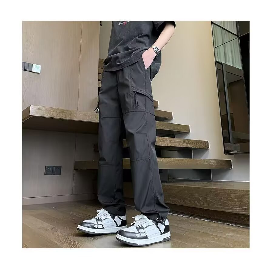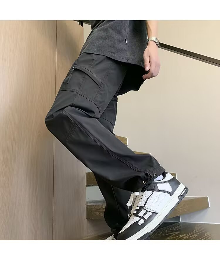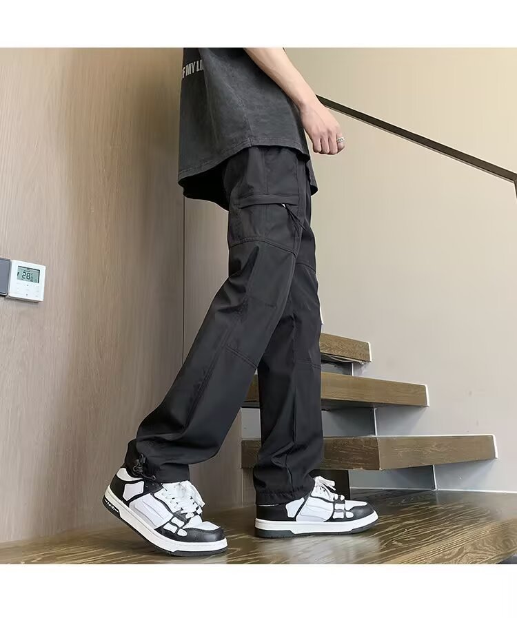 지퍼 기능성 스포츠 낙하산 바지 남성 홍콩 패션 브랜드 스플라이스 루즈 스트레이트 오버올 아메리칸 캐주얼 충전 바지스토어 가기
