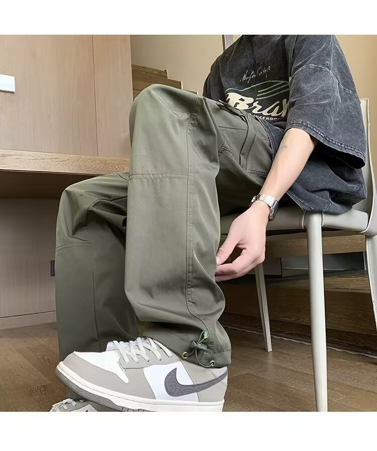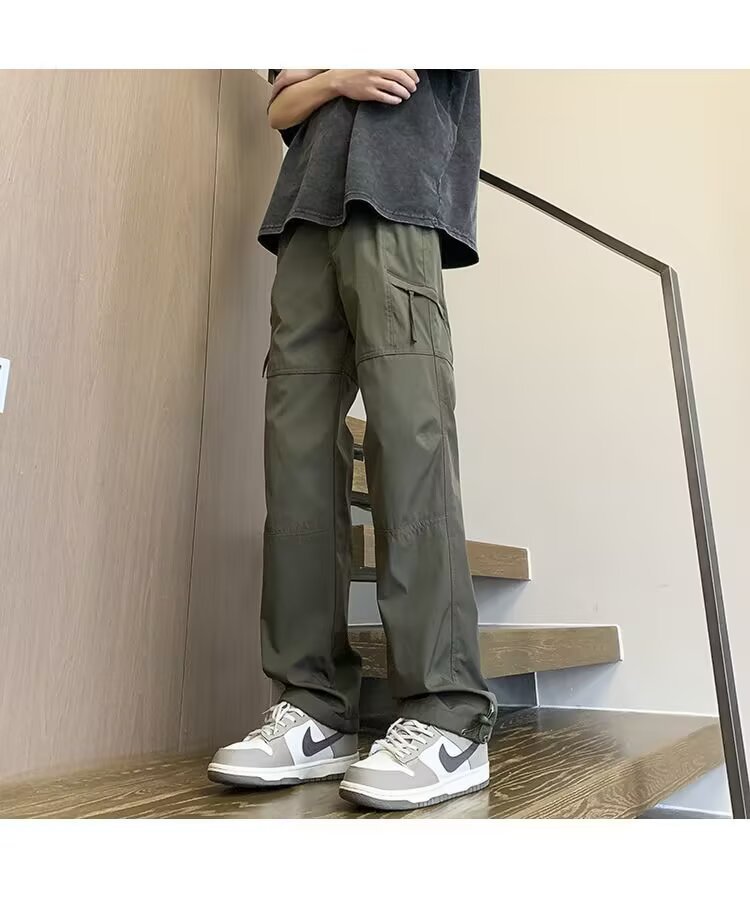 지퍼 기능성 스포츠 낙하산 바지 남성 홍콩 패션 브랜드 스플라이스 루즈 스트레이트 오버올 아메리칸 캐주얼 충전 바지