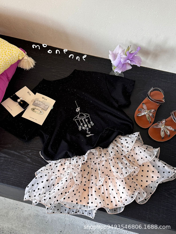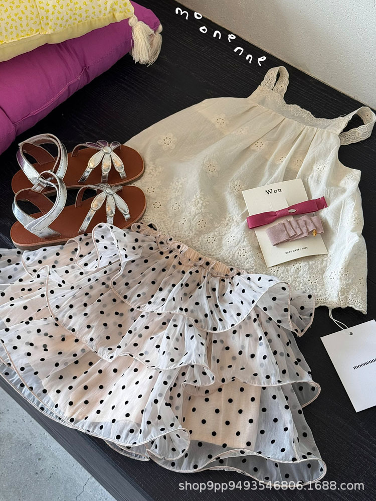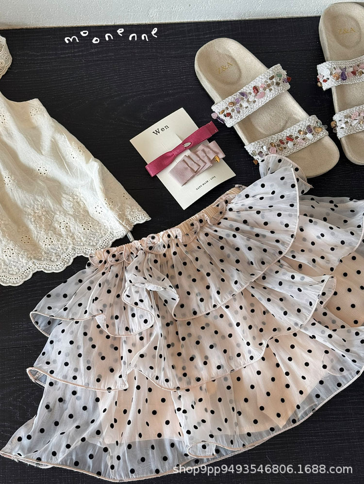 여자 짧은 폴카 도트 거즈 스커트 2025 여름 새로운 어린이 스커트 아기 소녀 메쉬 케이크 스커트 도매스토어 가기