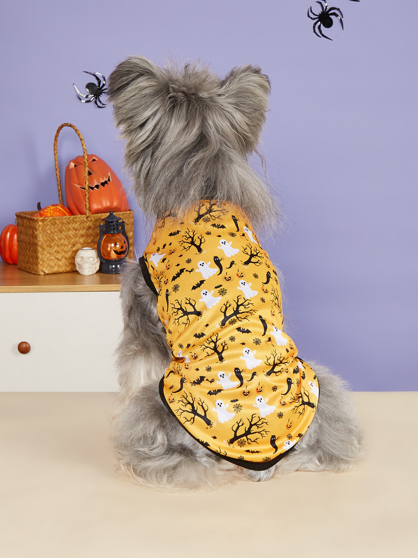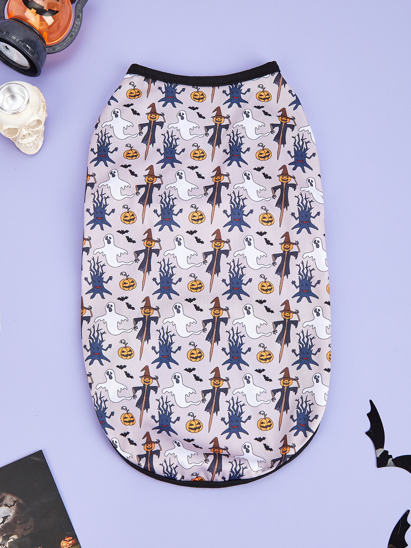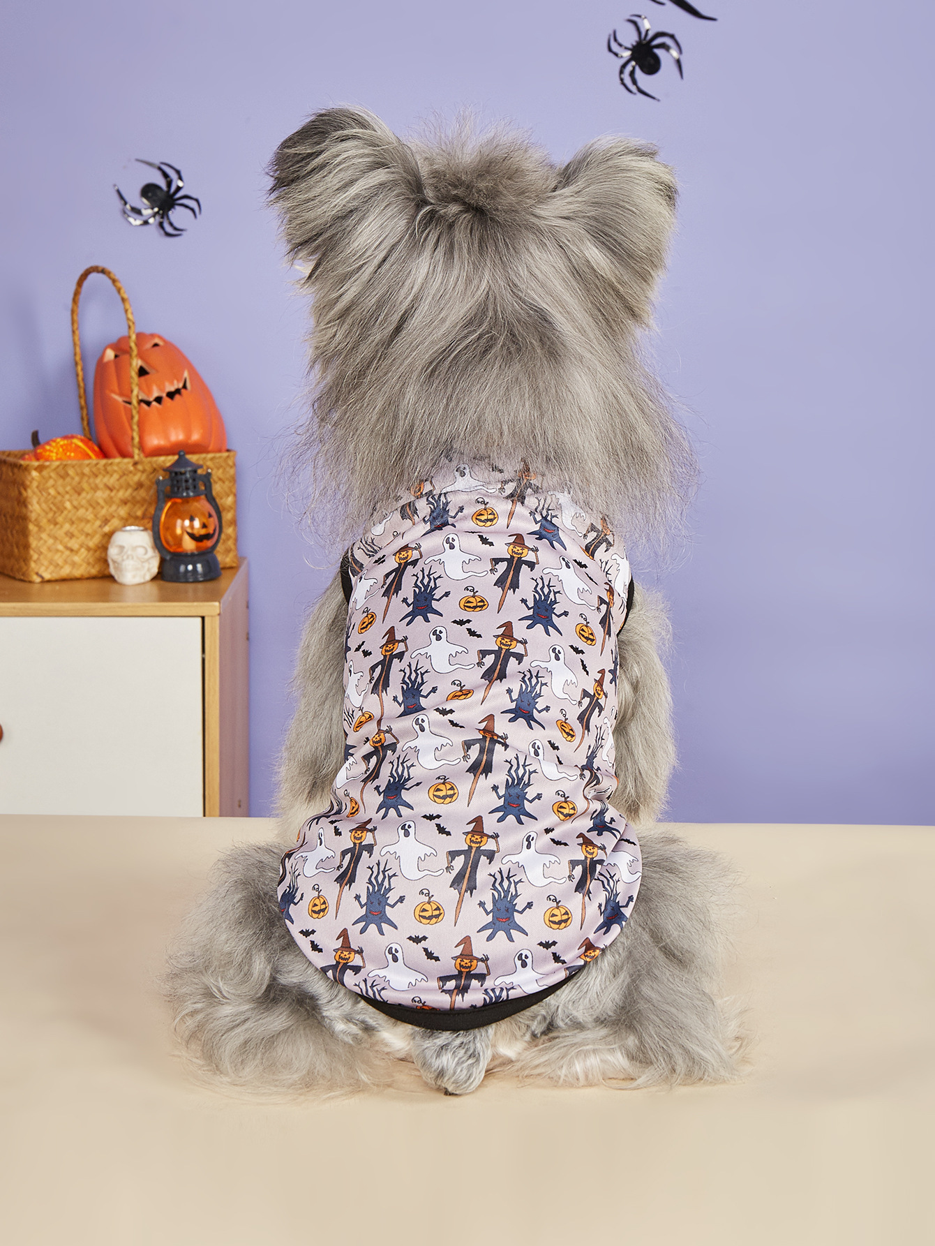 소스 공장 할로윈 애완 동물 조끼 얇은 만화 인쇄 고양이 옷 중소형 개 할로윈 장식