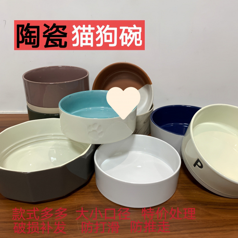 강아지와 고양이를 위한 세라믹 고양이 그릇과 강아지 그릇, 넘어지지 않는 대형 미끄럼 방지 애완동물 고양이와 강아지 물그릇, 약간 흠집이 있는 대형 애완동물 그릇, 물통 그릇스토어 가기