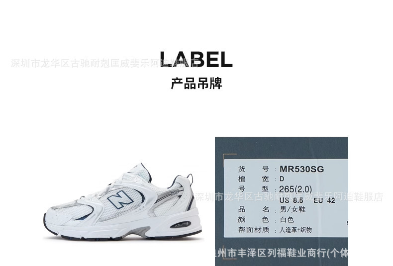 Putian Shoes Pure Original nb530SG 운동화 두꺼운 밑창 내부 강화 남성 및 여성 운동화 클래식 레트로 아빠 신발스토어 가기
