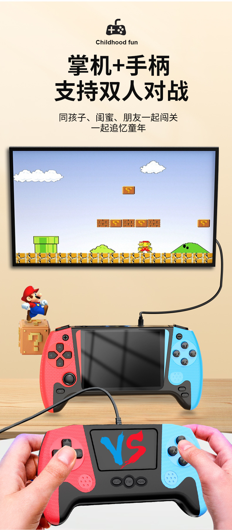 TK 휴대용 게임기 3.5inch TV 연결 듀얼 컨트롤러 휴대용 게임기 향수를 불러일으키는 복고풍 아케이드 TV 게임기