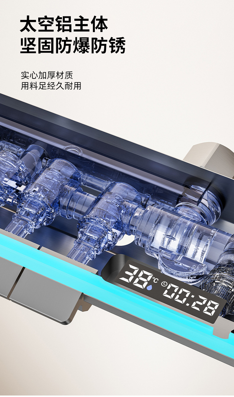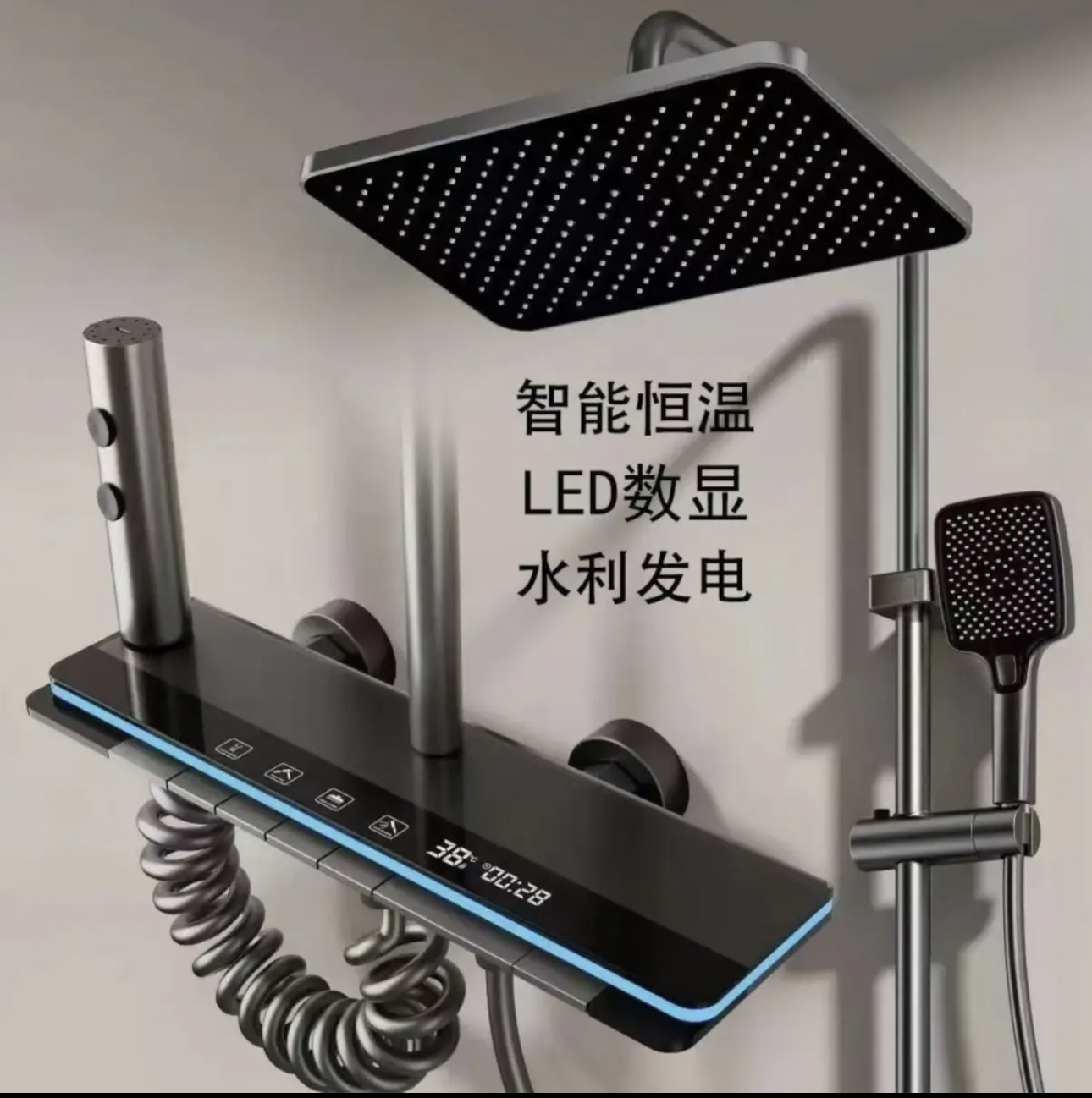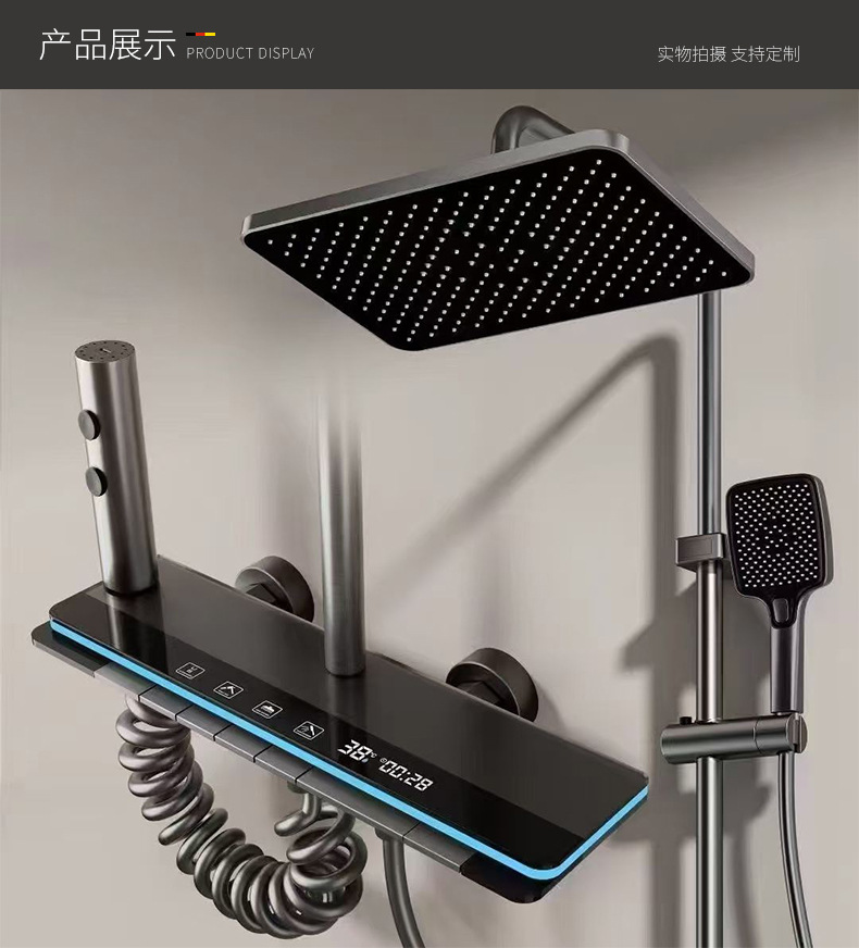 스마트 스페이스 알루미늄 샤워 스크린 주변 조명 샤워기 샤워 세트 홈 디지털 디스플레이 욕실 레인 부스터 그레이스토어 가기