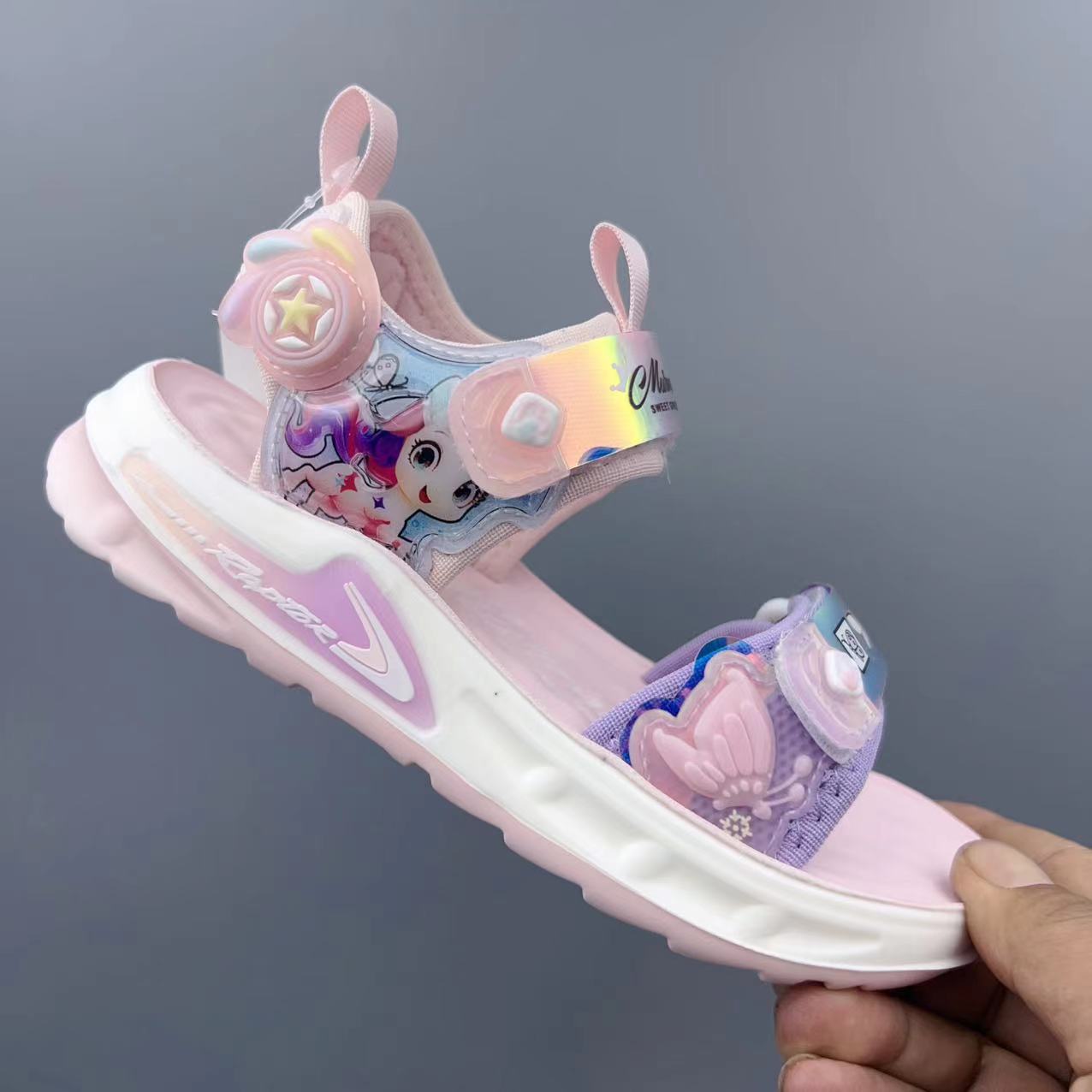 Bimixiong 어린이의 새로운 폴리우레탄 라텍스 부드러운 밑창 샌들 2025 여름 새 여자 조명 스포츠 샌들