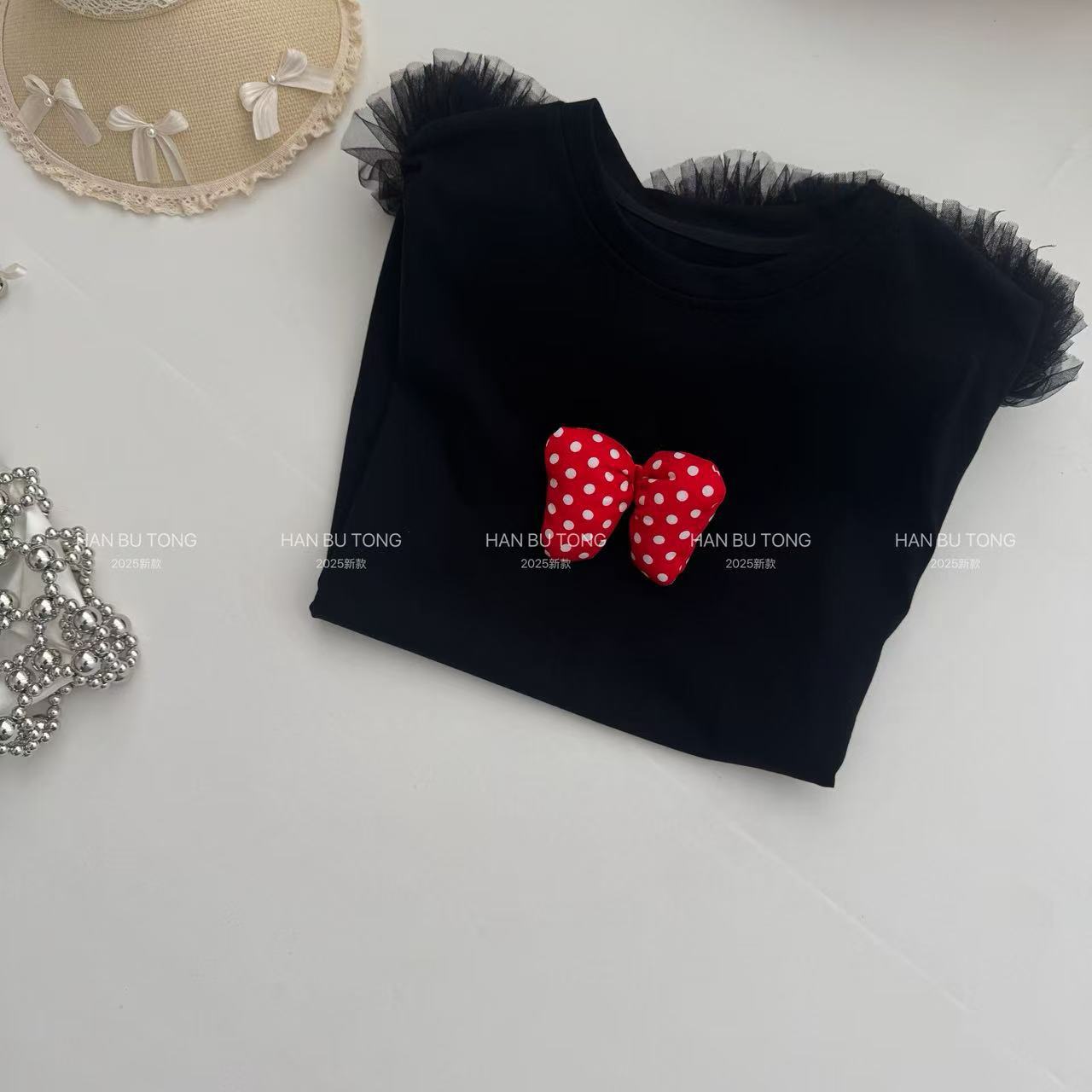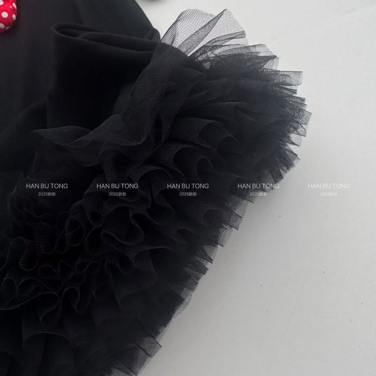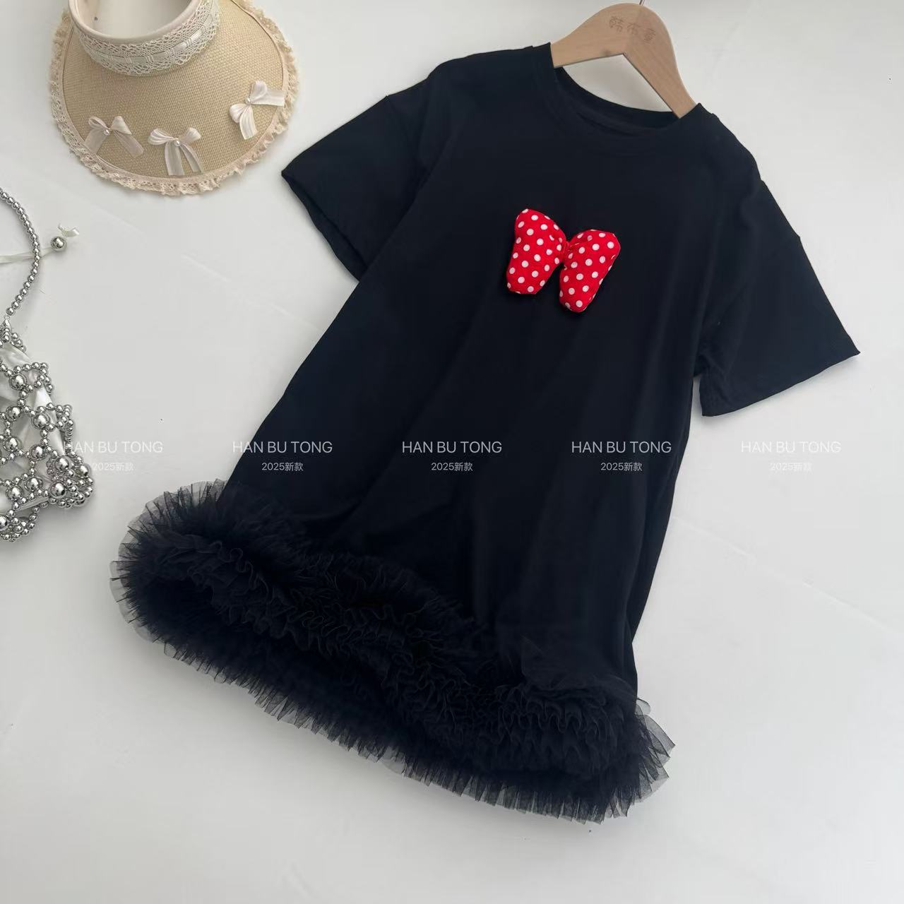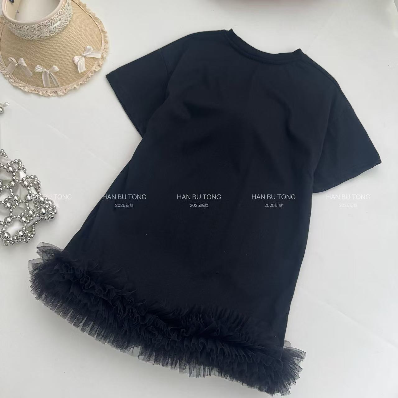 여자 2025 여름 새로운 입체 활 티셔츠 접합 거즈 스커트 여자 메쉬 공주 스커트 드레스