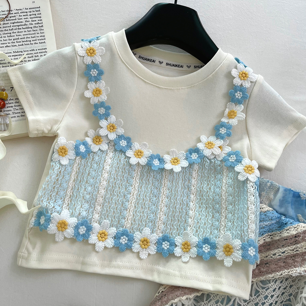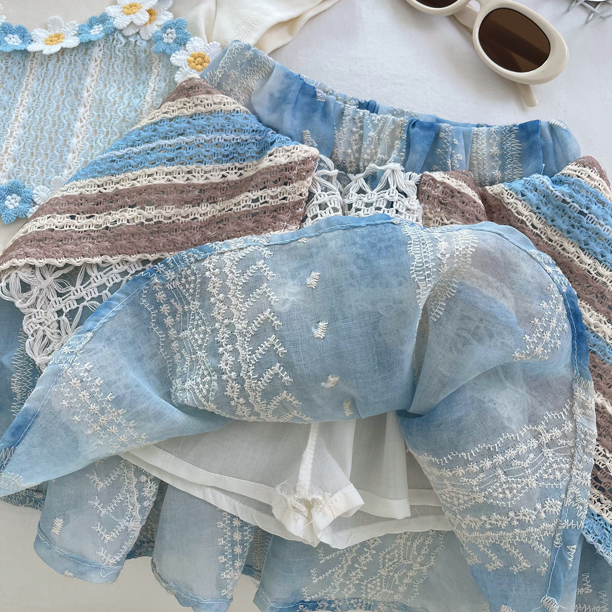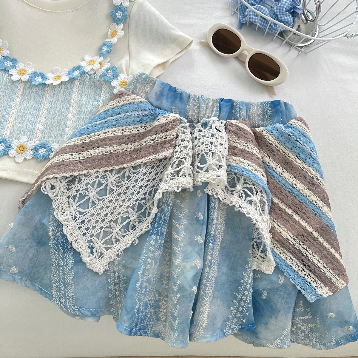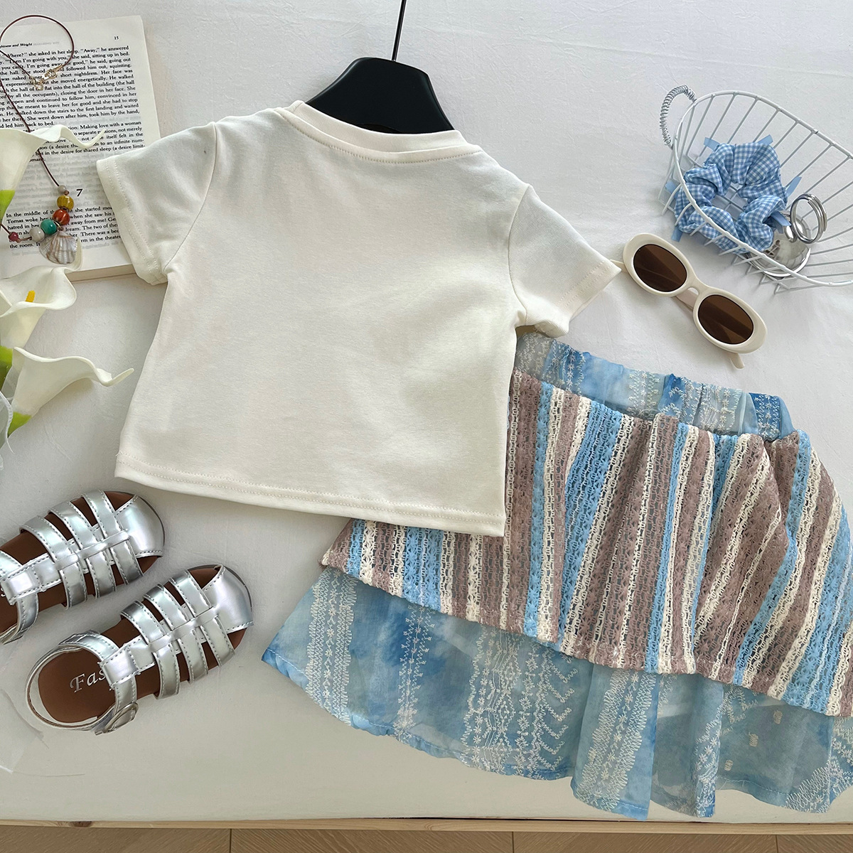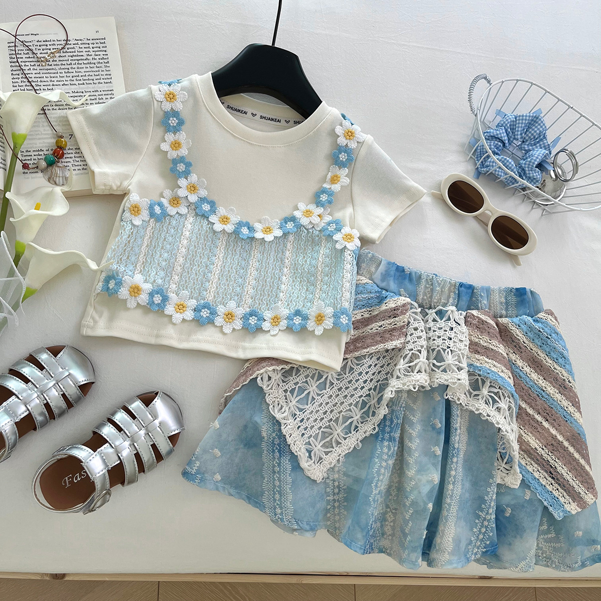 아동 정장 스커트 새로운 여름 한국 스타일 아기 소녀 반팔 꽃 스커트 보헤미안 스타일 상쾌한 투피스 세트