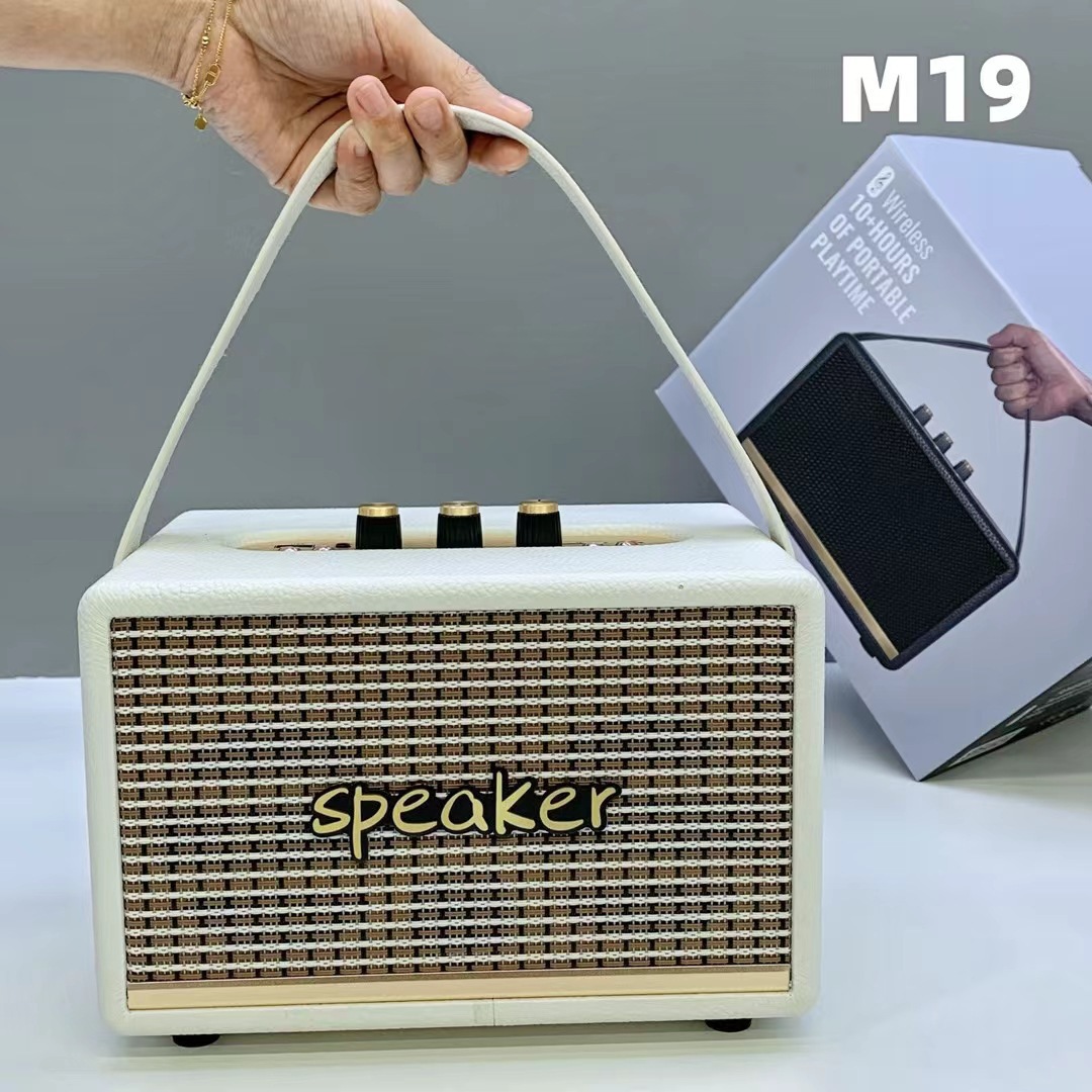 국경 간 새로운 M19 가죽 휴대용 무선 블루투스 스피커 야외 고출력 휴대용 서브 우퍼 데스크탑 스피커스토어 가기