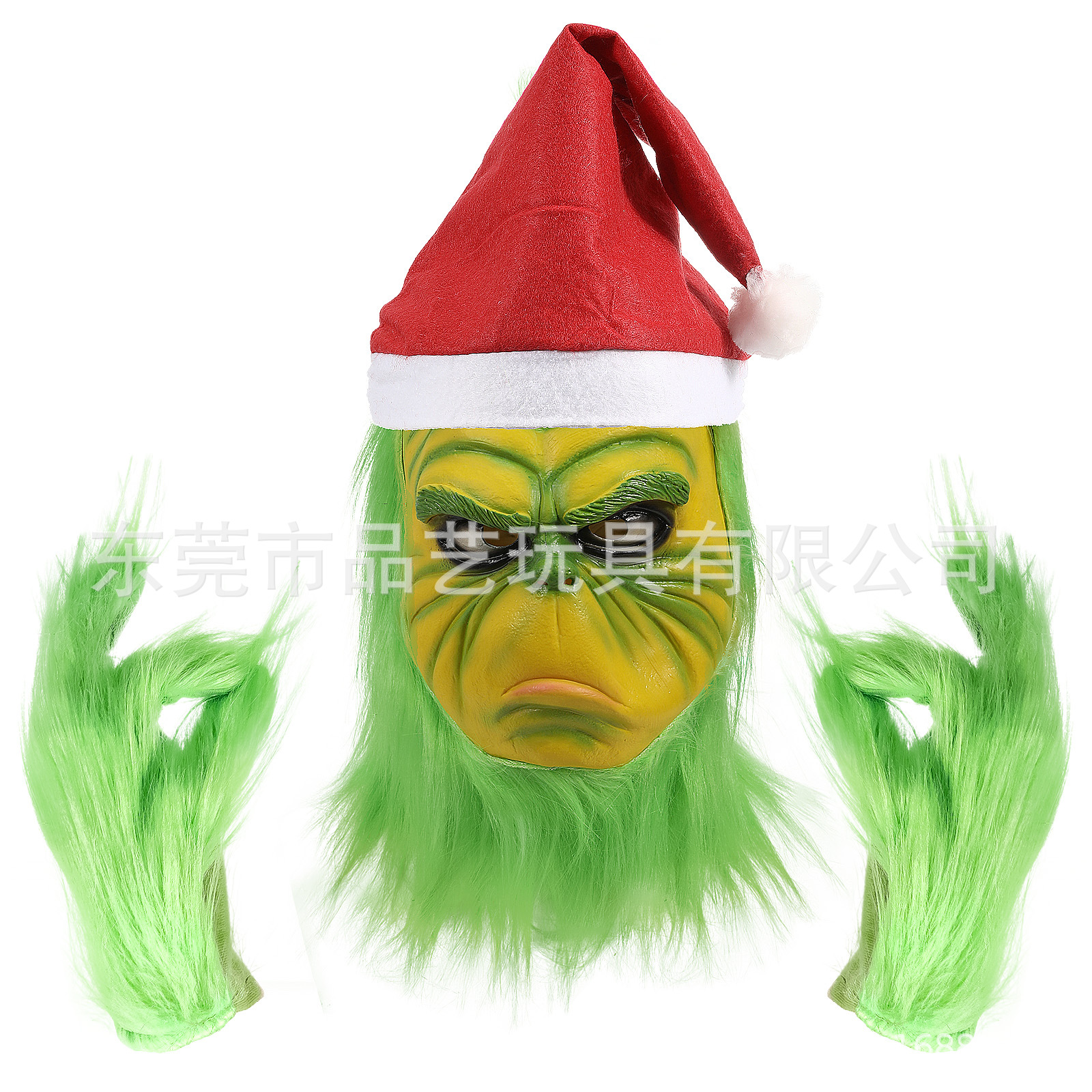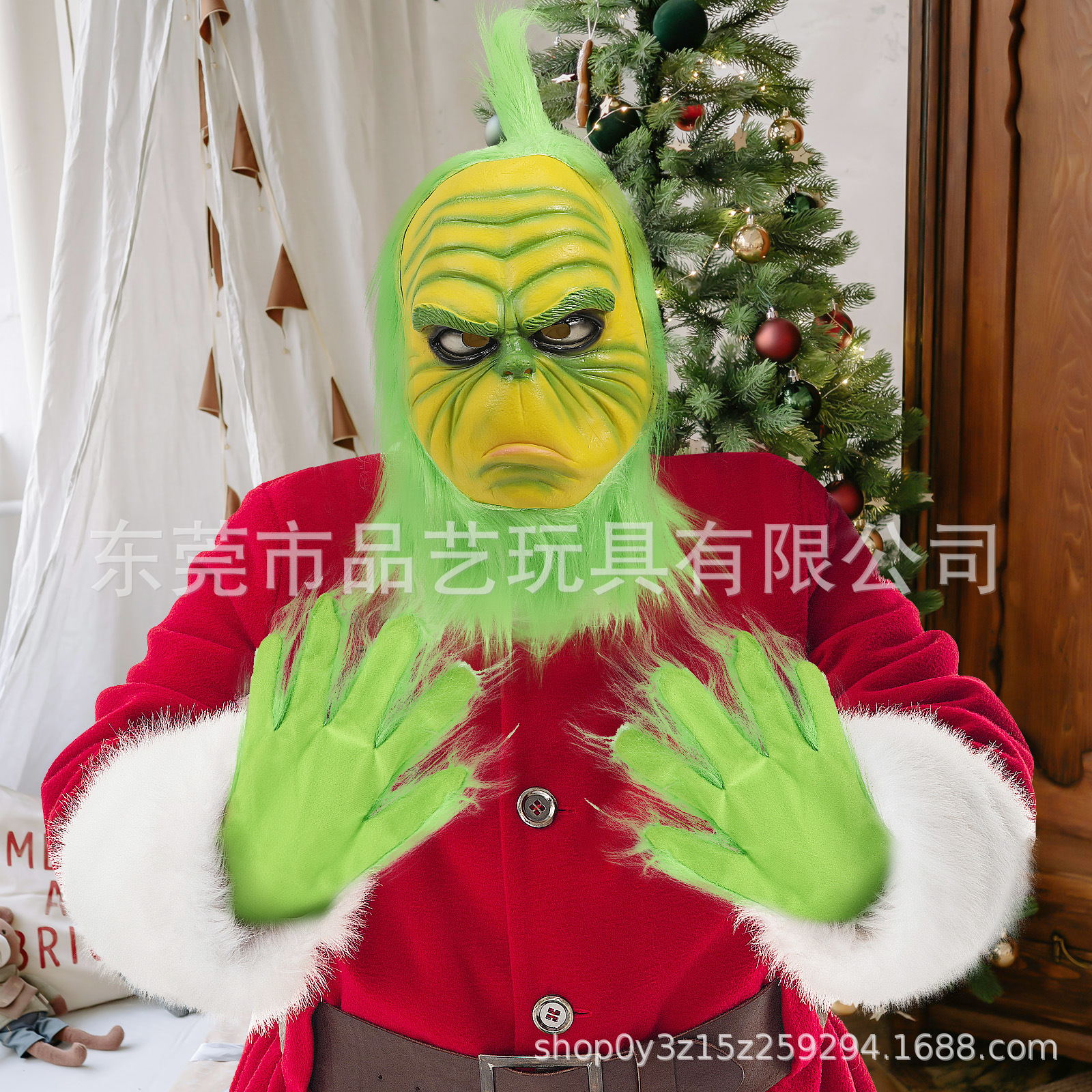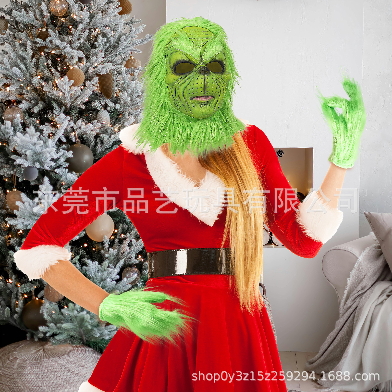 크리스마스 COS 그린치 녹색 머리 괴물 옷 마스크 크리스마스 괴짜 의상 도둑 그린치 인형