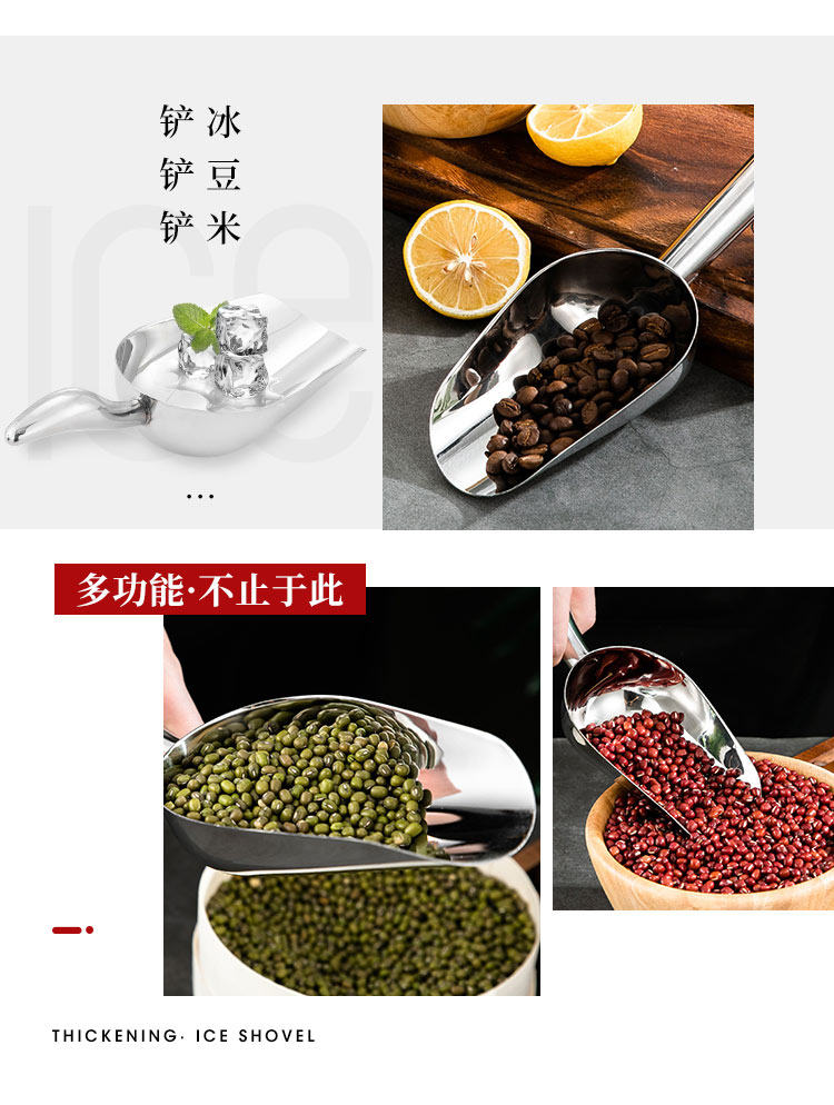 두꺼운 스테인레스 스틸 얼음 삽, 얼음 조각 삽, 다기능 삽, 건조 제품 삽, 가정용 및 상업용 미끄럼 방지 스테인레스 스틸 삽