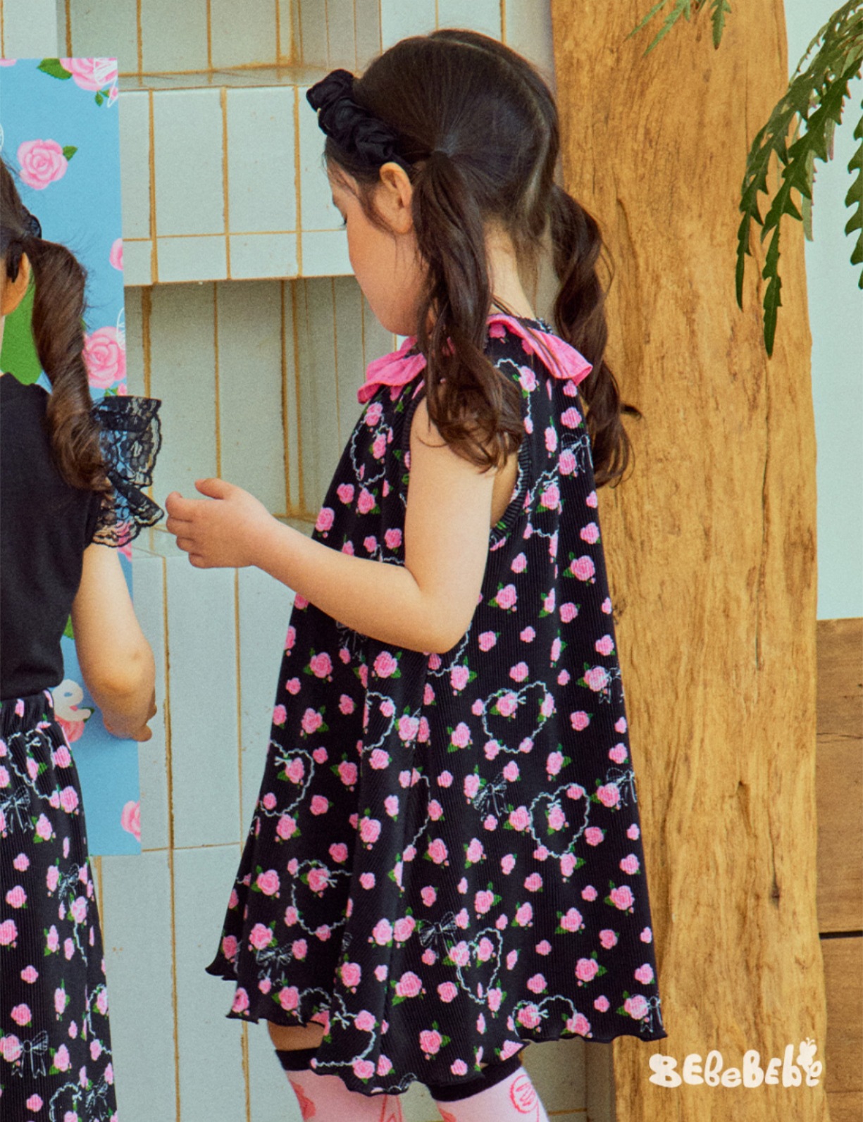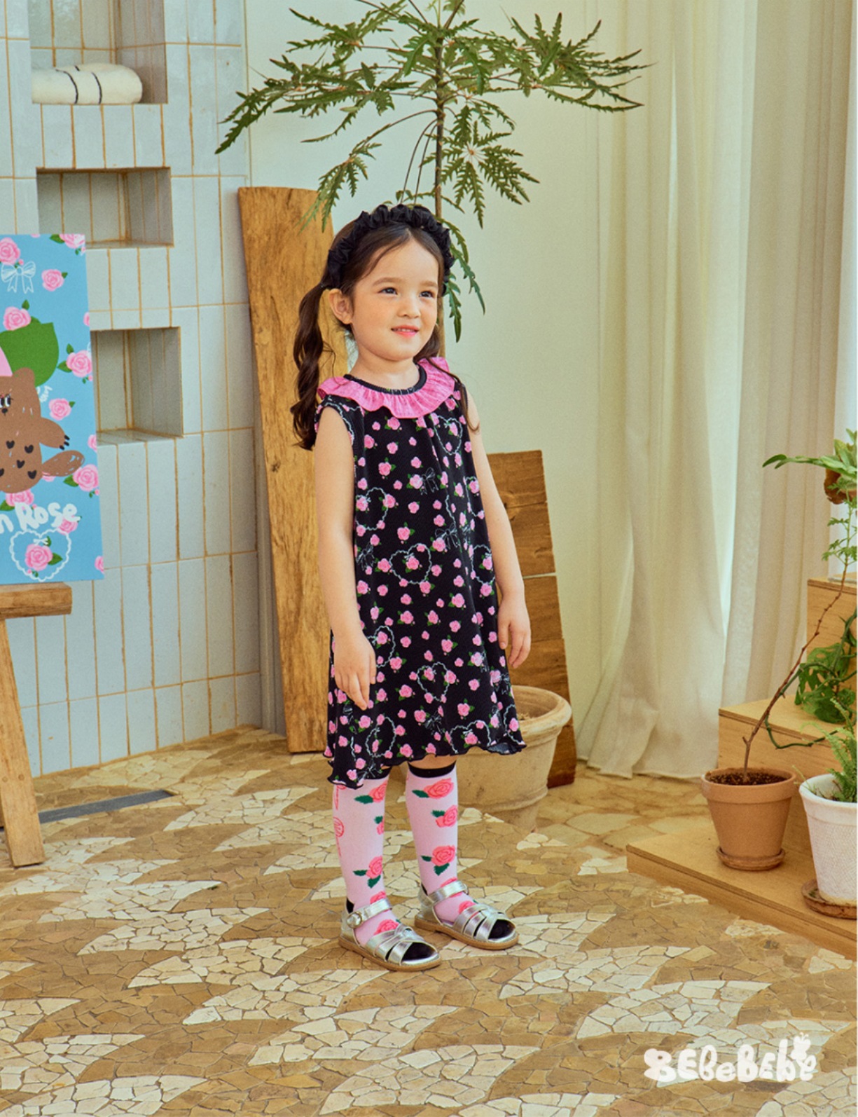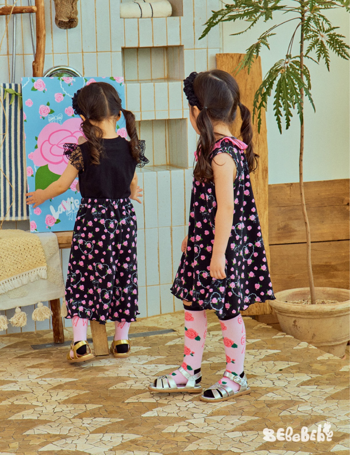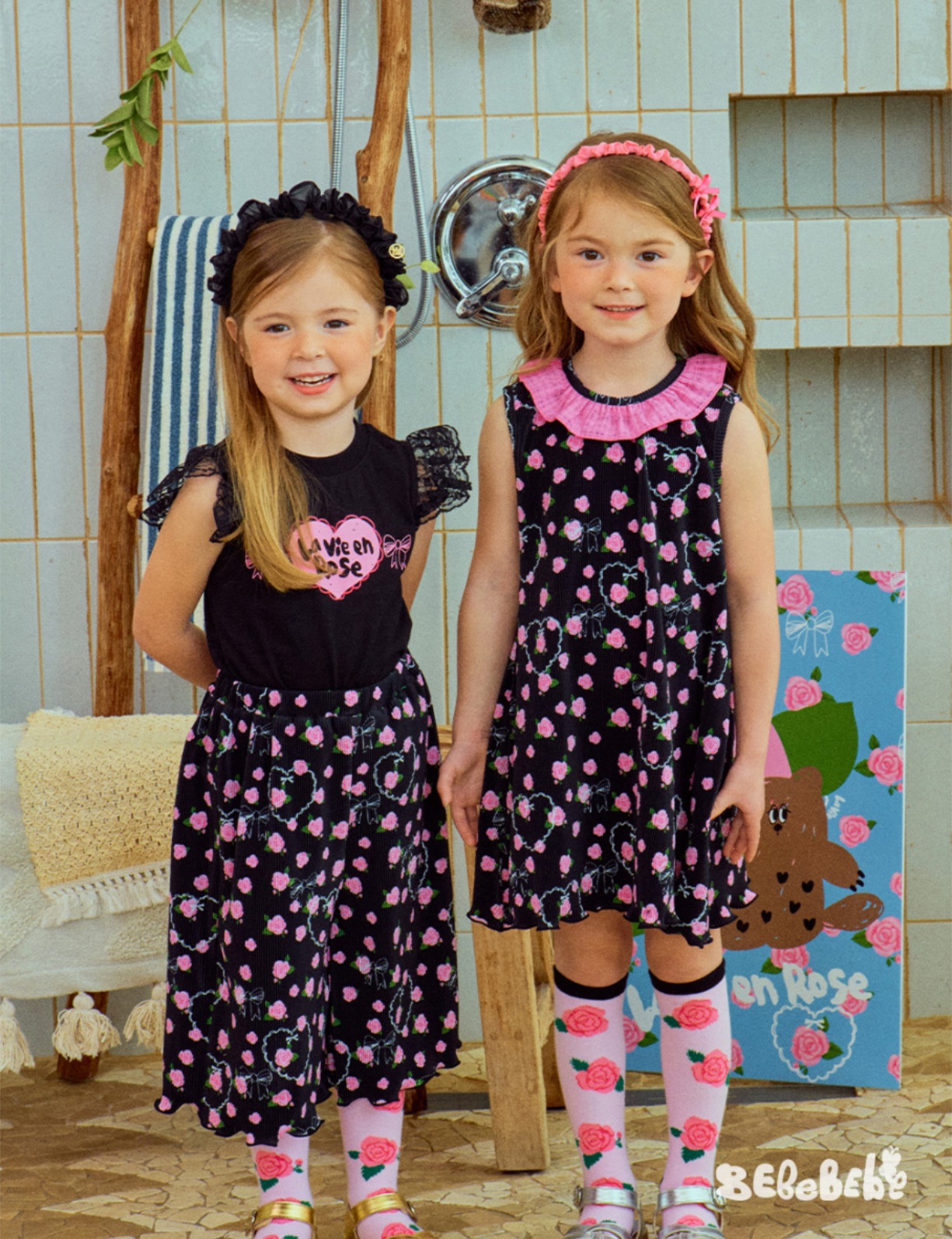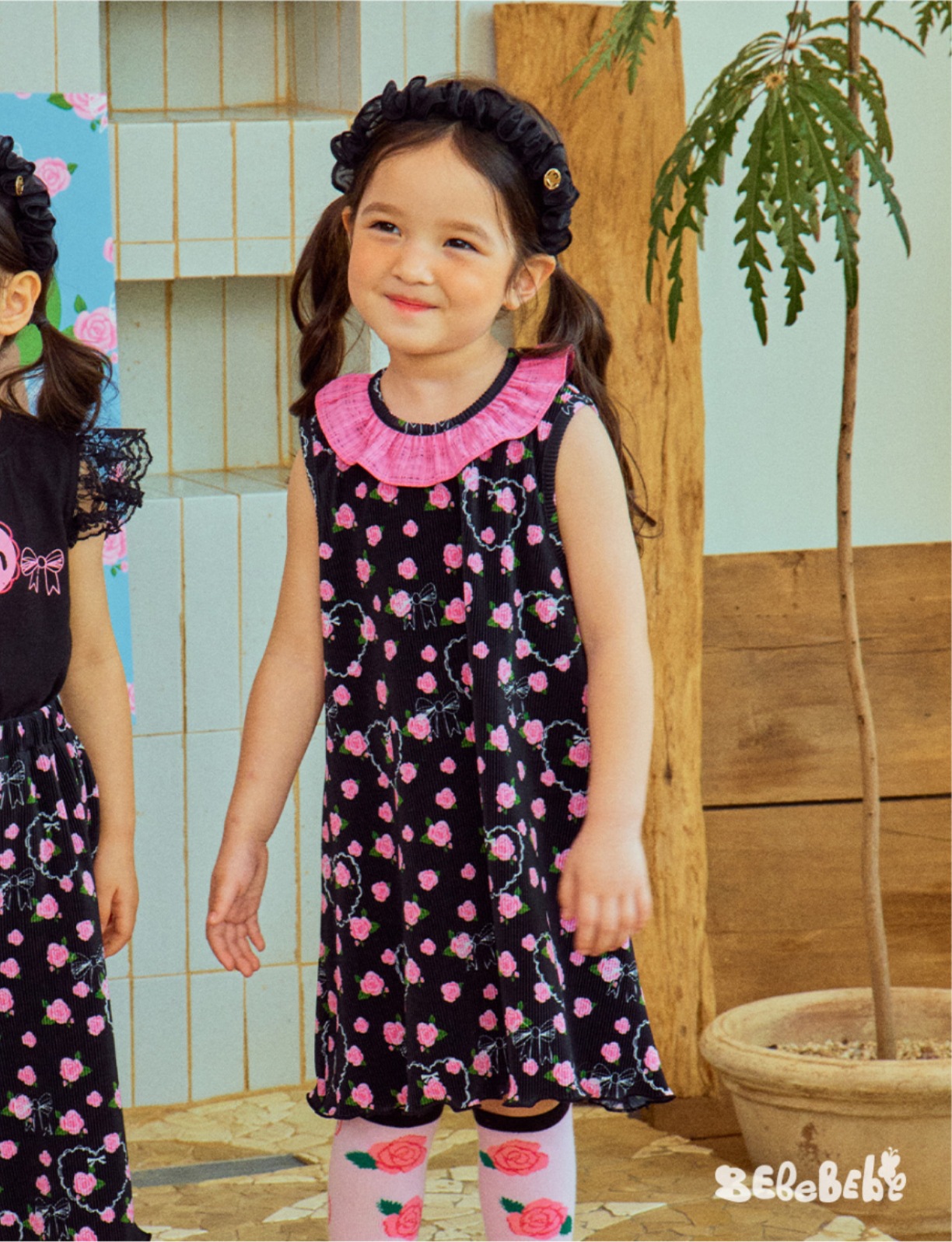 스팟상품! BE25 여름 신작 여아 블랙 로즈 드레스 러플 티셔츠 플리츠 와이드 팬츠스토어 가기