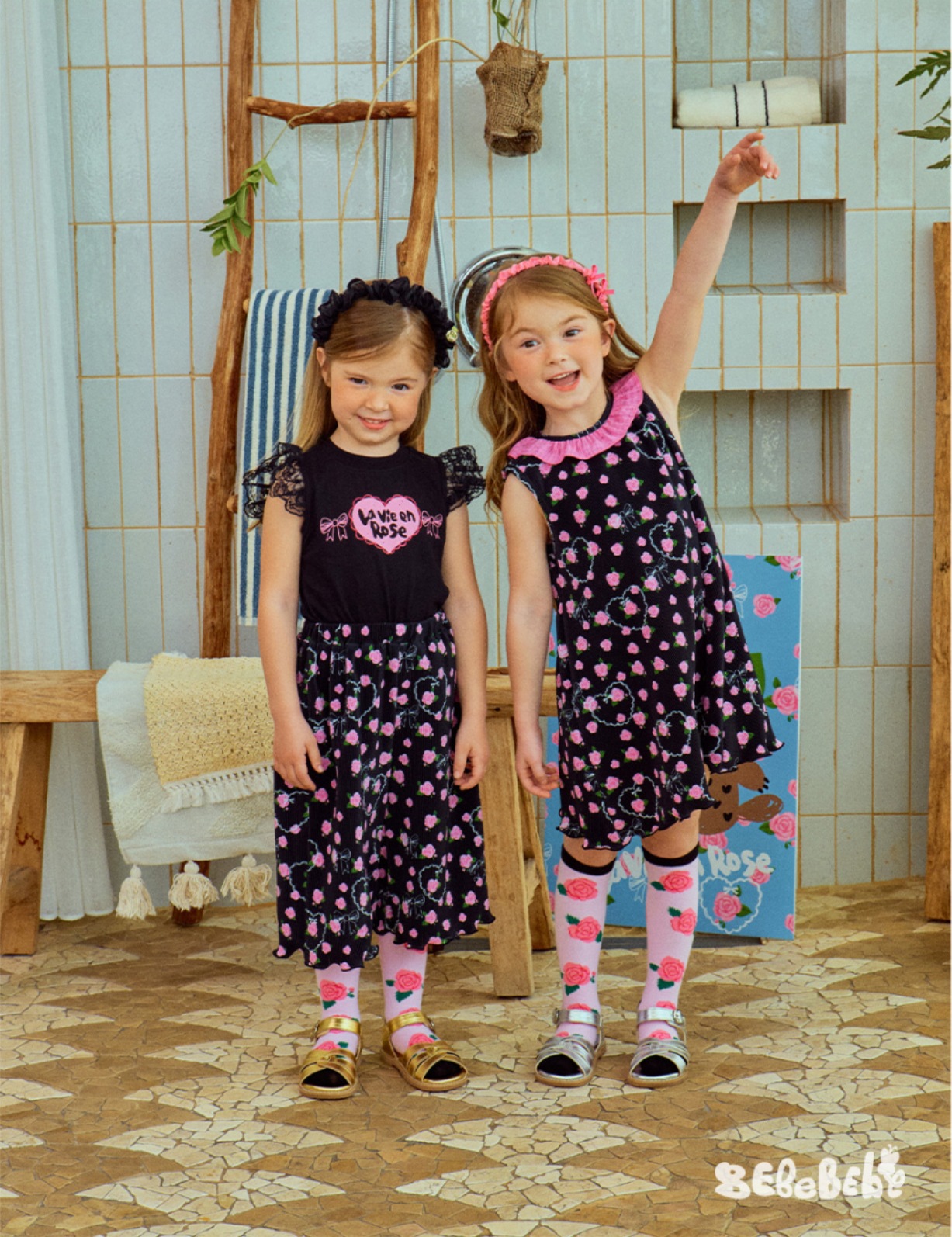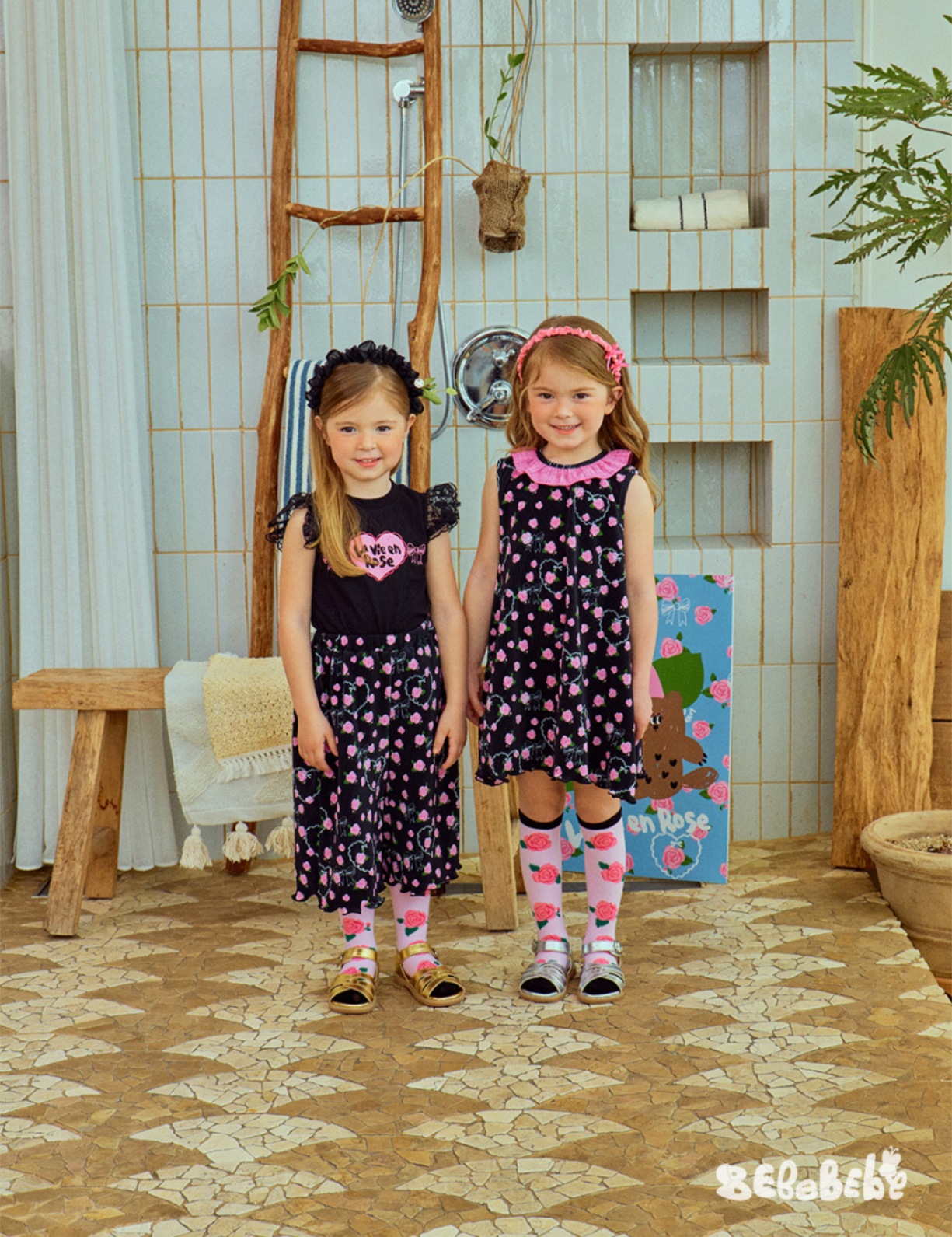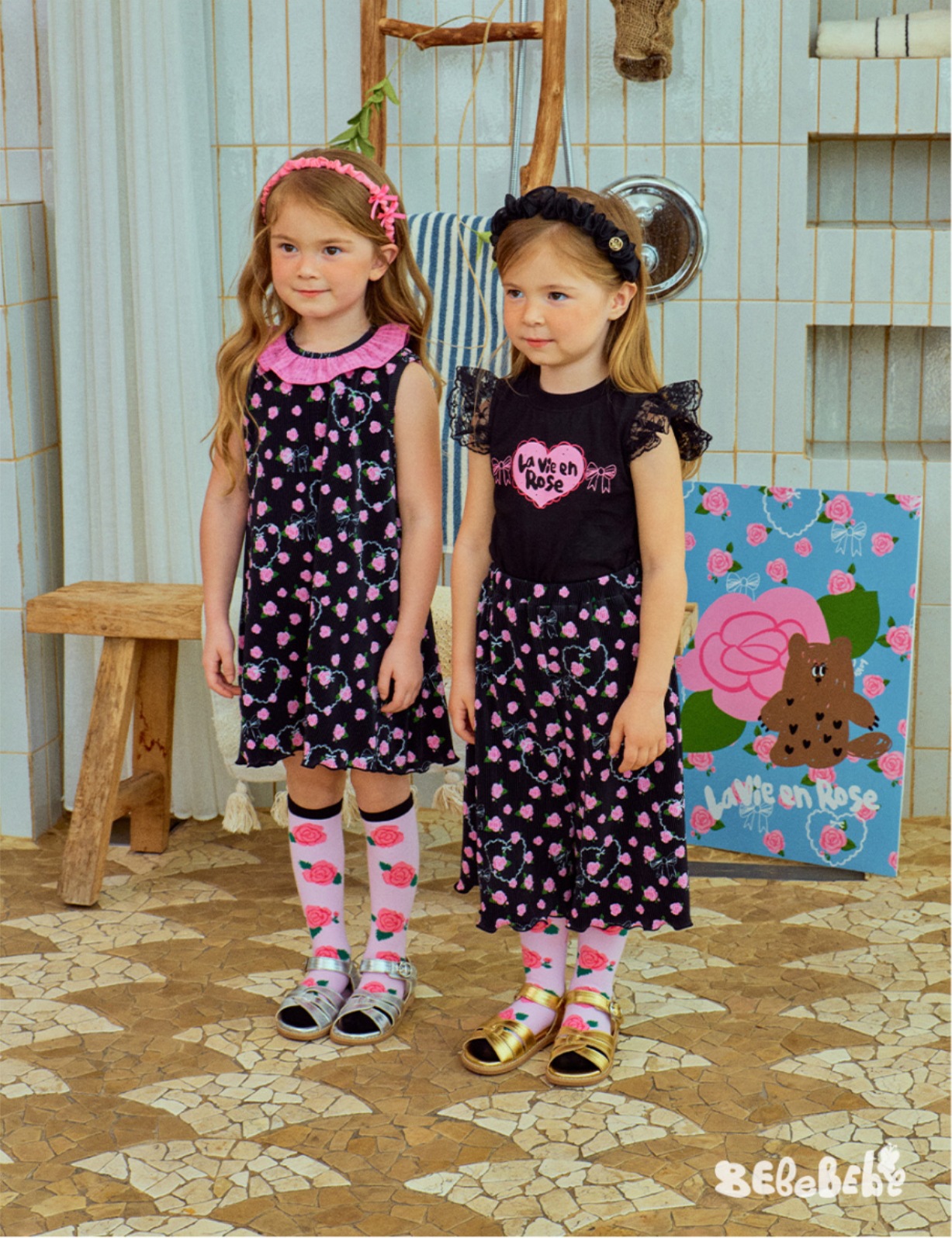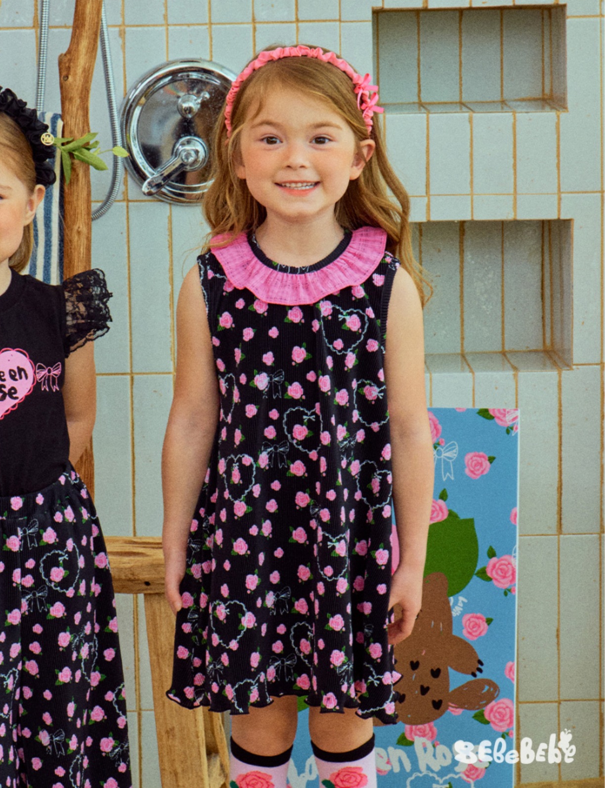스팟상품! BE25 여름 신작 여아 블랙 로즈 드레스 러플 티셔츠 플리츠 와이드 팬츠스토어 가기