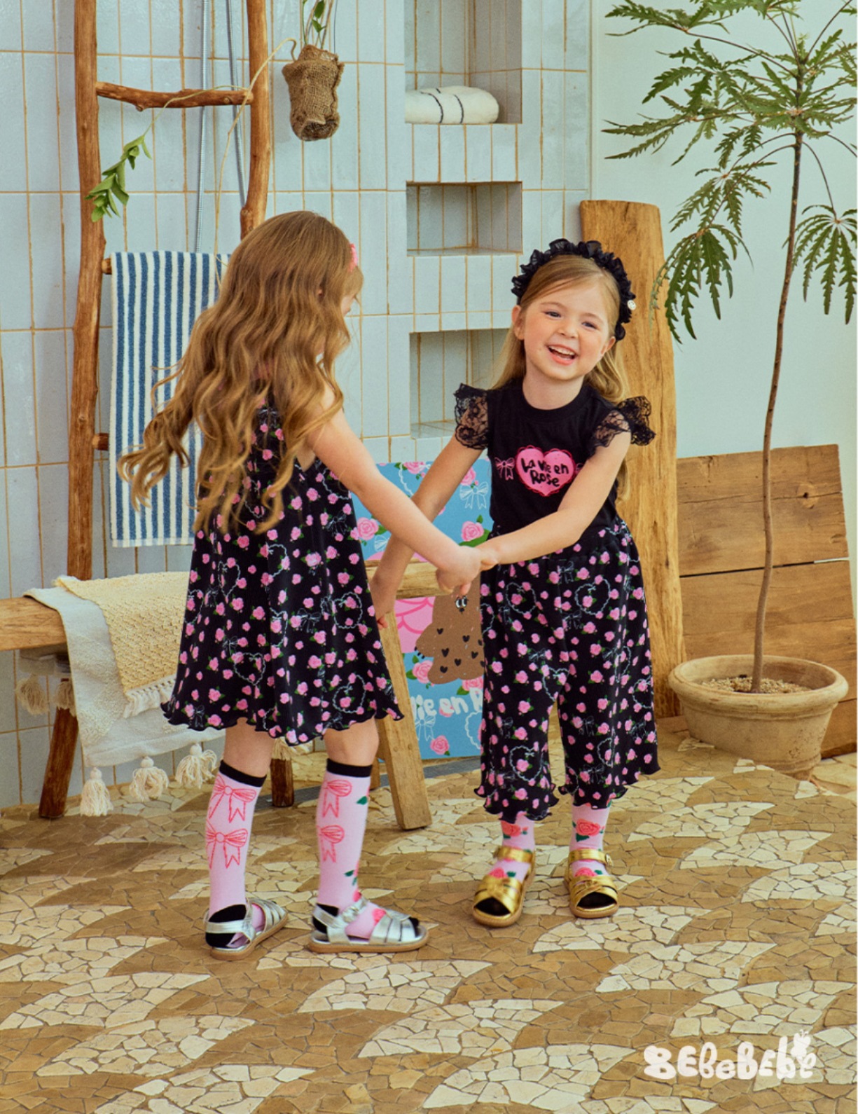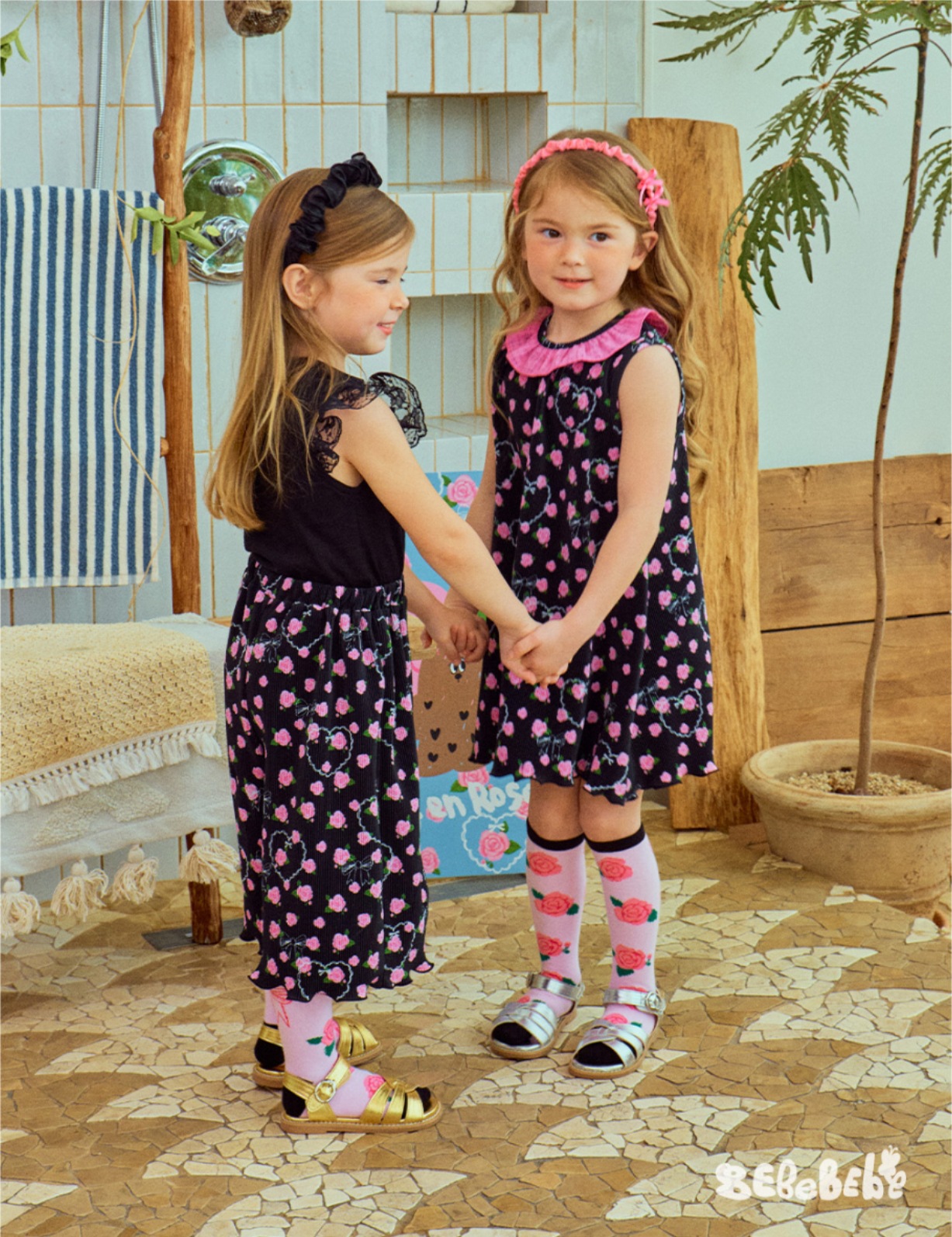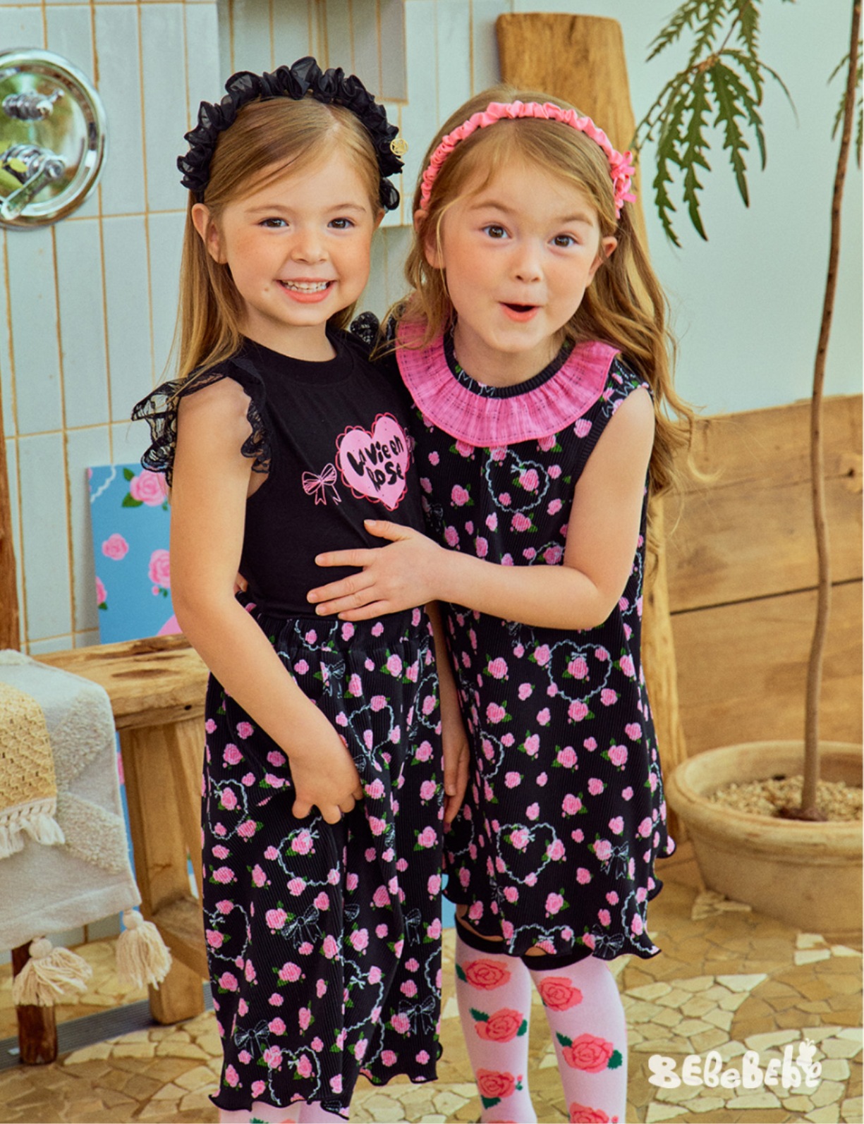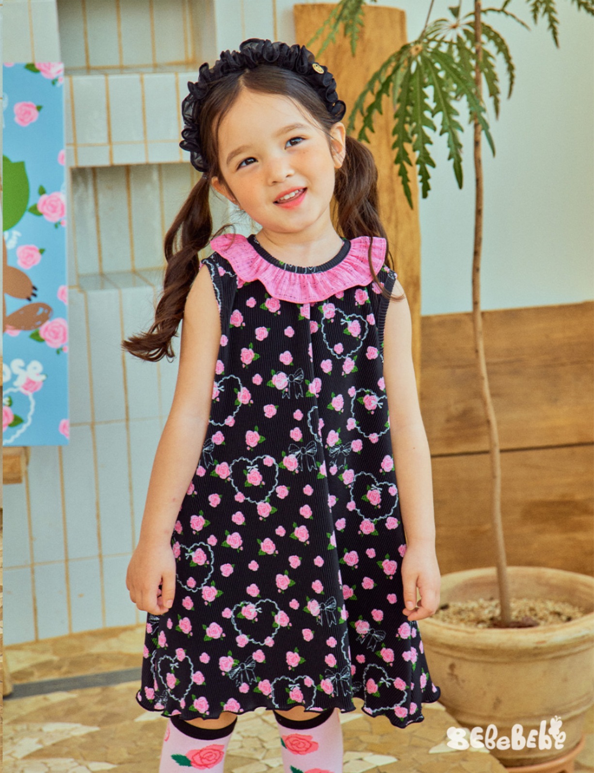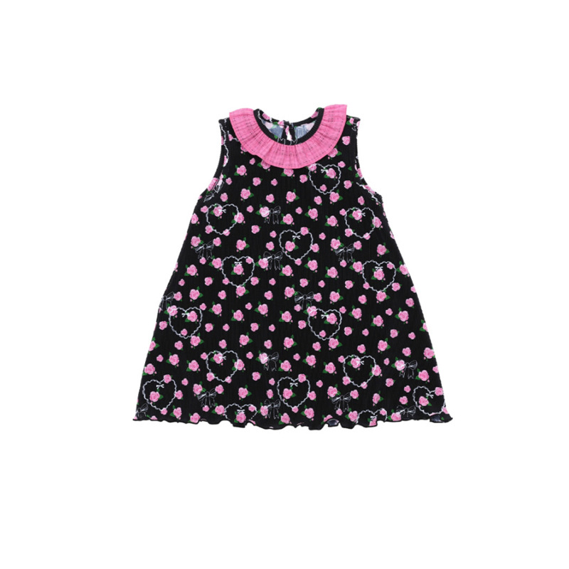 스팟상품! BE25 여름 신작 여아 블랙 로즈 드레스 러플 티셔츠 플리츠 와이드 팬츠