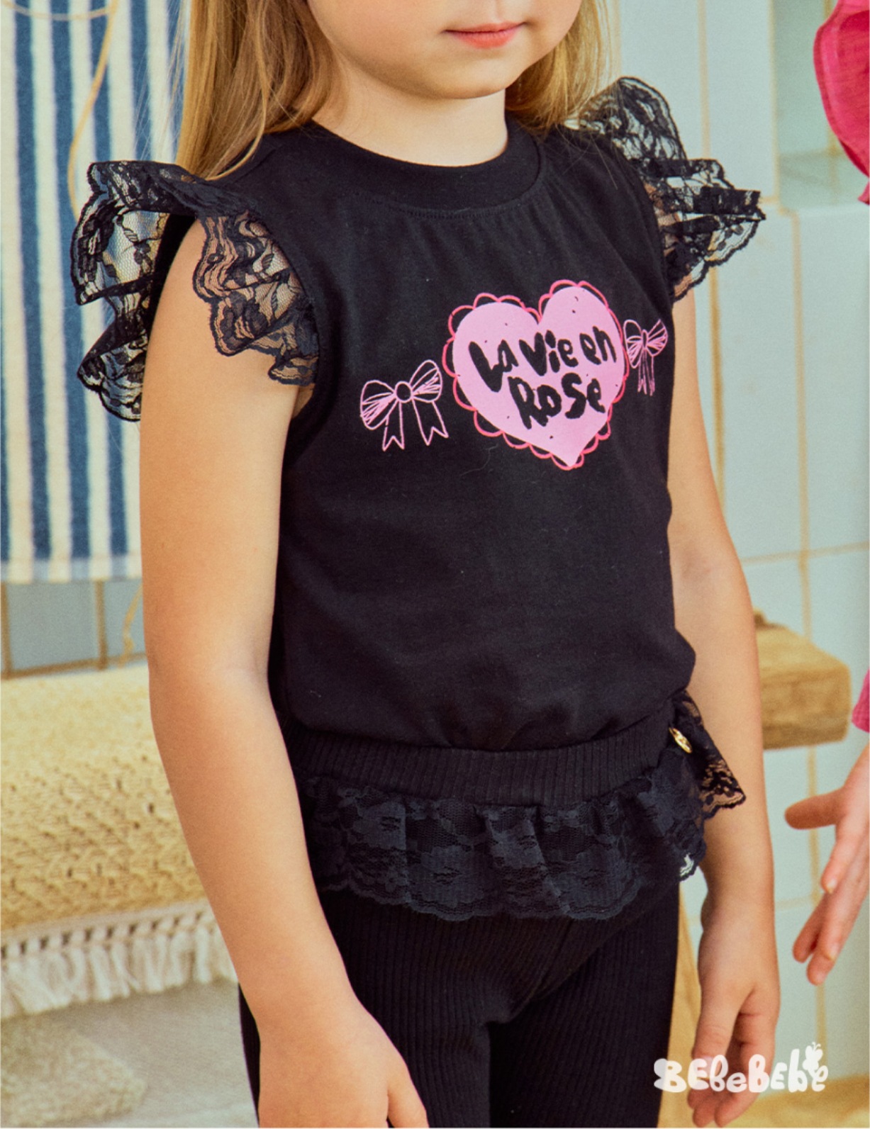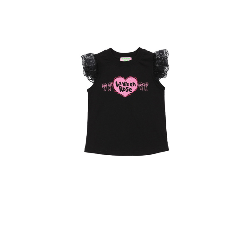 • BE 블랙 레이스 러플 티셔츠