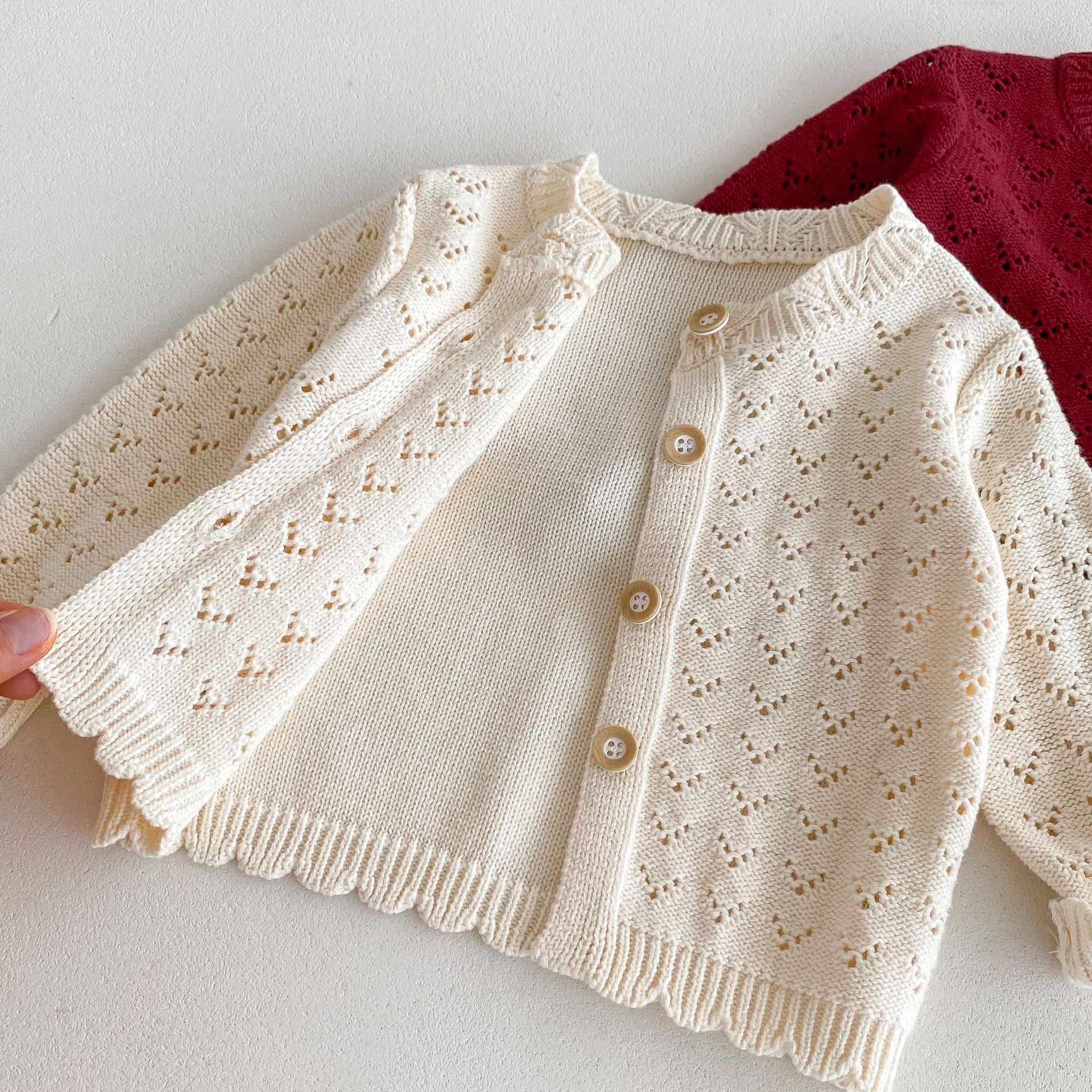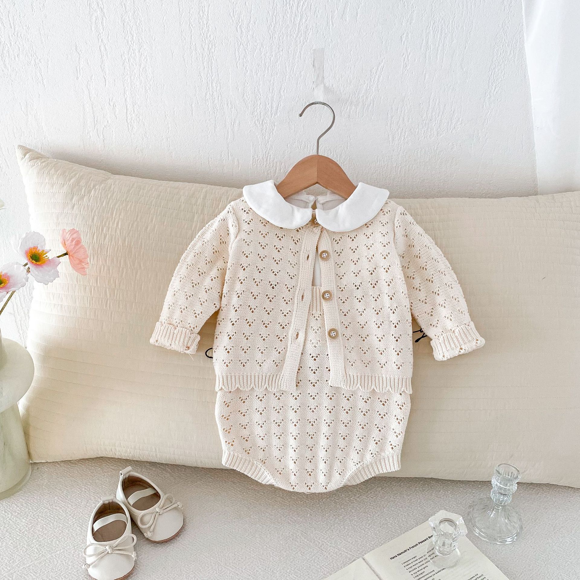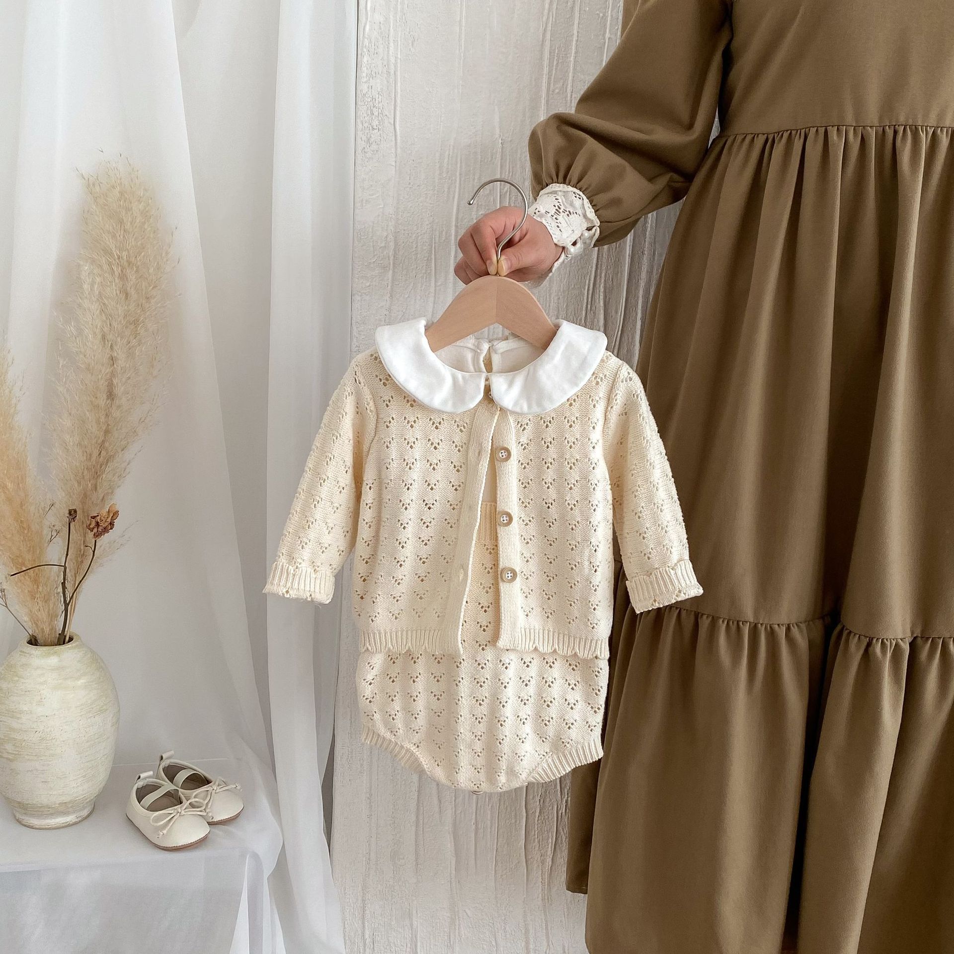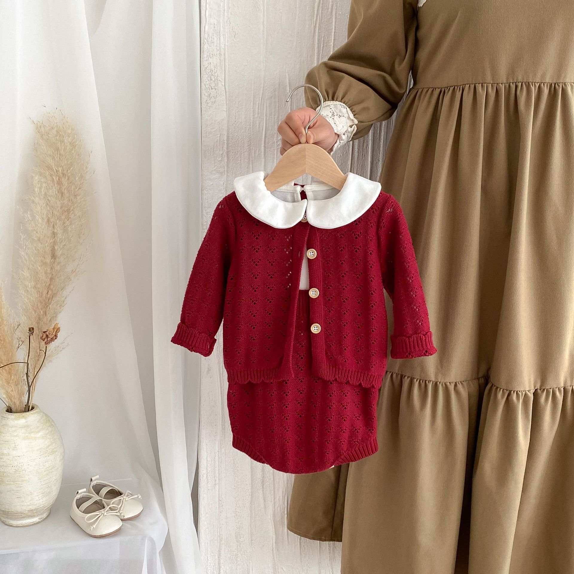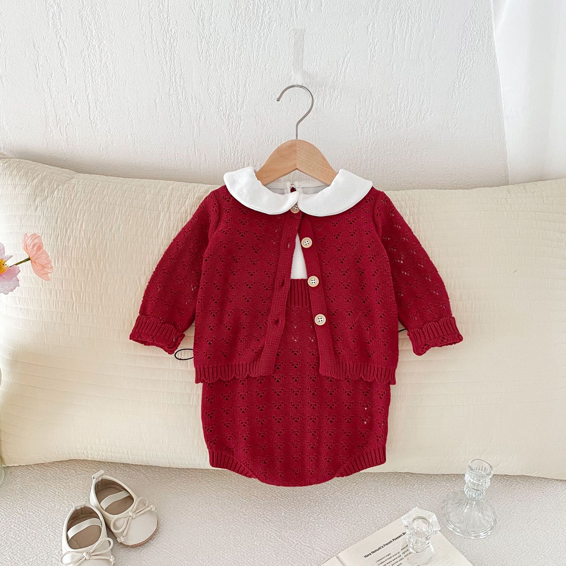 0-2 세 아기 소녀 정장 가을 새로운 면화 양모 긴팔 카디건 서스펜더 투피스 세트스토어 가기