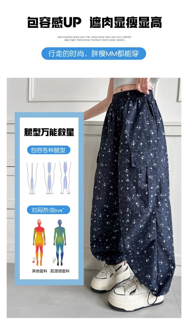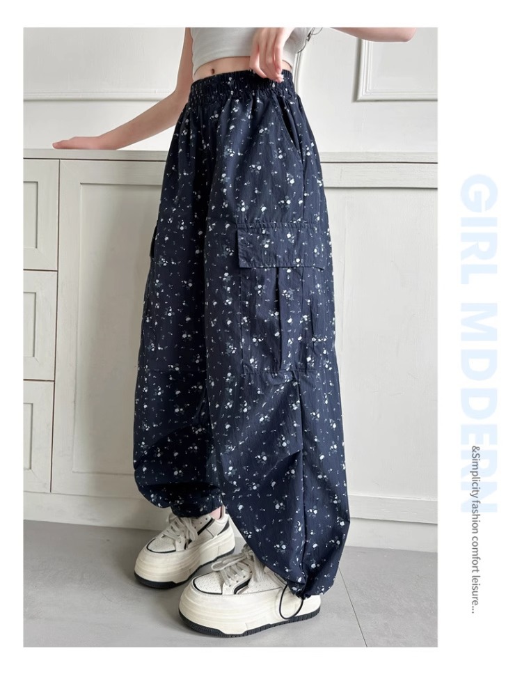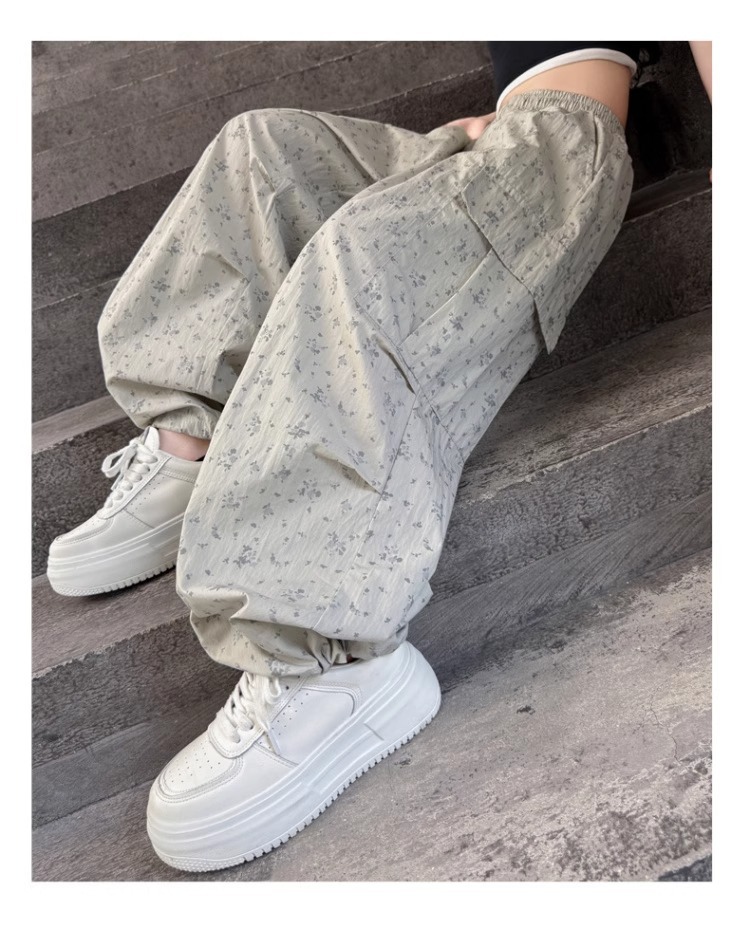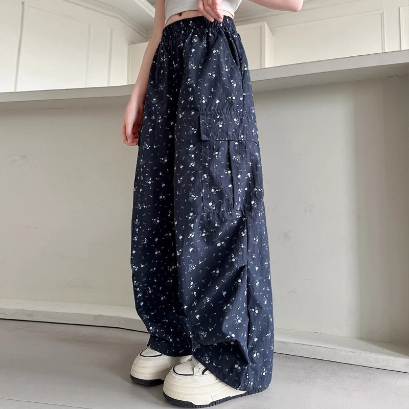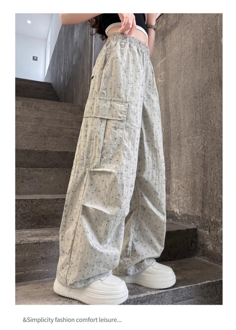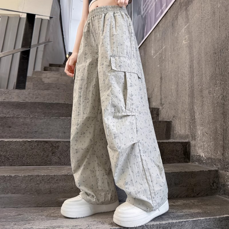 여자 꽃무늬 작업복 캐주얼 바지 여름 2025 새로운 어린이 스트레이트 어린이 유행 넓은 다리 긴 바지스토어 가기