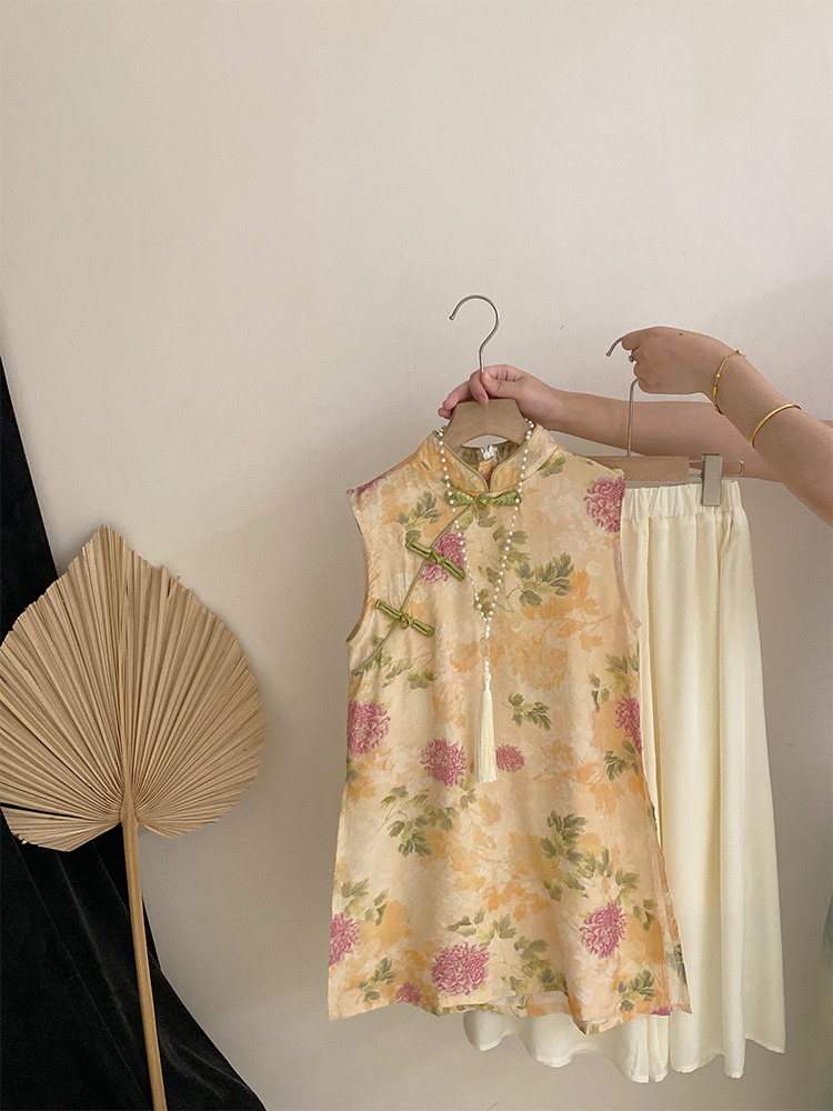 여자 중국 스타일 정장 여름 2025 새로운 스타일 어린이 새로운 중국 스타일 투피스 세트 어린 소녀 치파오 스커트 바지